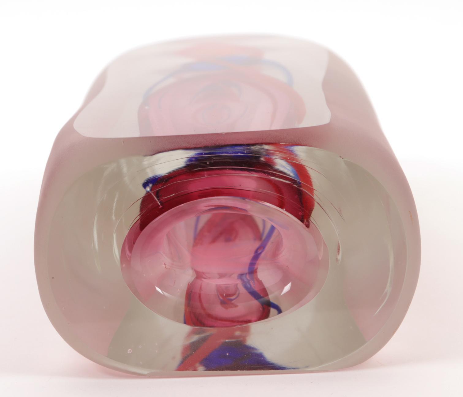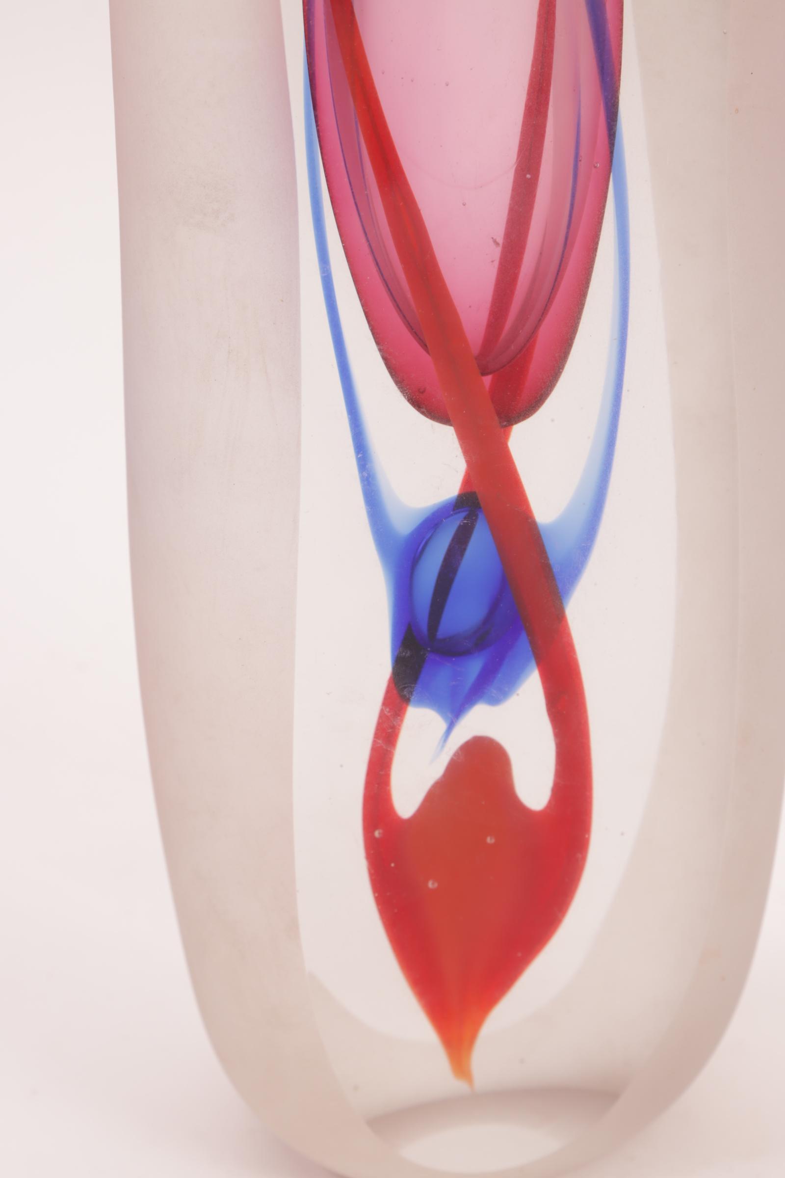 Massief rood/blauwe glazen vaas, h.32 cm.