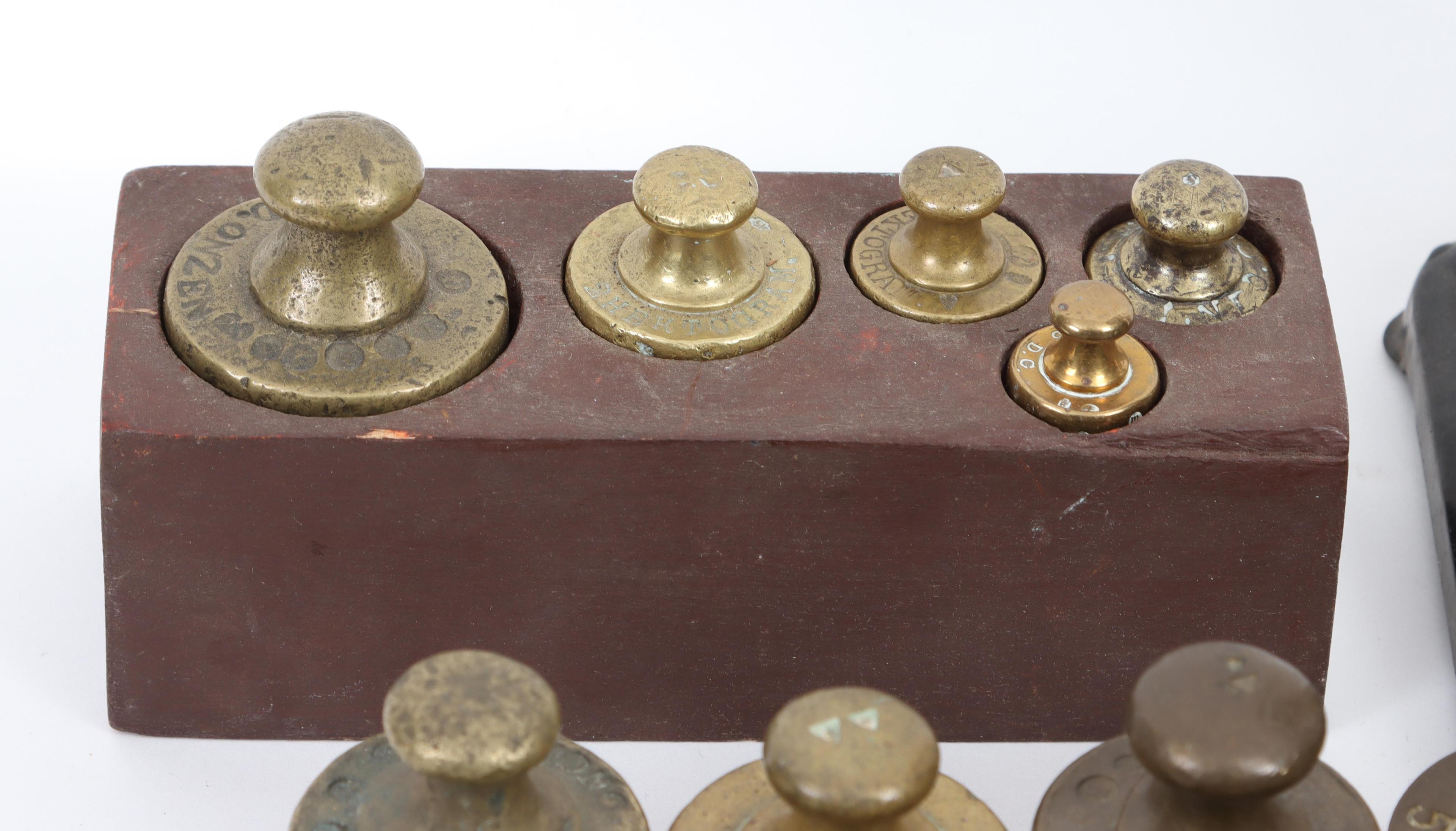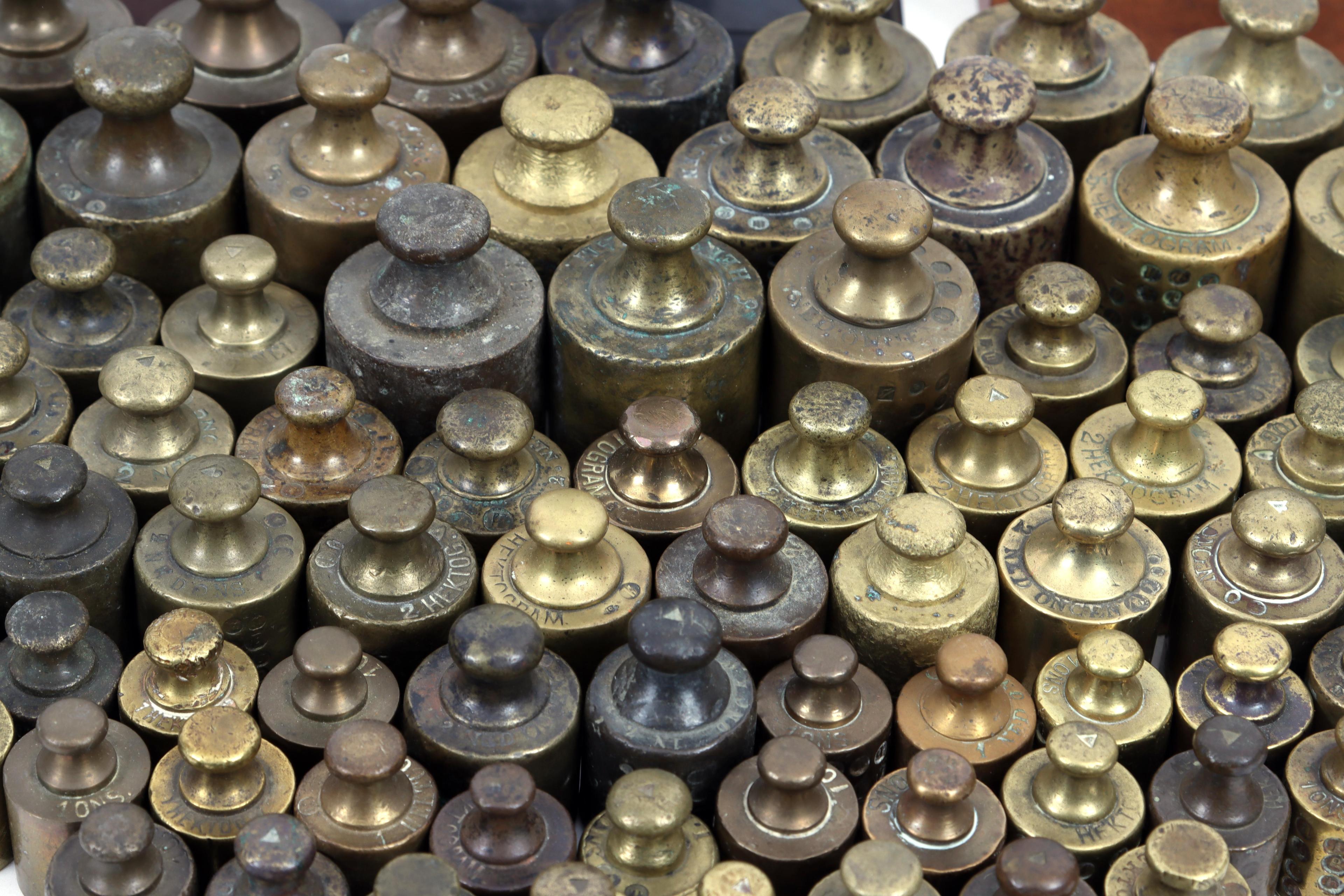 Grote koop diverse oude en antieke gewichten en een weegschaal