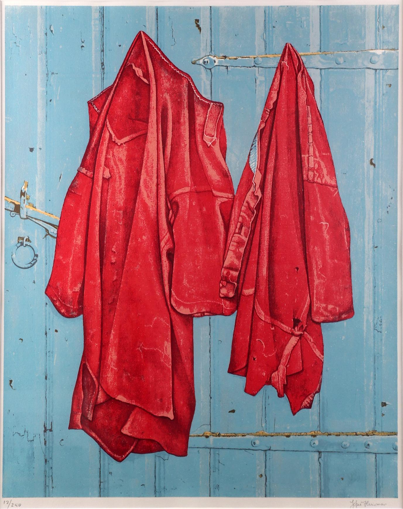 Jopie Huisman, Deur met jassen, handgesigneerde lithografie, nr.12/250, 60 x 48 cm.