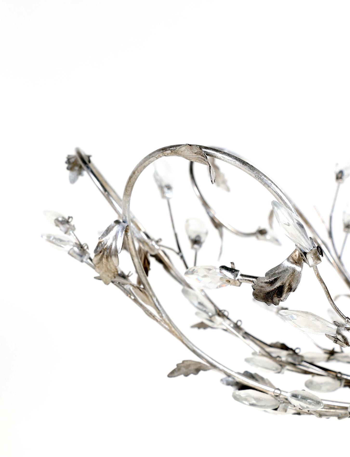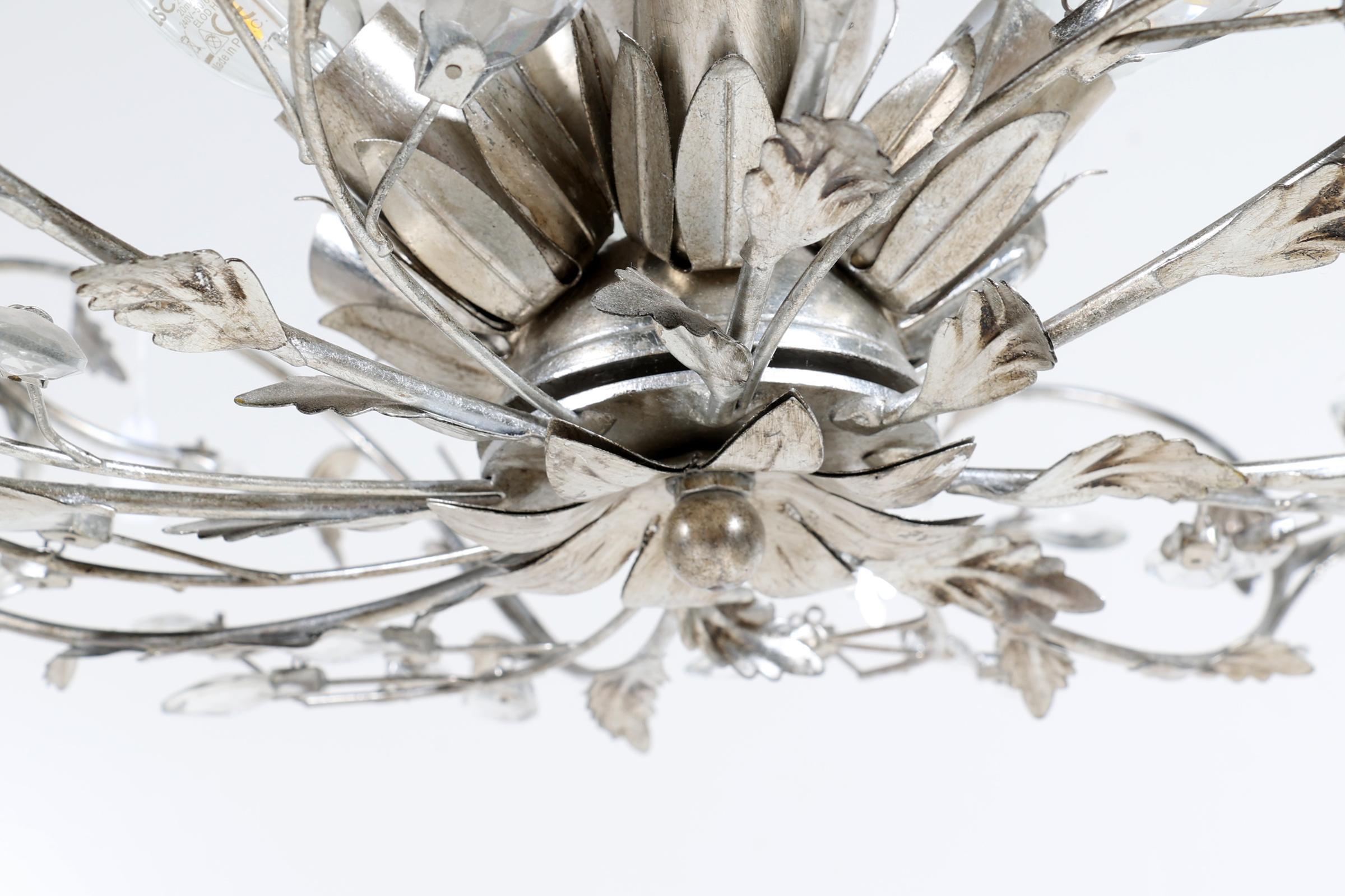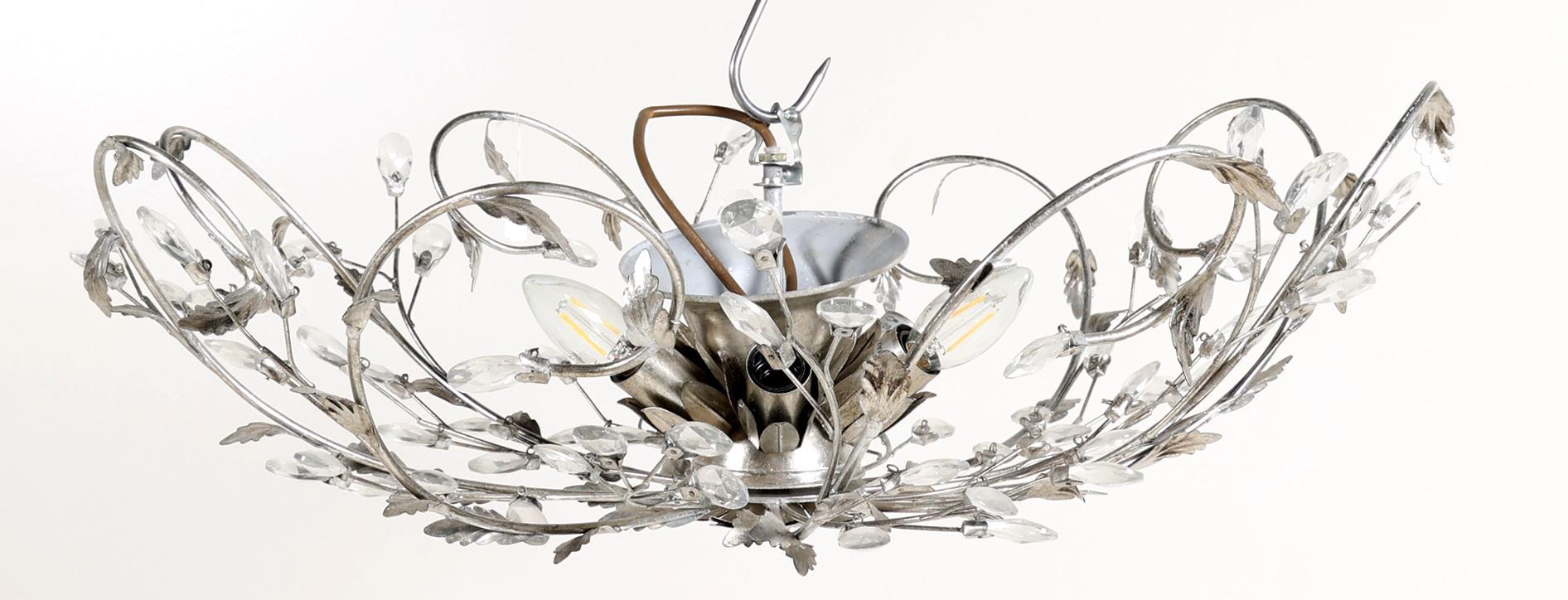Met bloemen en kristal gedecoreerde hanglamp, h.20 x diam.67 cm.
