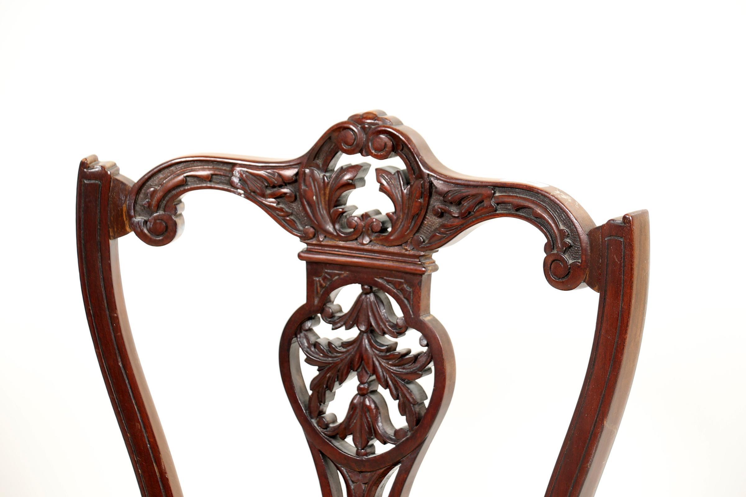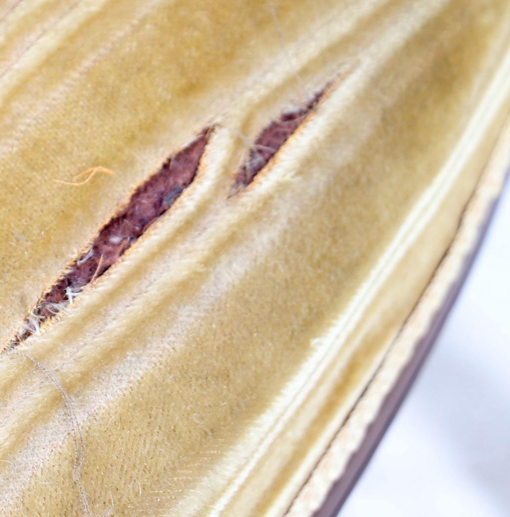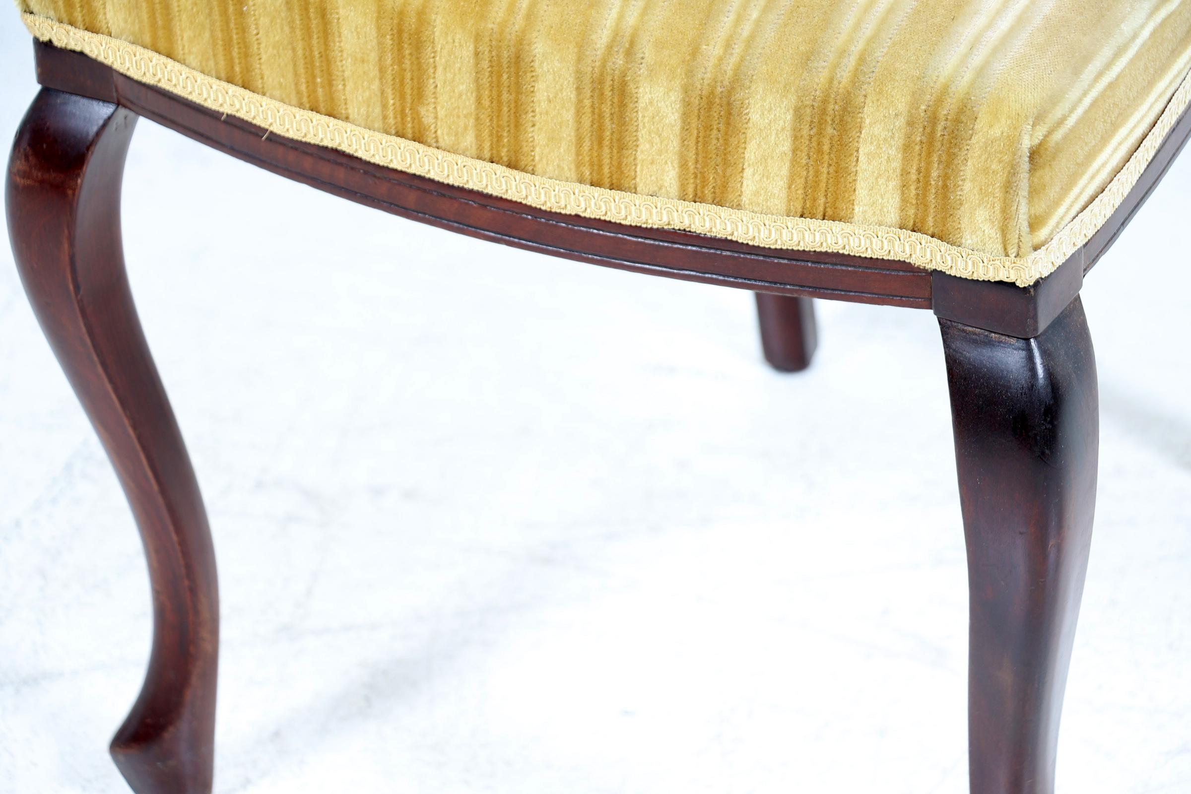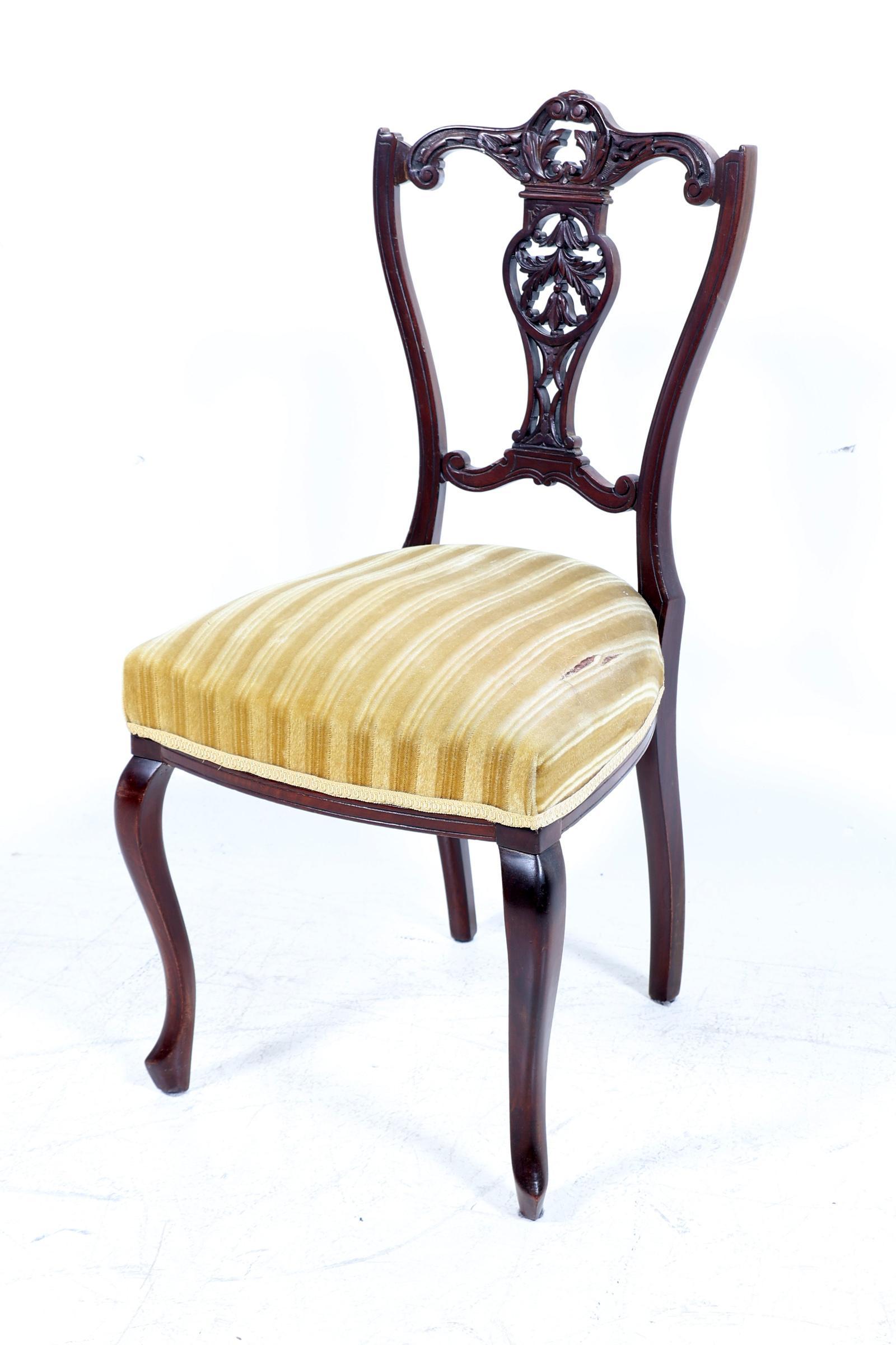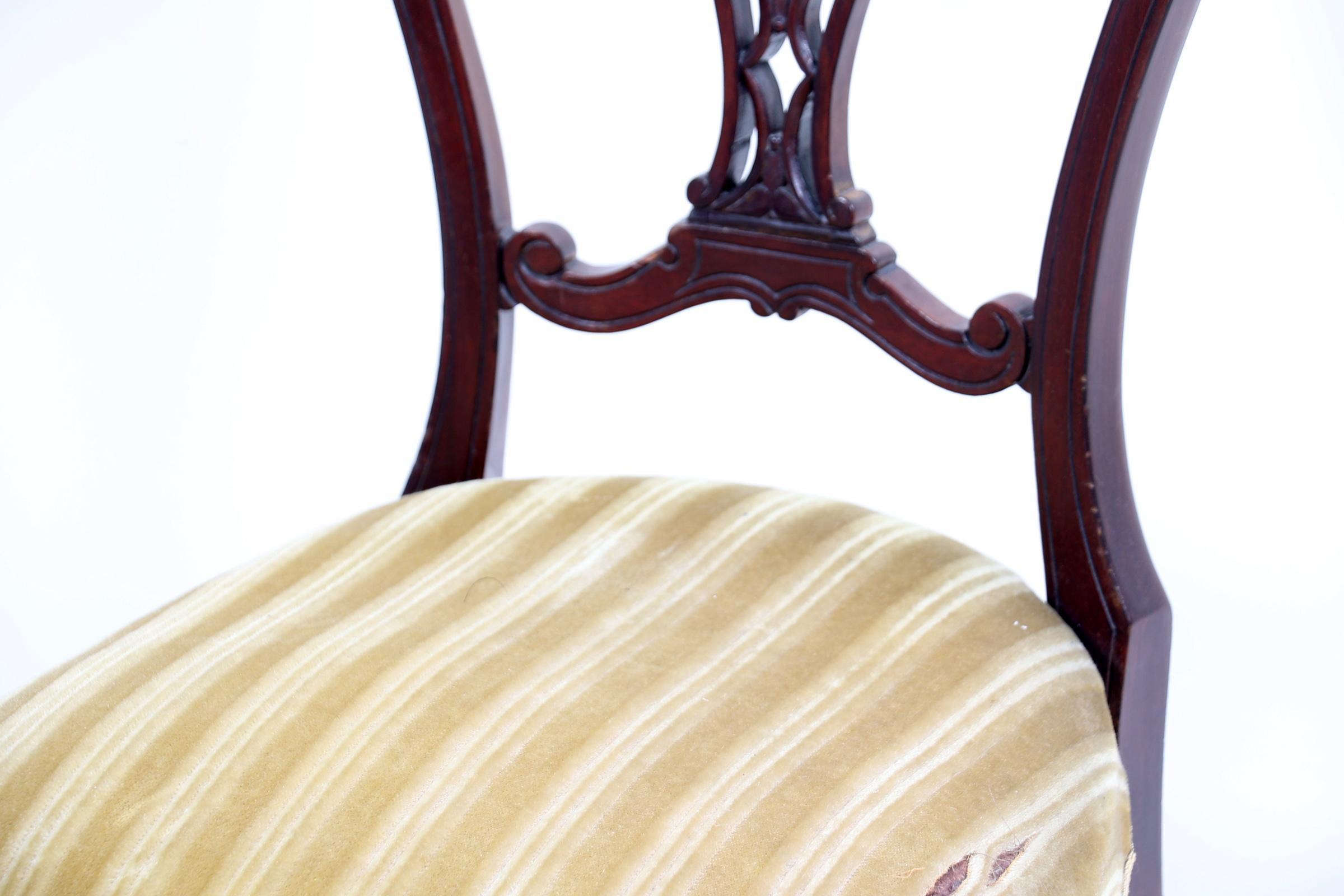 Antieke mahoniehouten Victoriaanse stoel, met gestreept velours bekleed (scheur in bekleding)