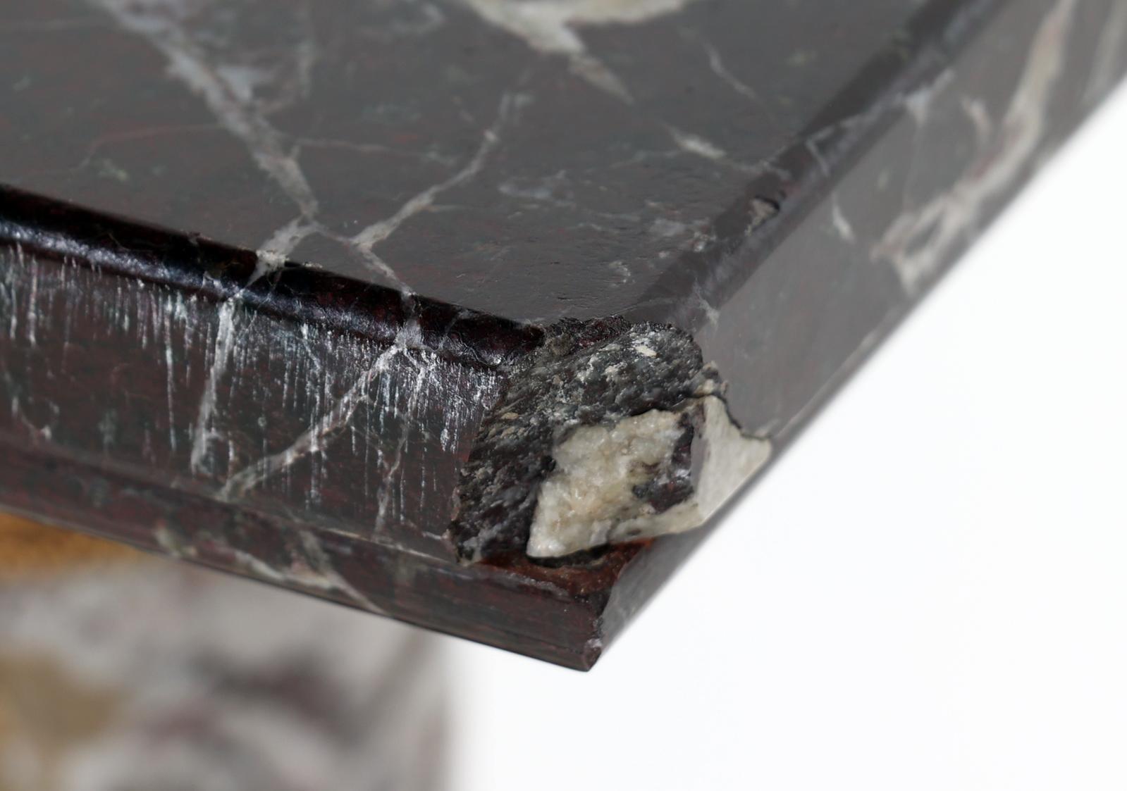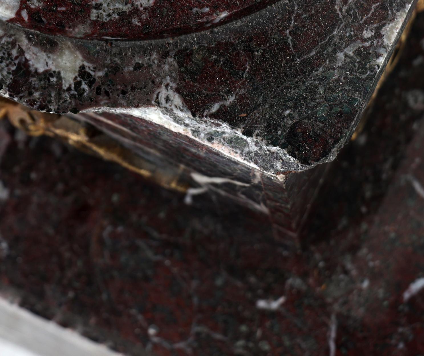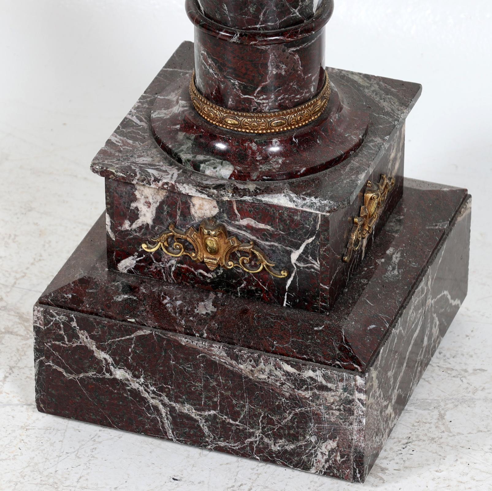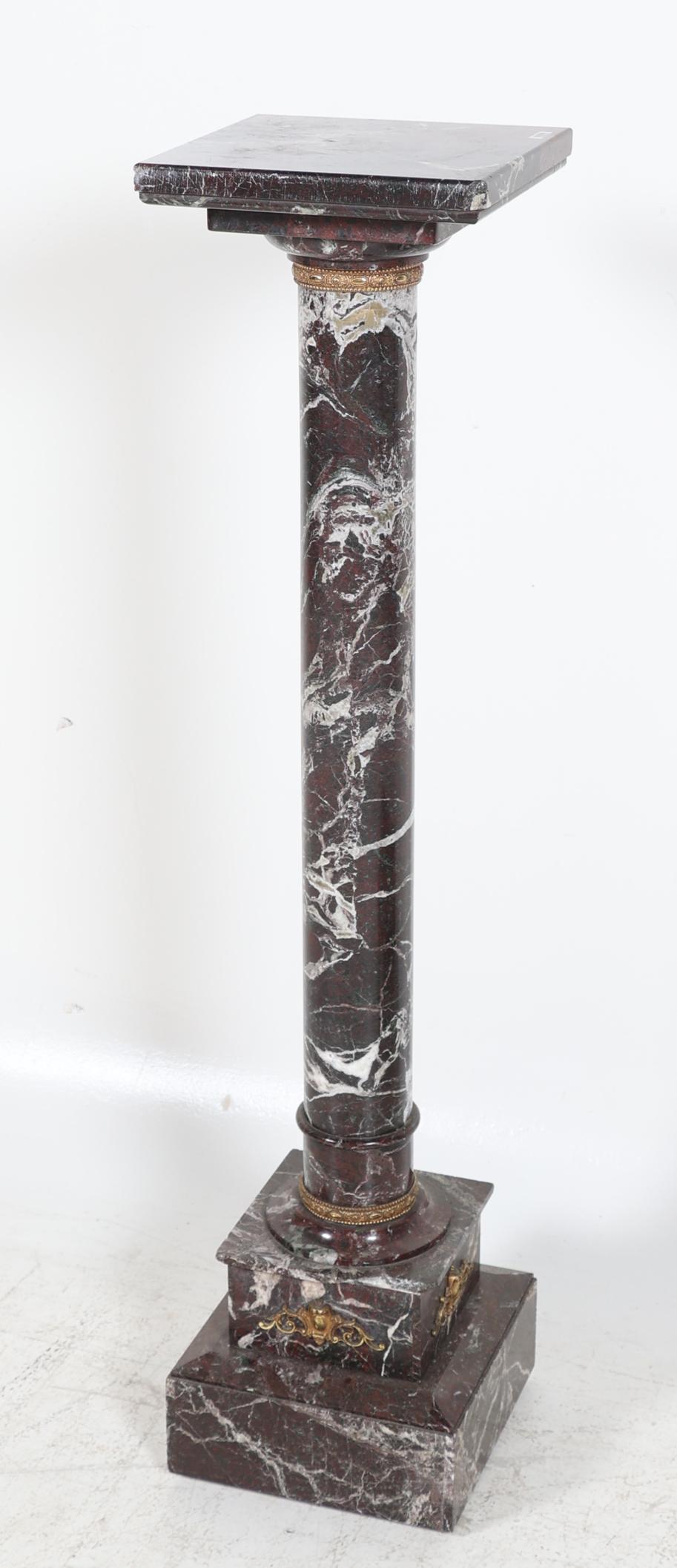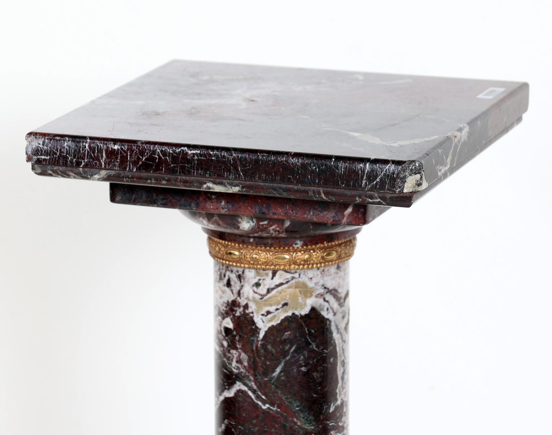 Antieke marmeren zuil met brons afgezet, hoekje beschadigd, h.109 cm.