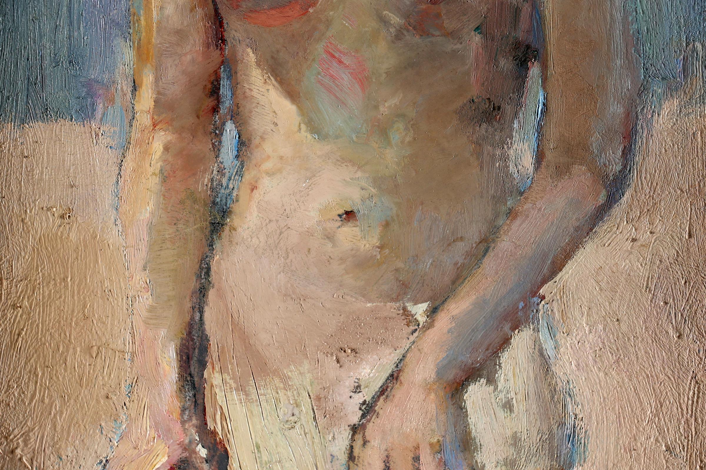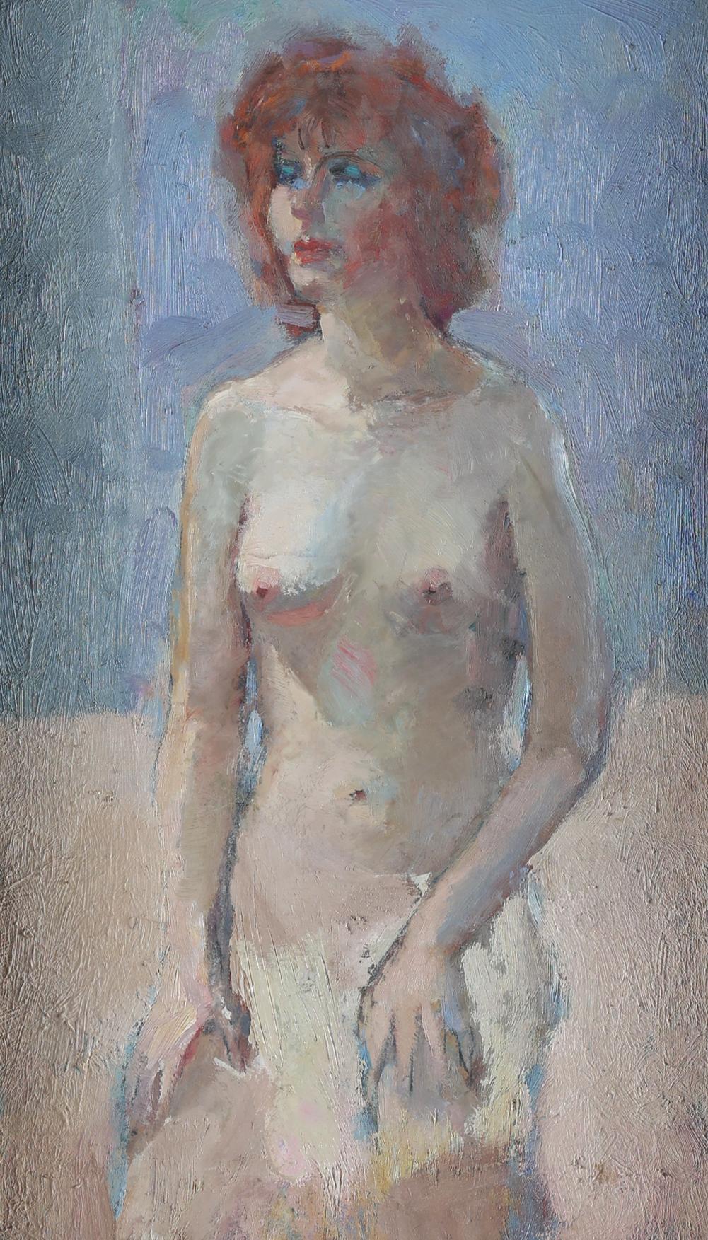 Gerard de wit (1931-2010), Staand naakt, olieverf op board, 39 x 23 cm. gesigneerd aan achterkant en Leiden