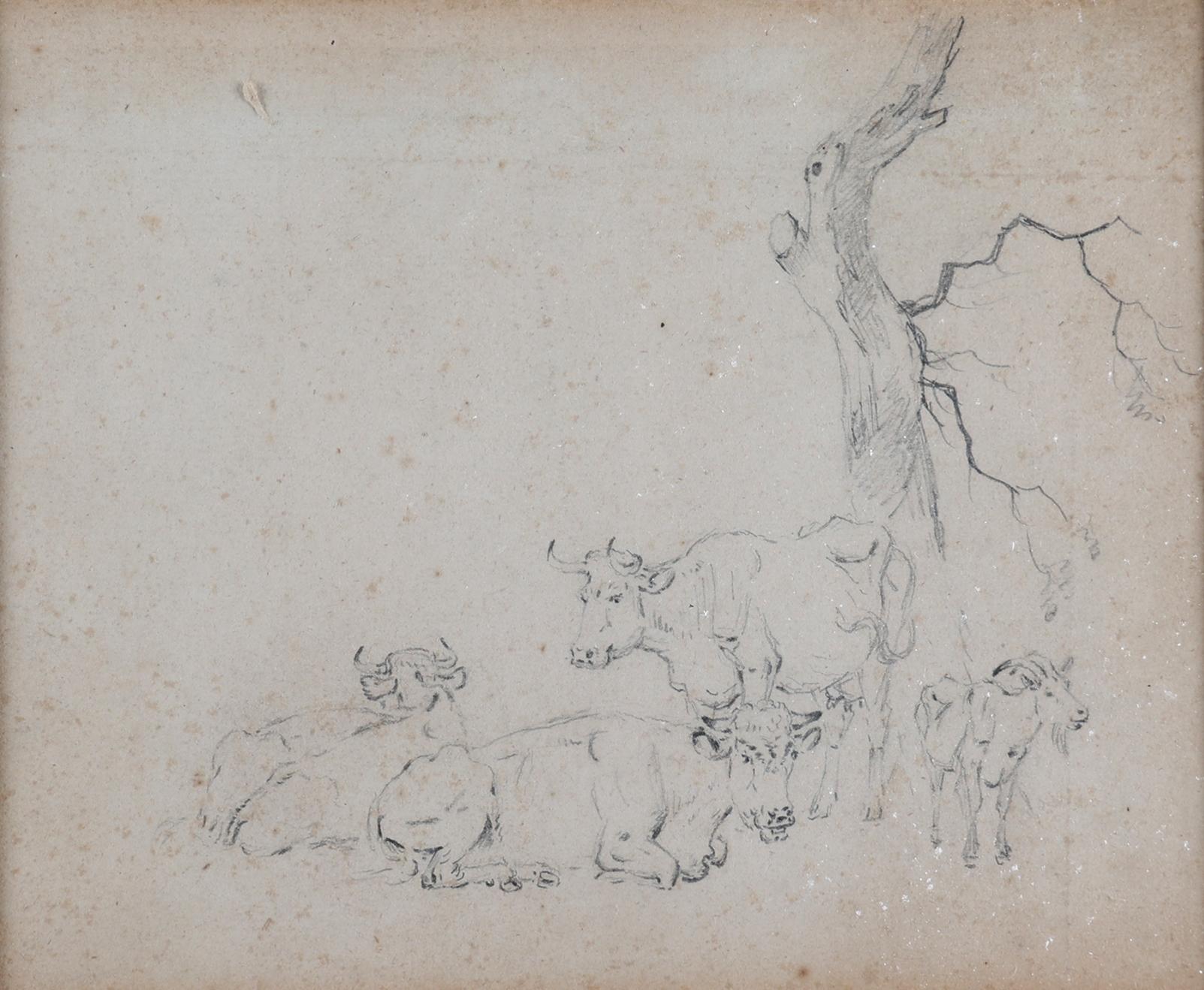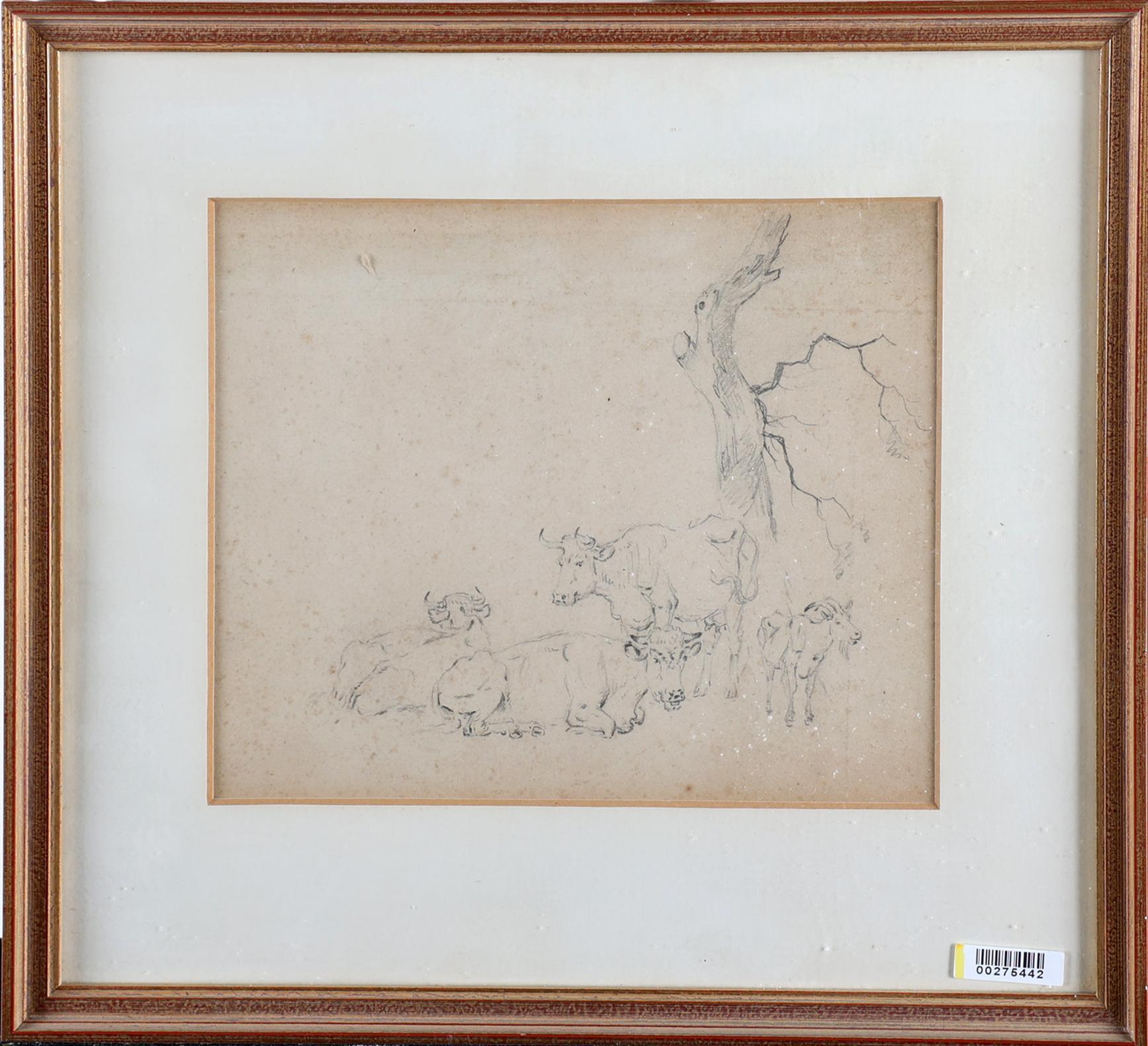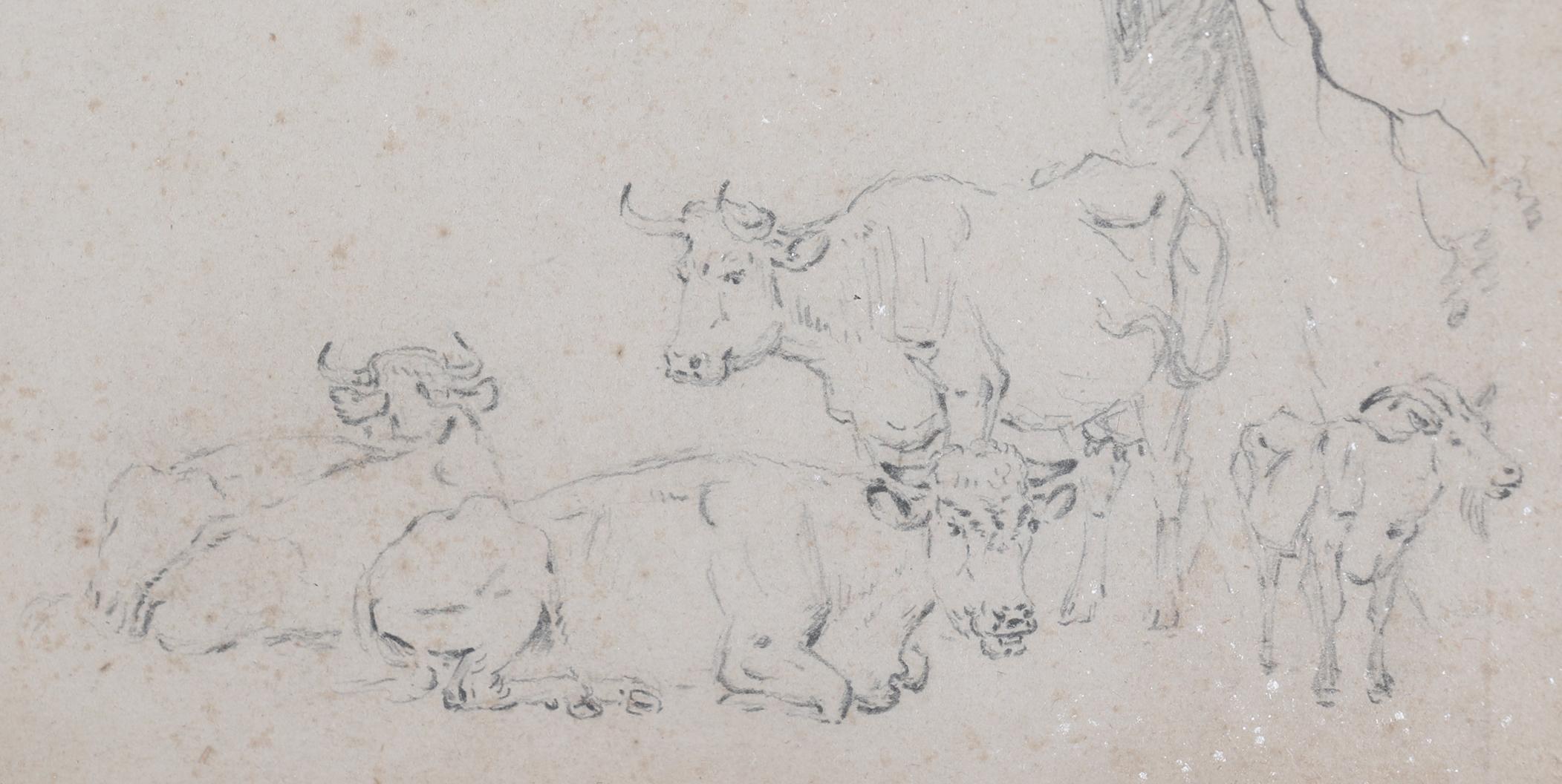 Eugène Joseph Verboeckhoven (1798-1881), Koeien in de wei, tekening, 22 x 18 cm.