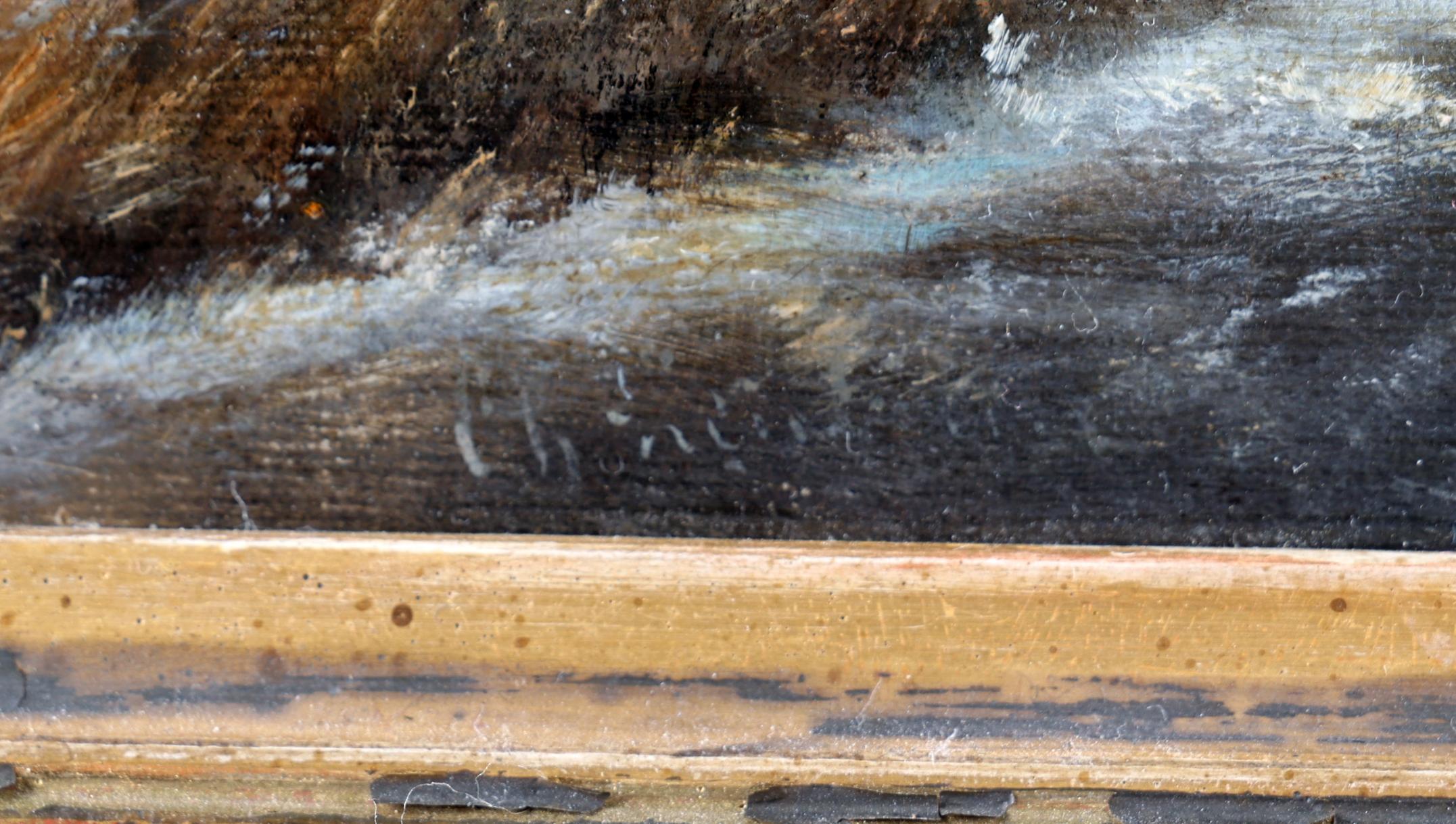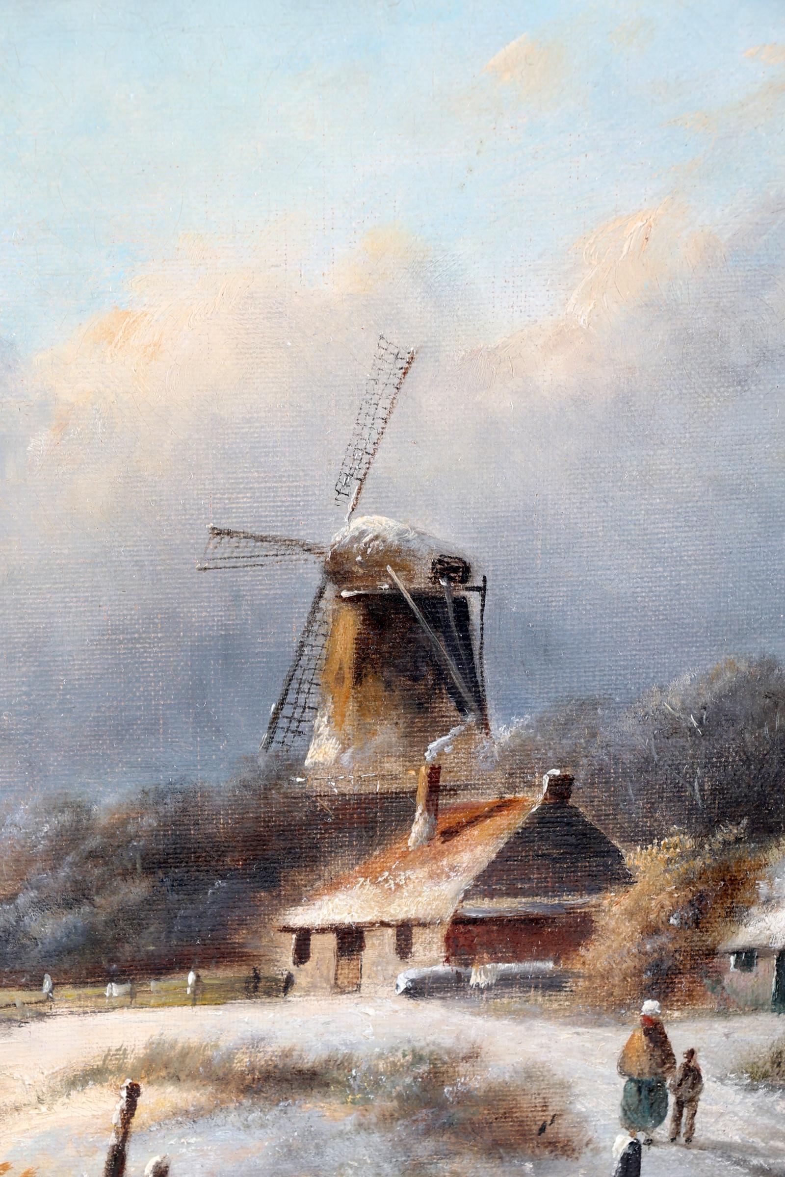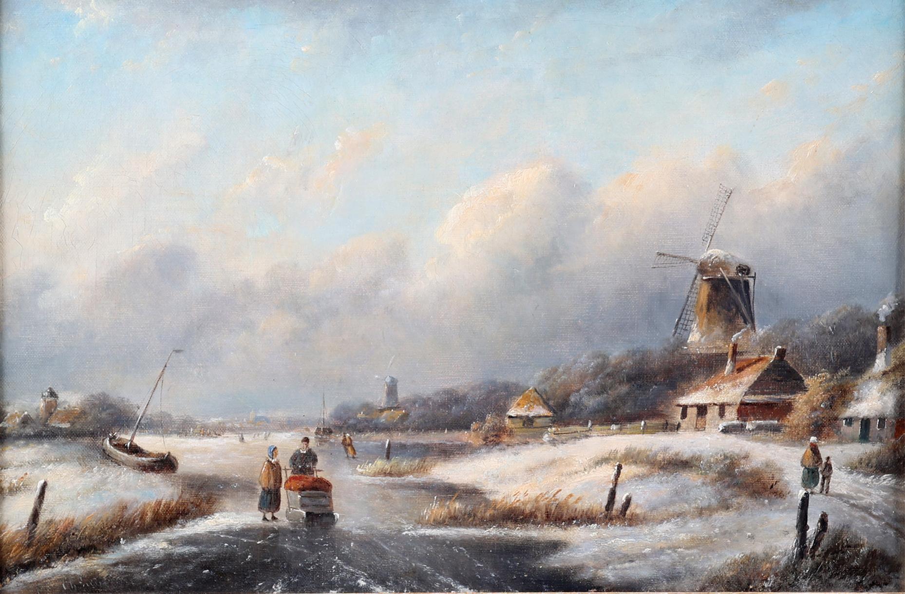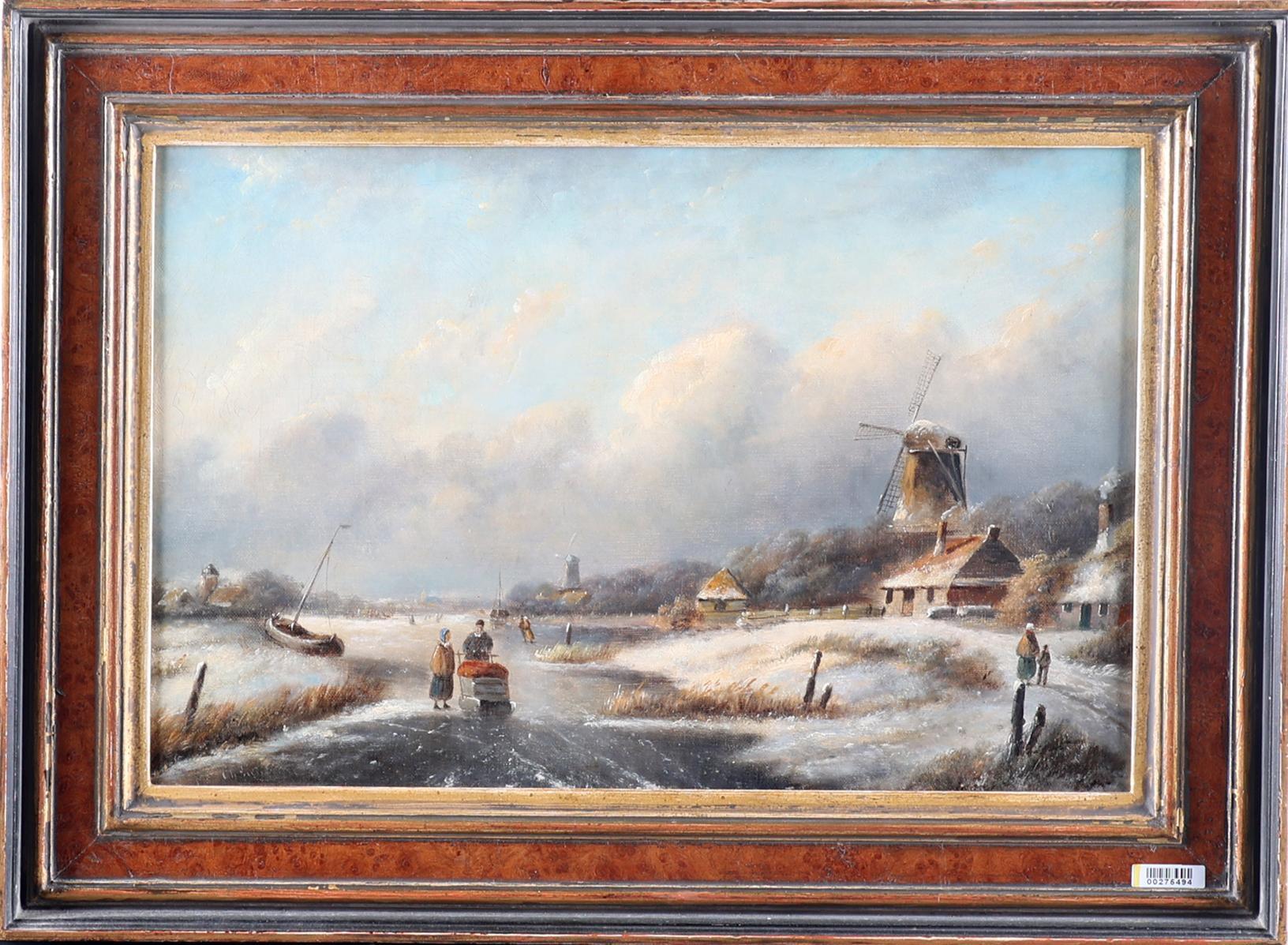 Hollandse School, draagt signatuur Leickert, IJslandschap met personen, olieverf op doek, 46 x 30 cm.