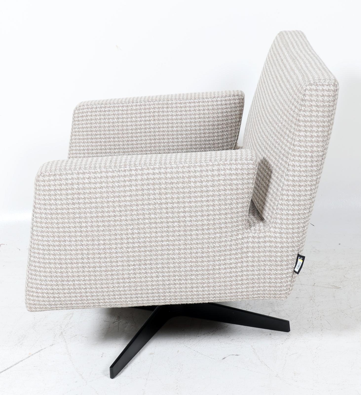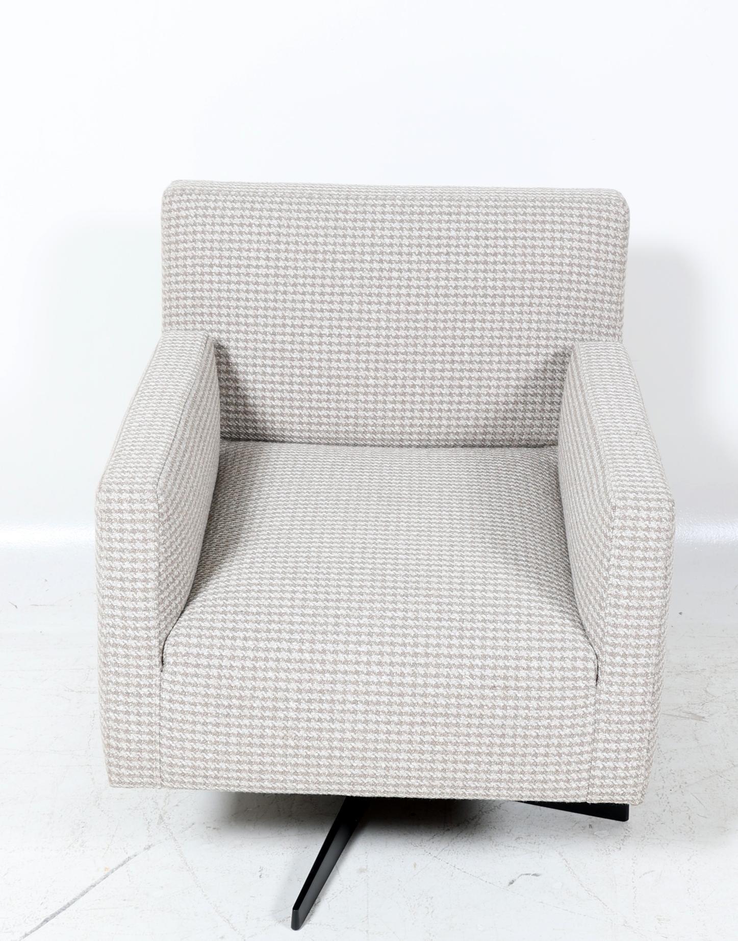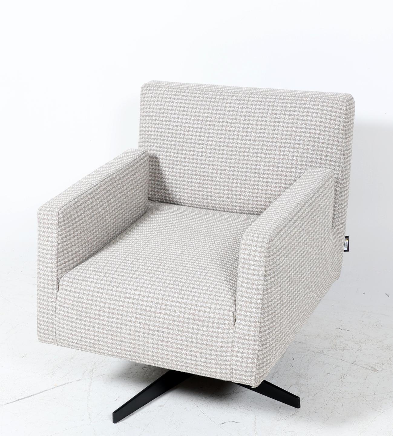 Sur & Plus, moderne draaibare armfauteuil met beige ruit bekleding rustend op zwart metalen onderstel