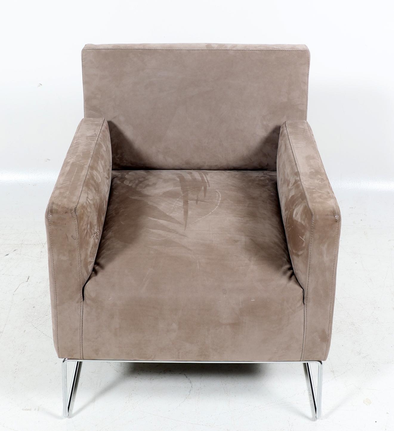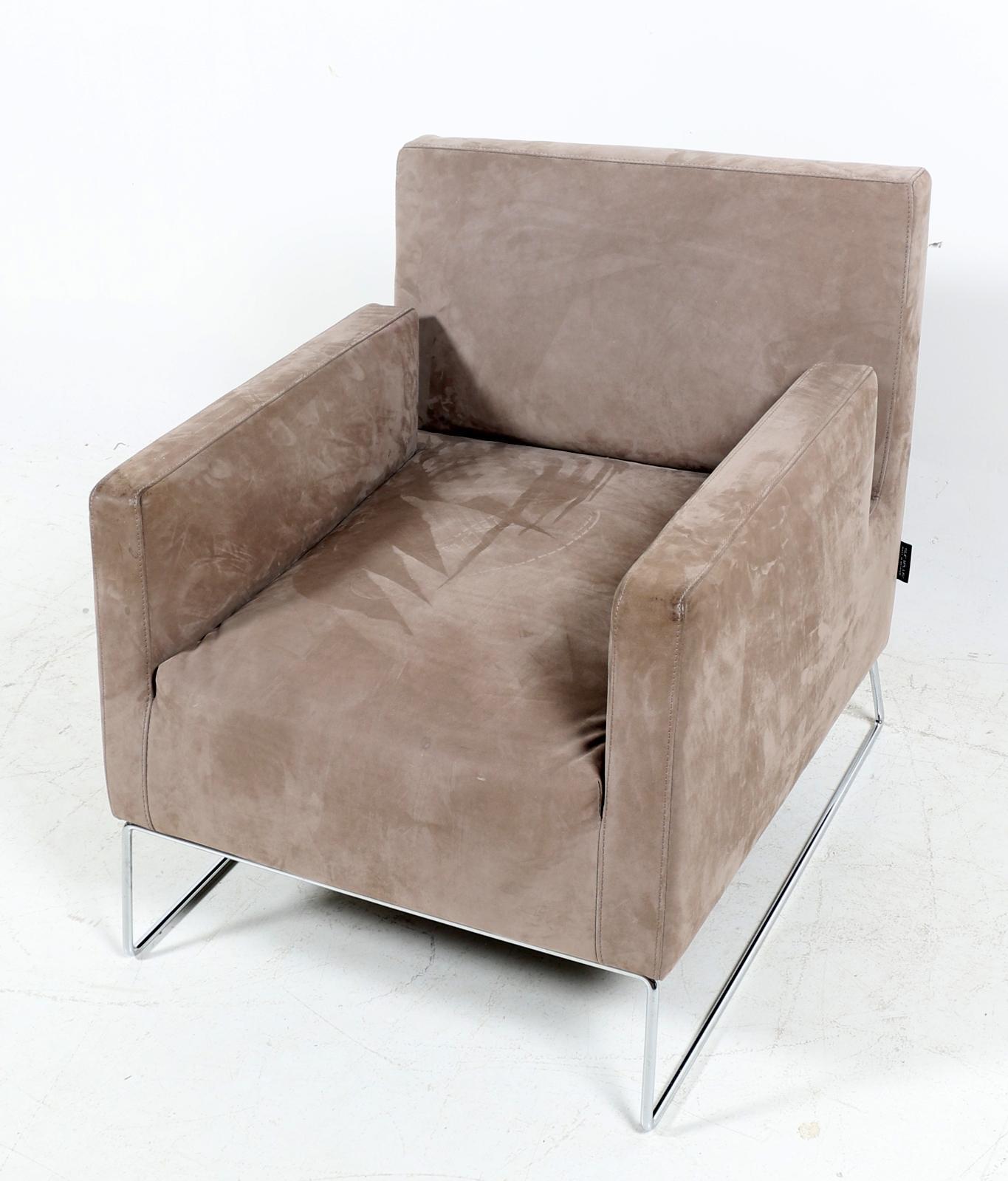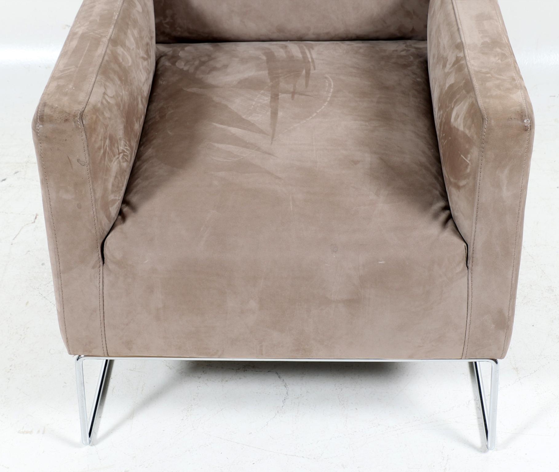 Sur & Plus, moderne armfauteuil met suède bekleding rustend op chroom onderstel