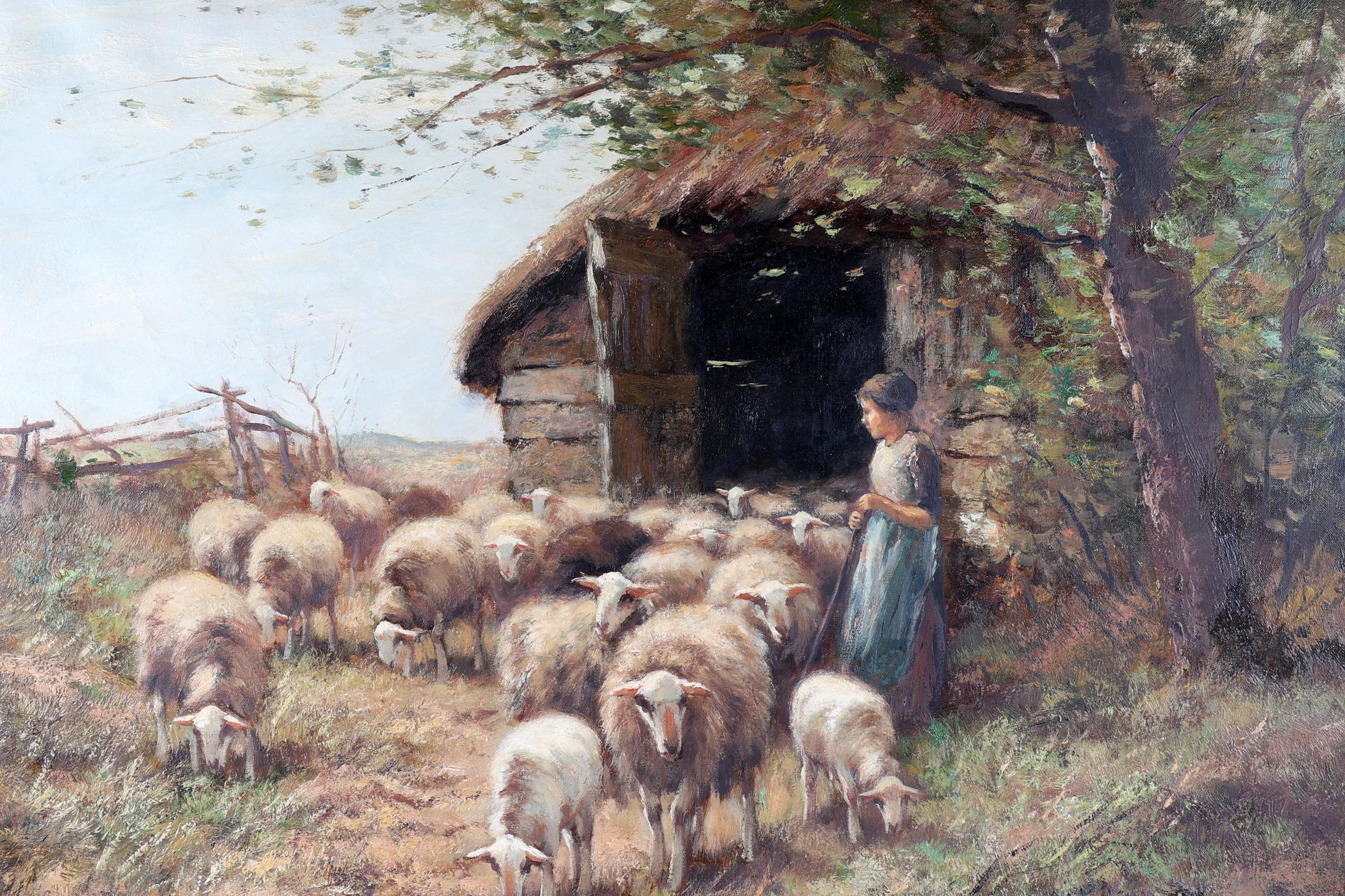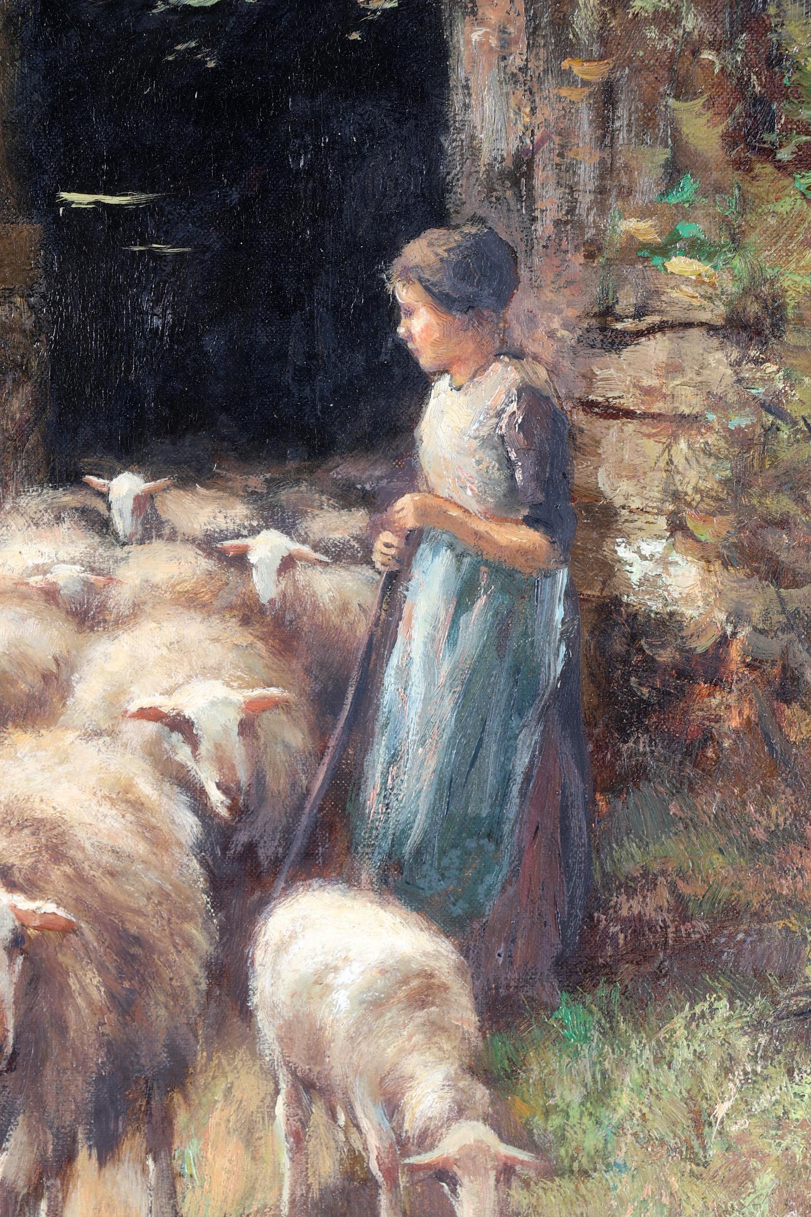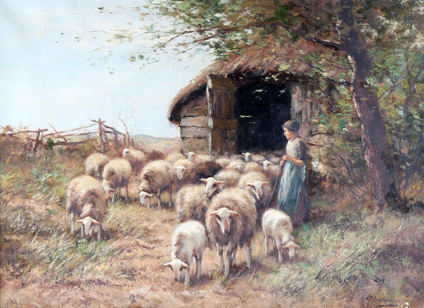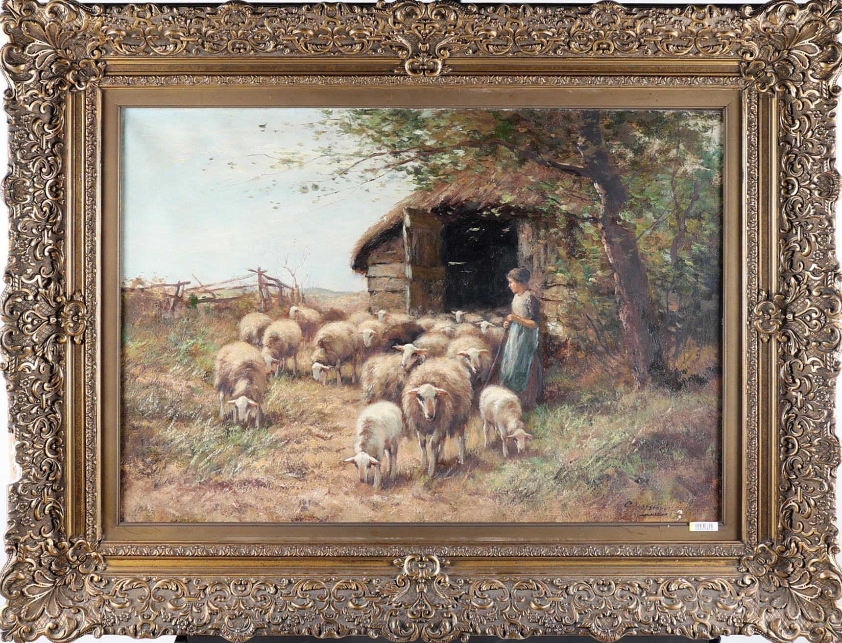 Cornelis Verschuur (1888-1966), Boerin met schapen, olieverf op doek, 50 x 70 cm.