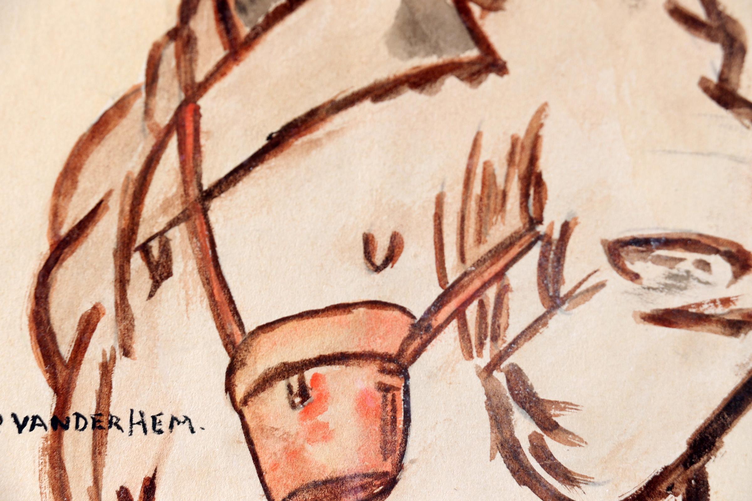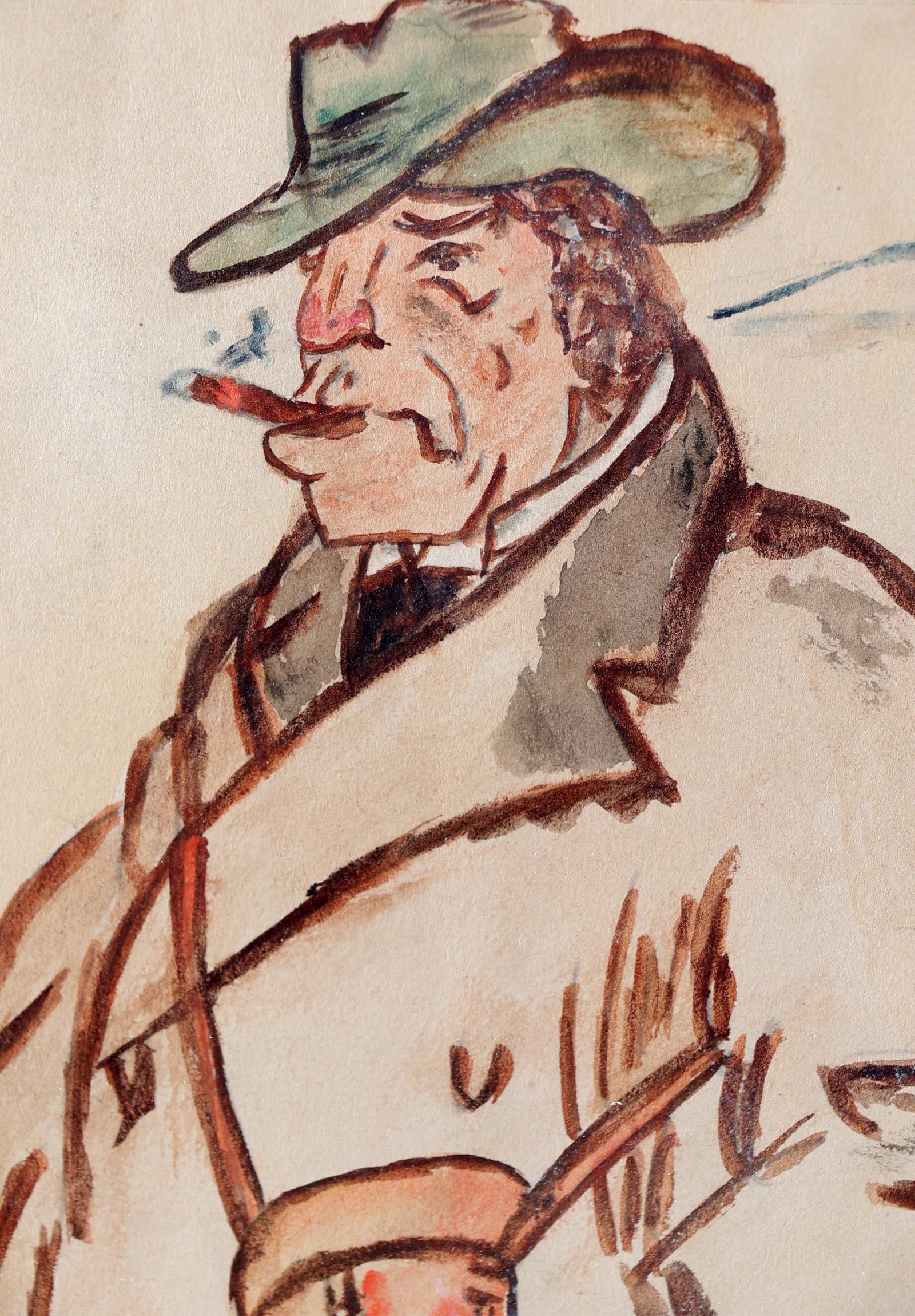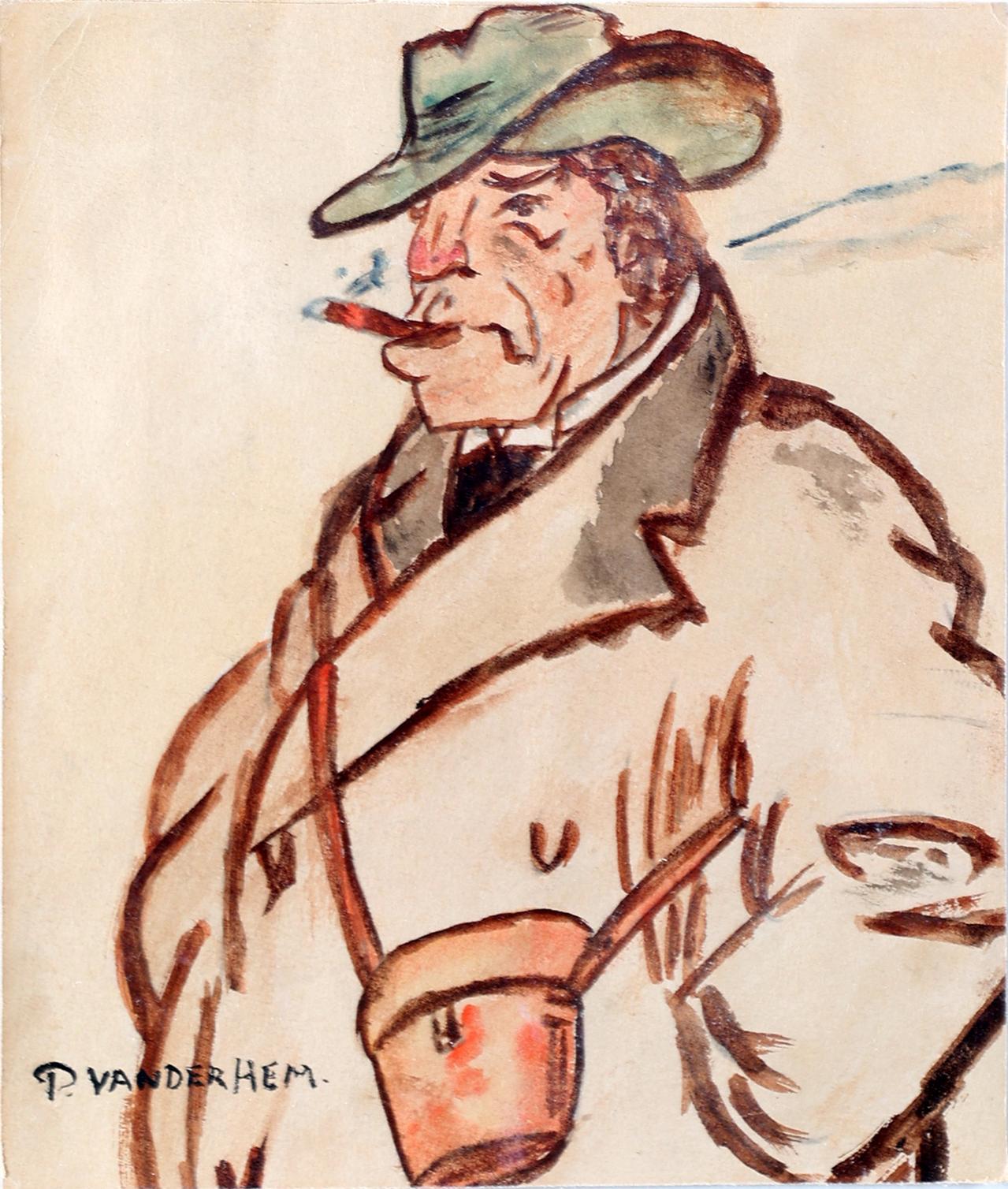 Piet van der Hem, (1885-1961), Man met sigaar en hoed, aquarel, 16 x 13,5 cm.