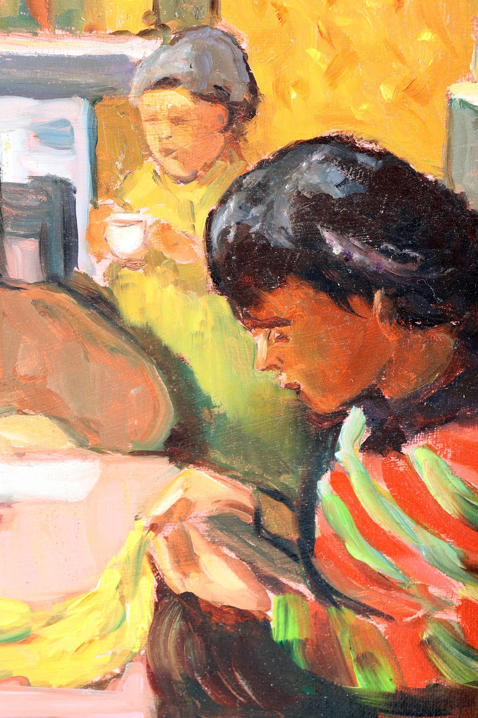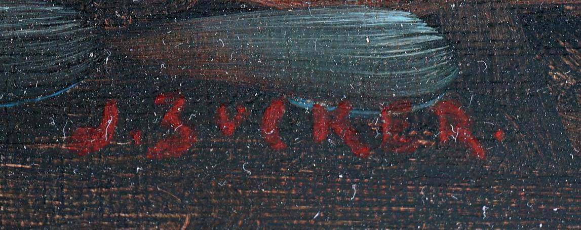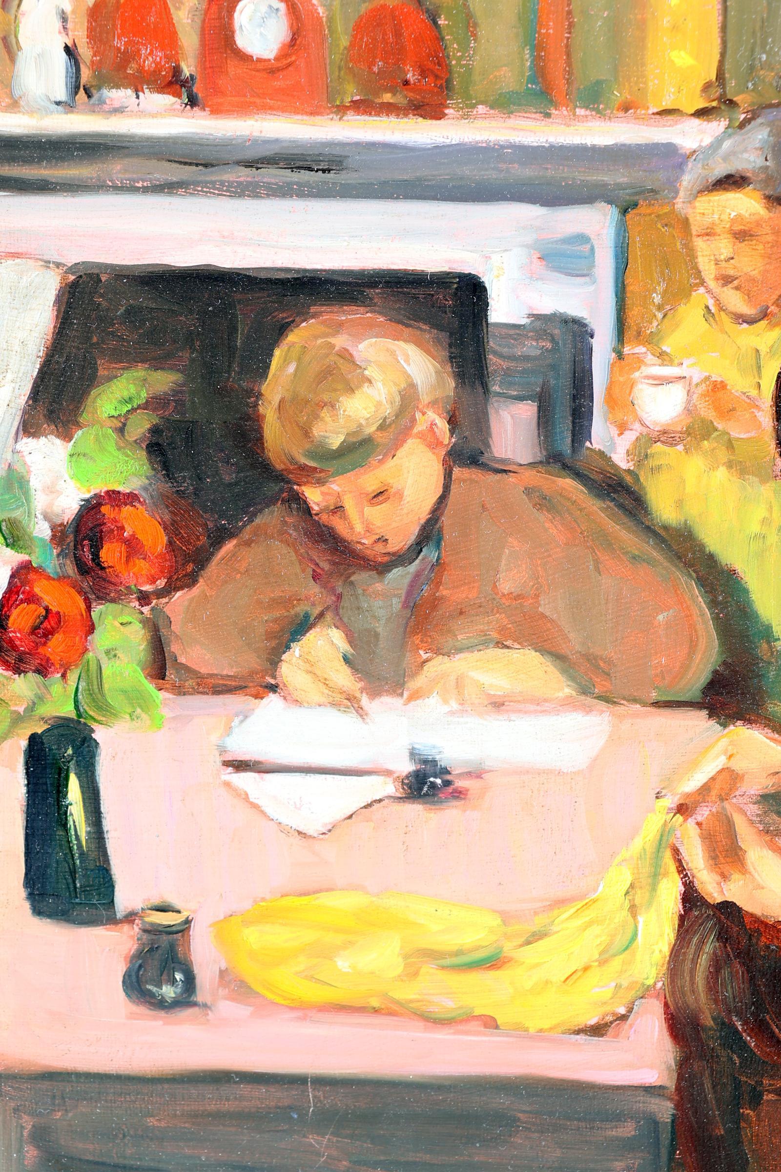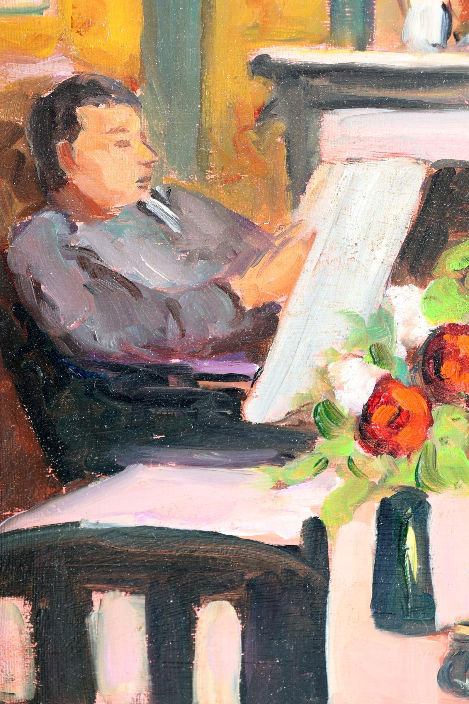 Jacques Zucher, Familie in interieur, olieverf op doek 30 x 40 cm.