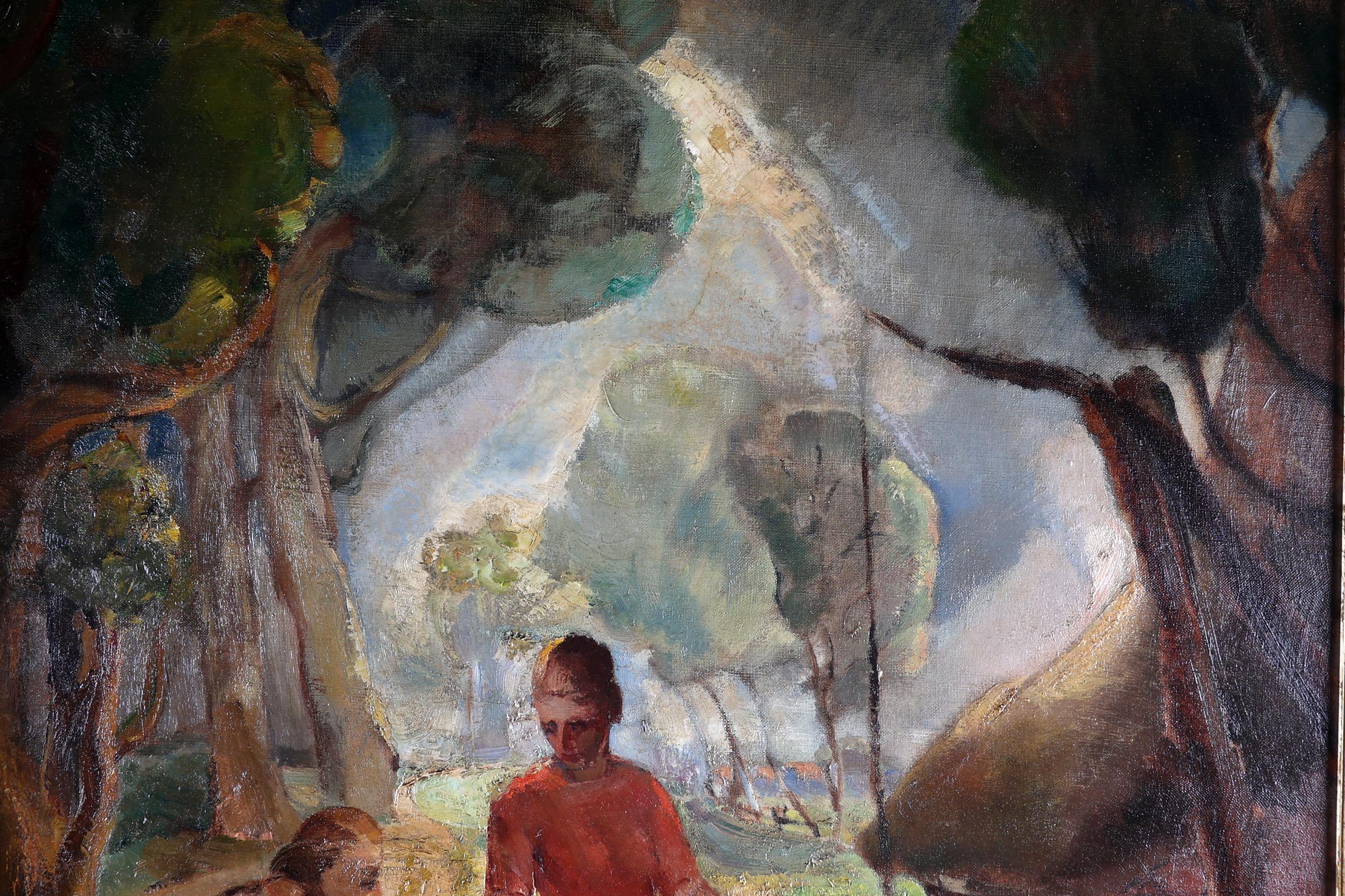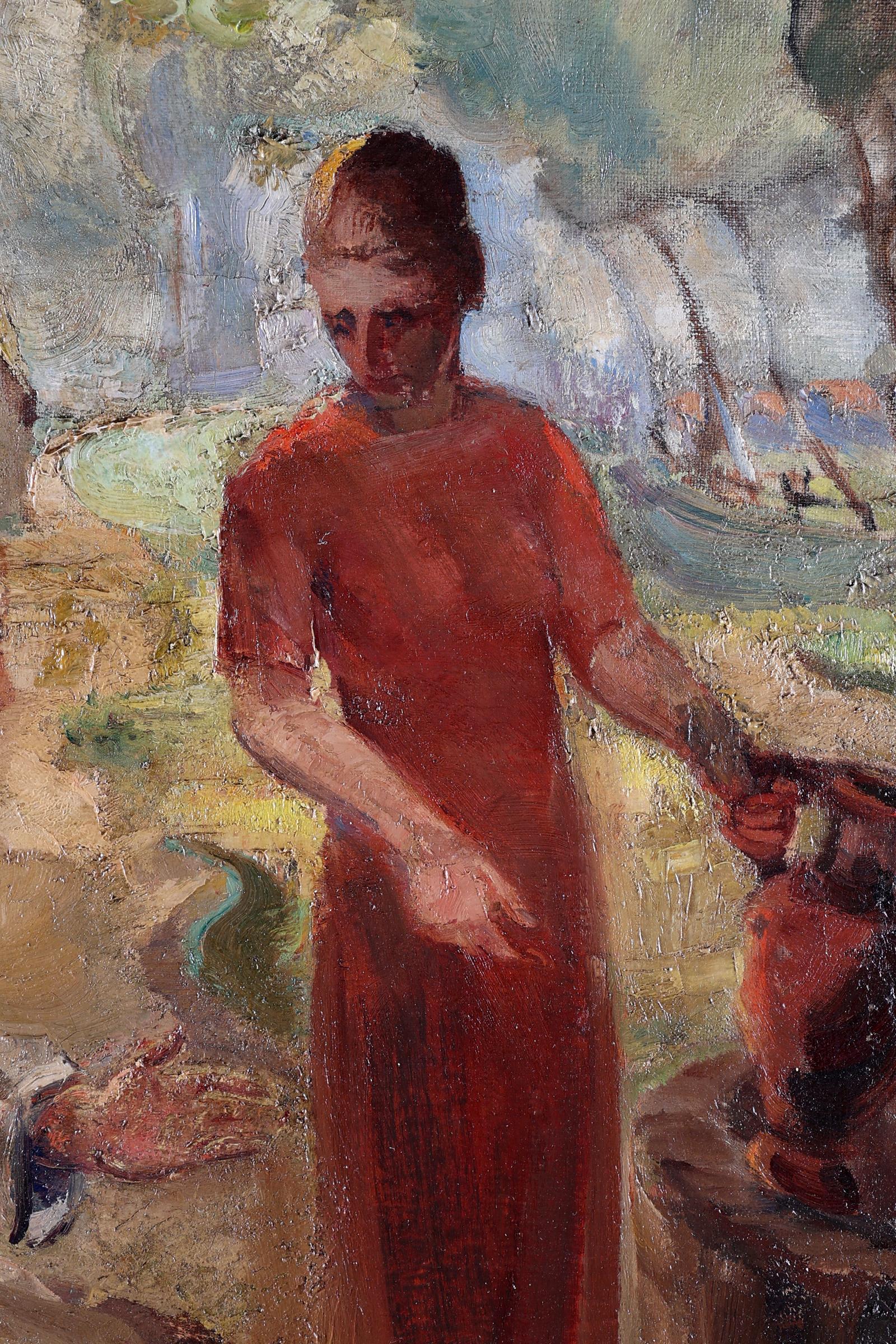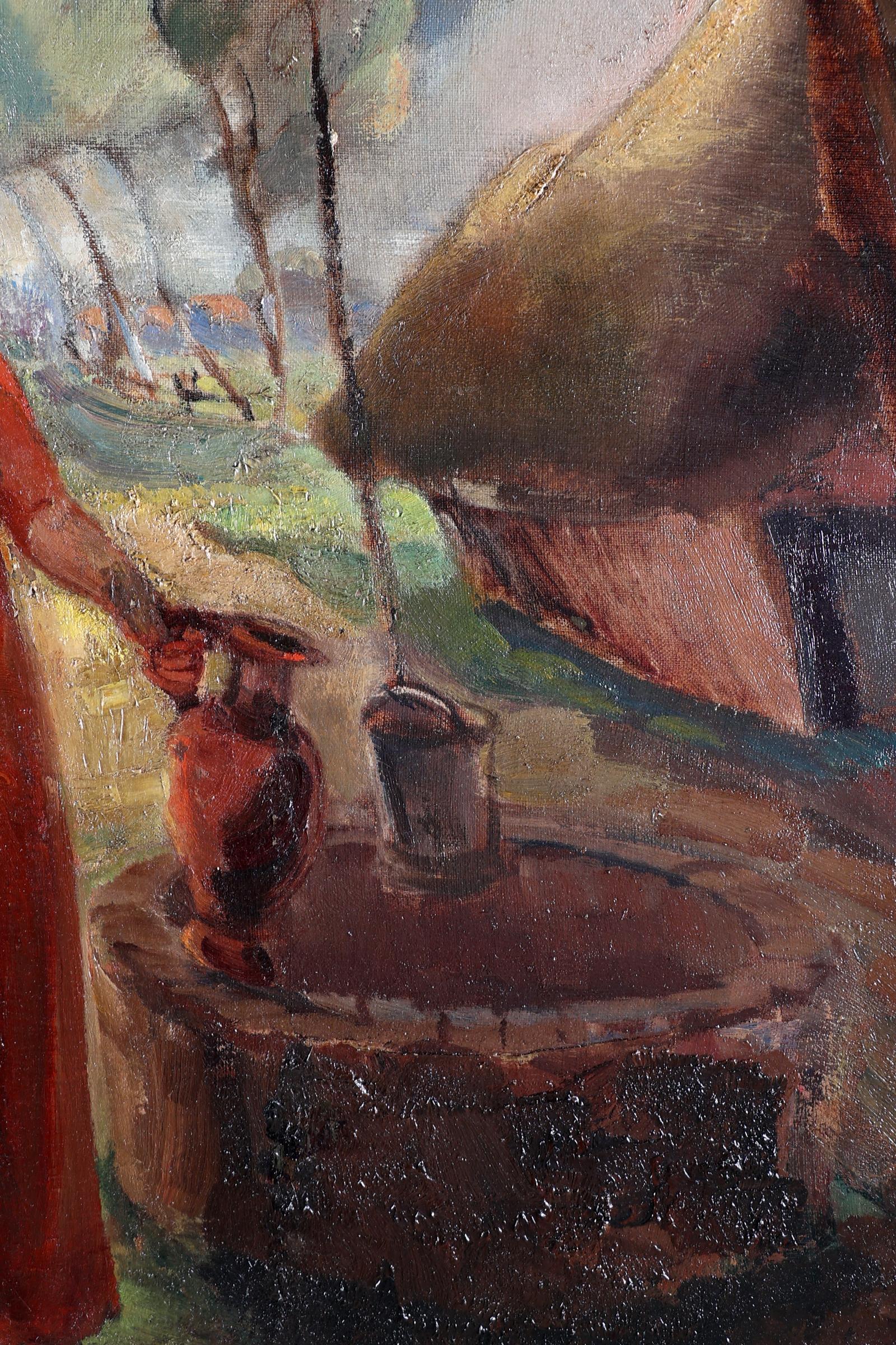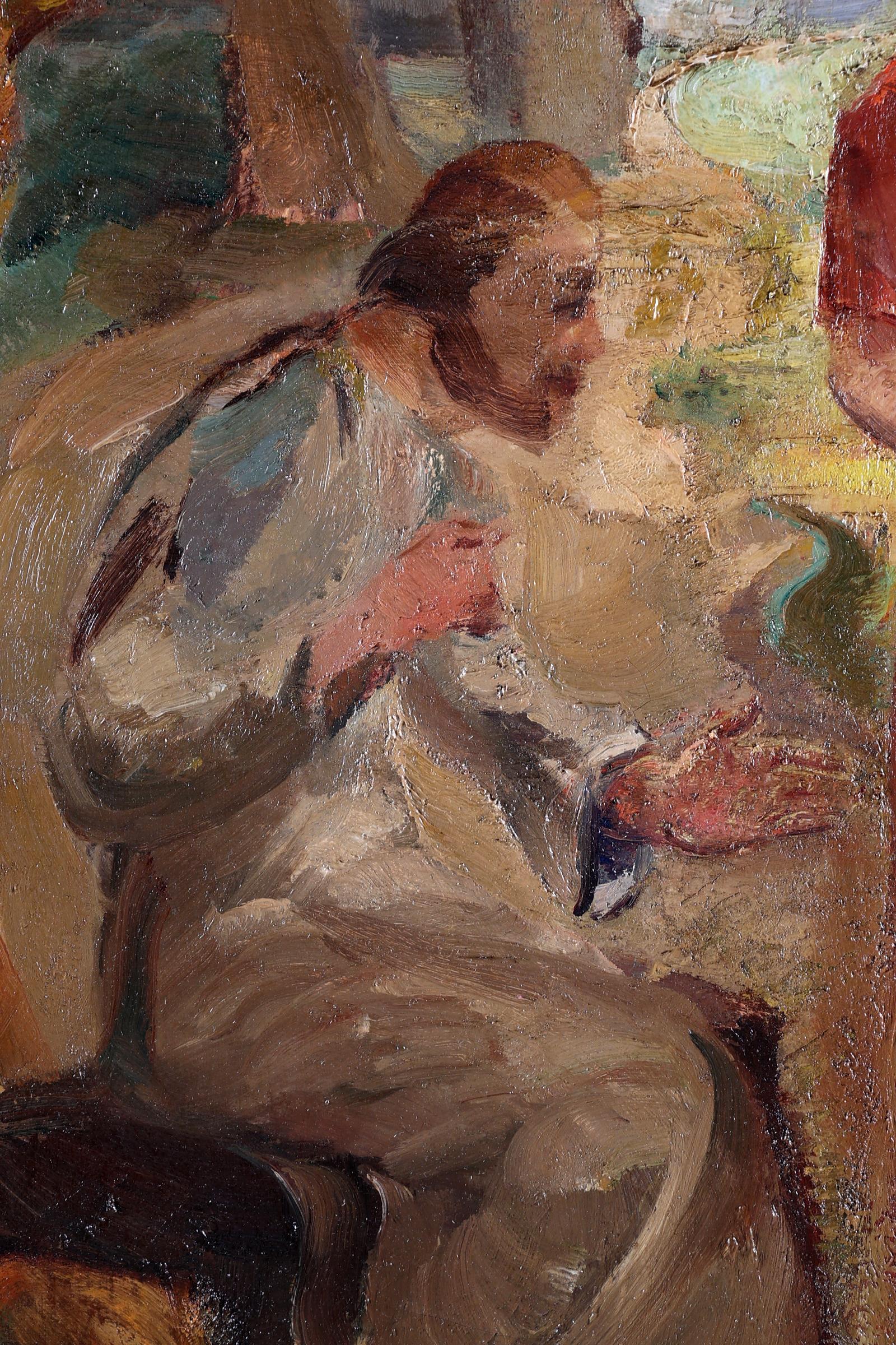 Toegeschreven aan Piet van Wijngaerdt (1873-1964), Religieuze voorstelling van Jezus en de Samaritaanse vrouw bij de waterput, maroelfe, 68 x 80 cm.