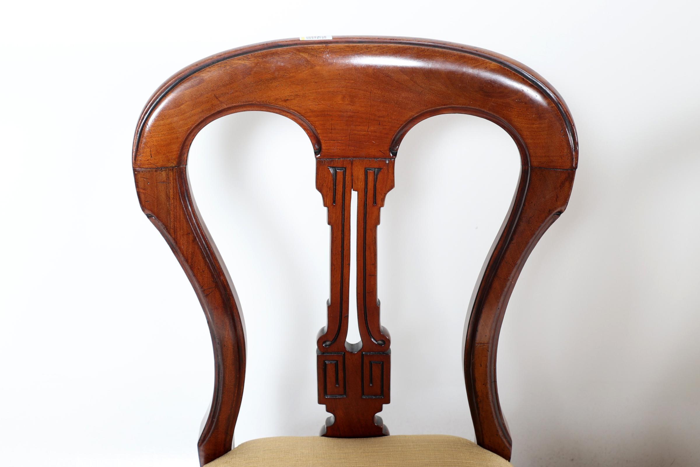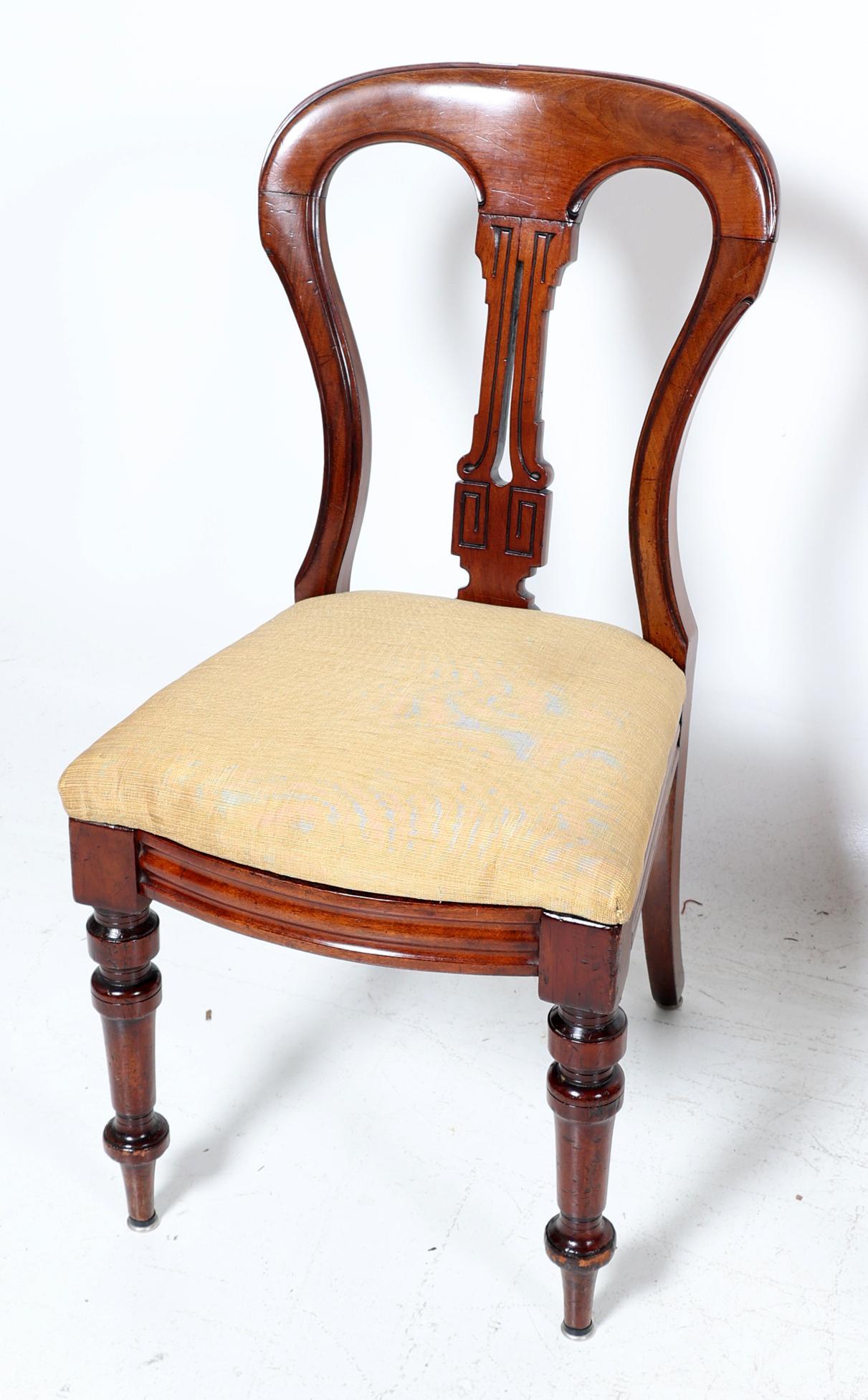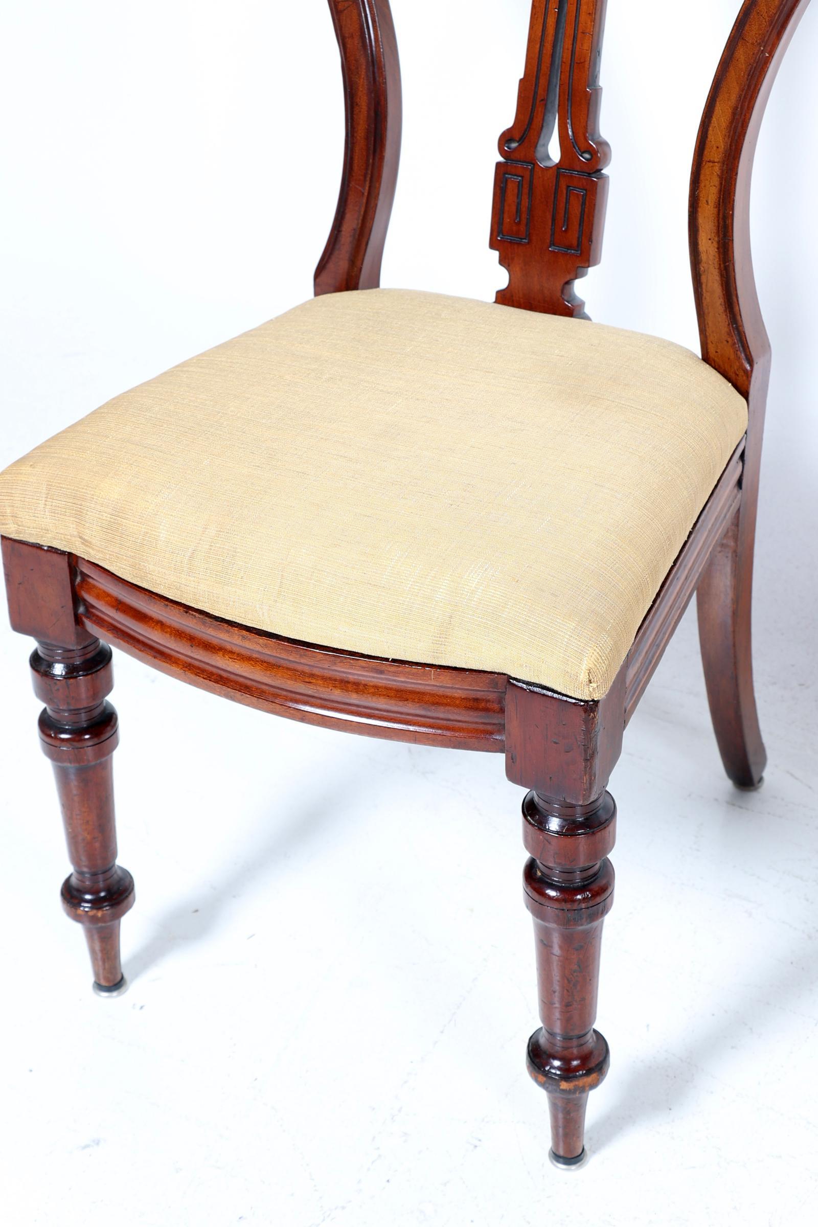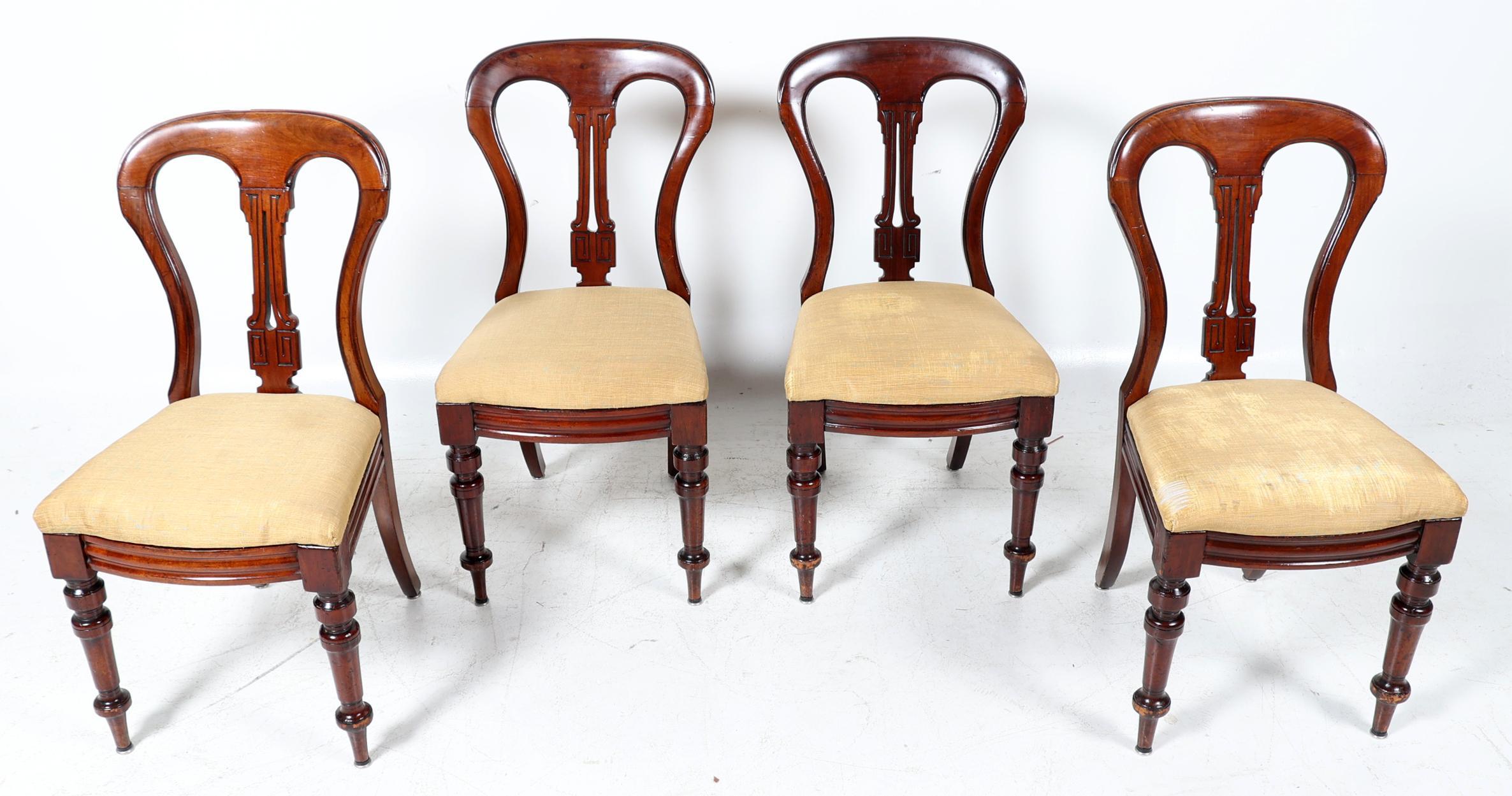 4 Antieke mahoniehouten medaillonstoelen met hartvormige rugleuning en met gele stof bekleed