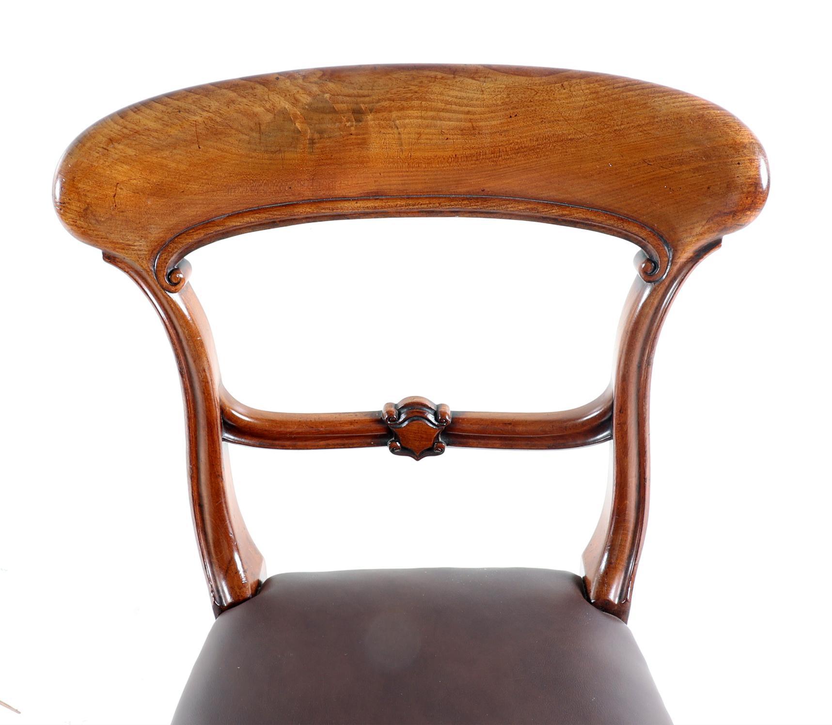 4 Antieke mahoniehouten oorstoelen met bruin leder bekleed
