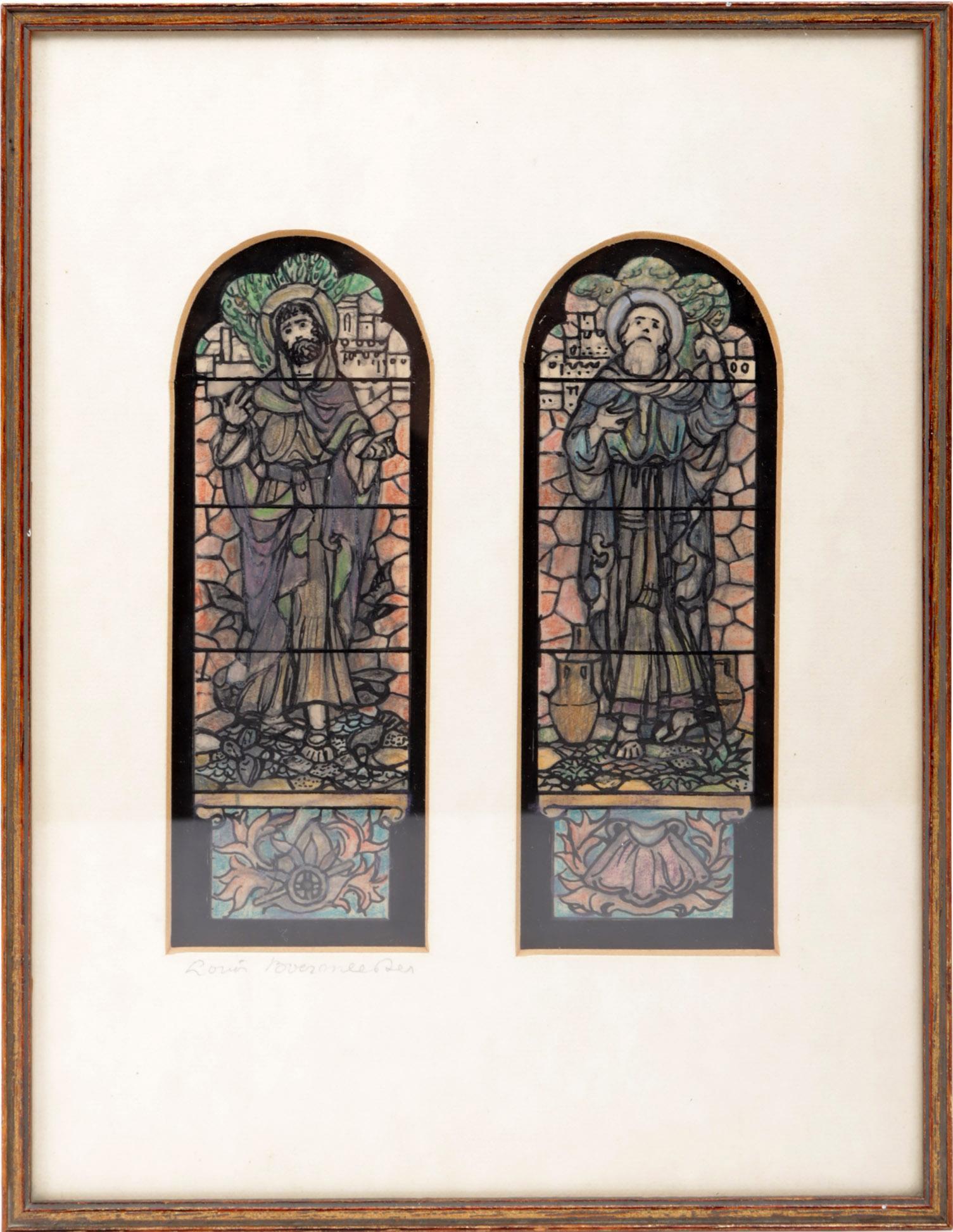 Louis Boermeester (1908-1992), Dubbel glas-in-lood ontwerp, gouache op papier, 26 x 20 cm.