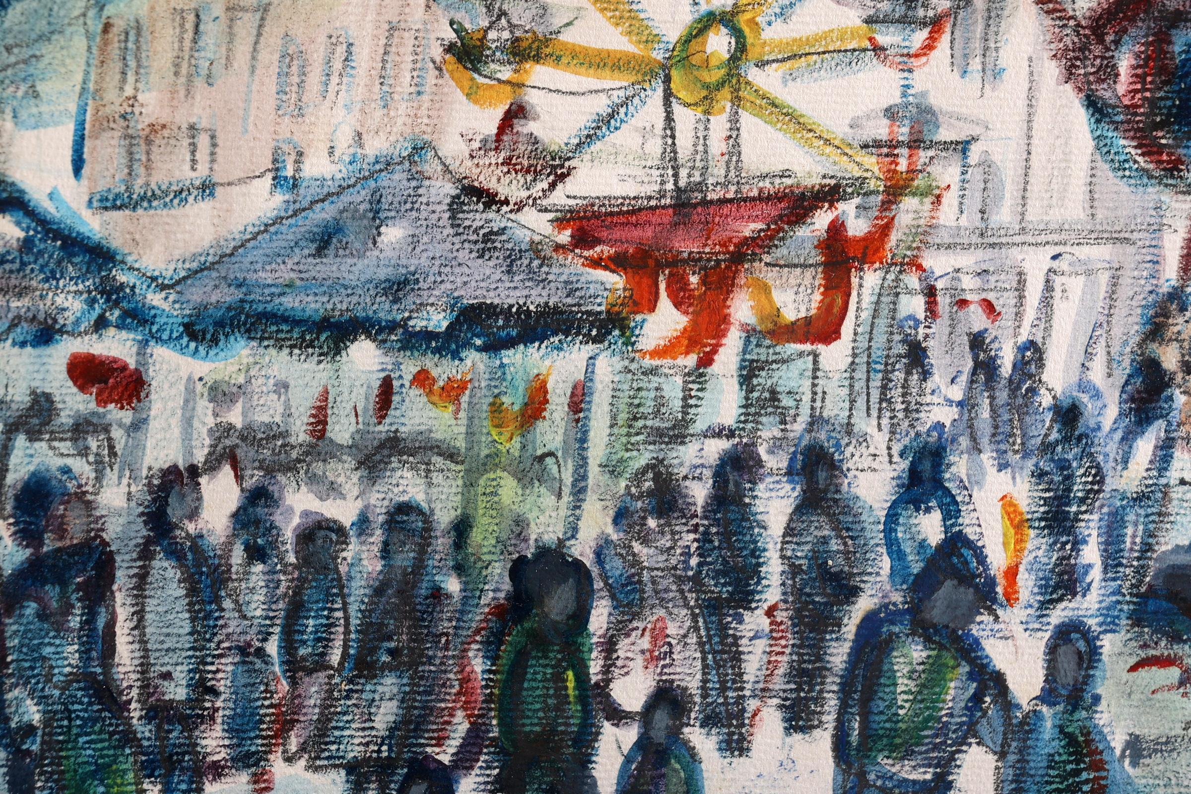 Onb.meester, draagt signatuur Dijkstra, Kermis met personen, aquarel, 31 x 25 cm.