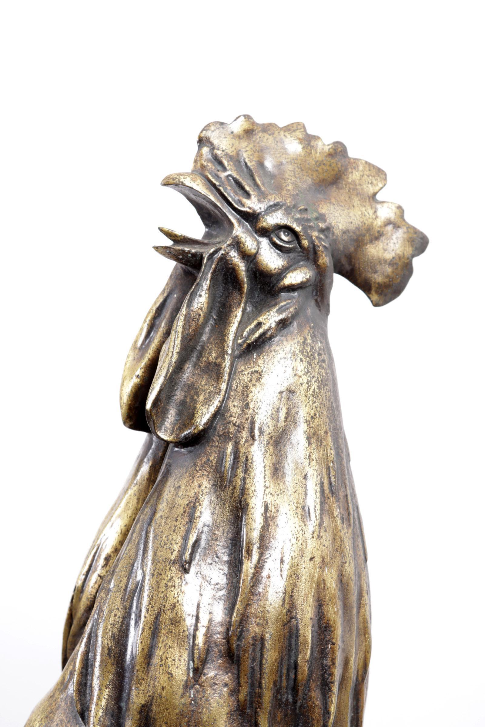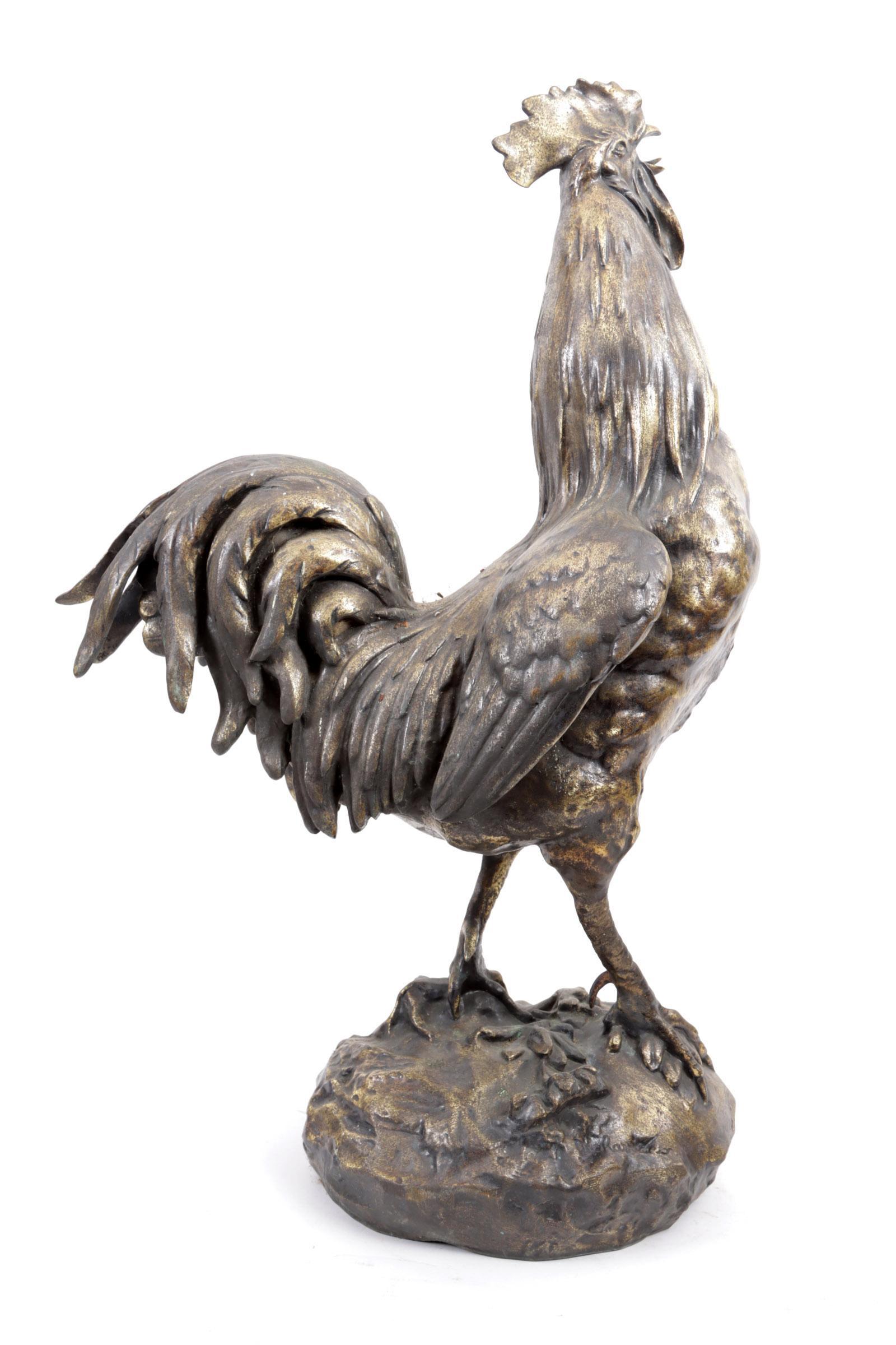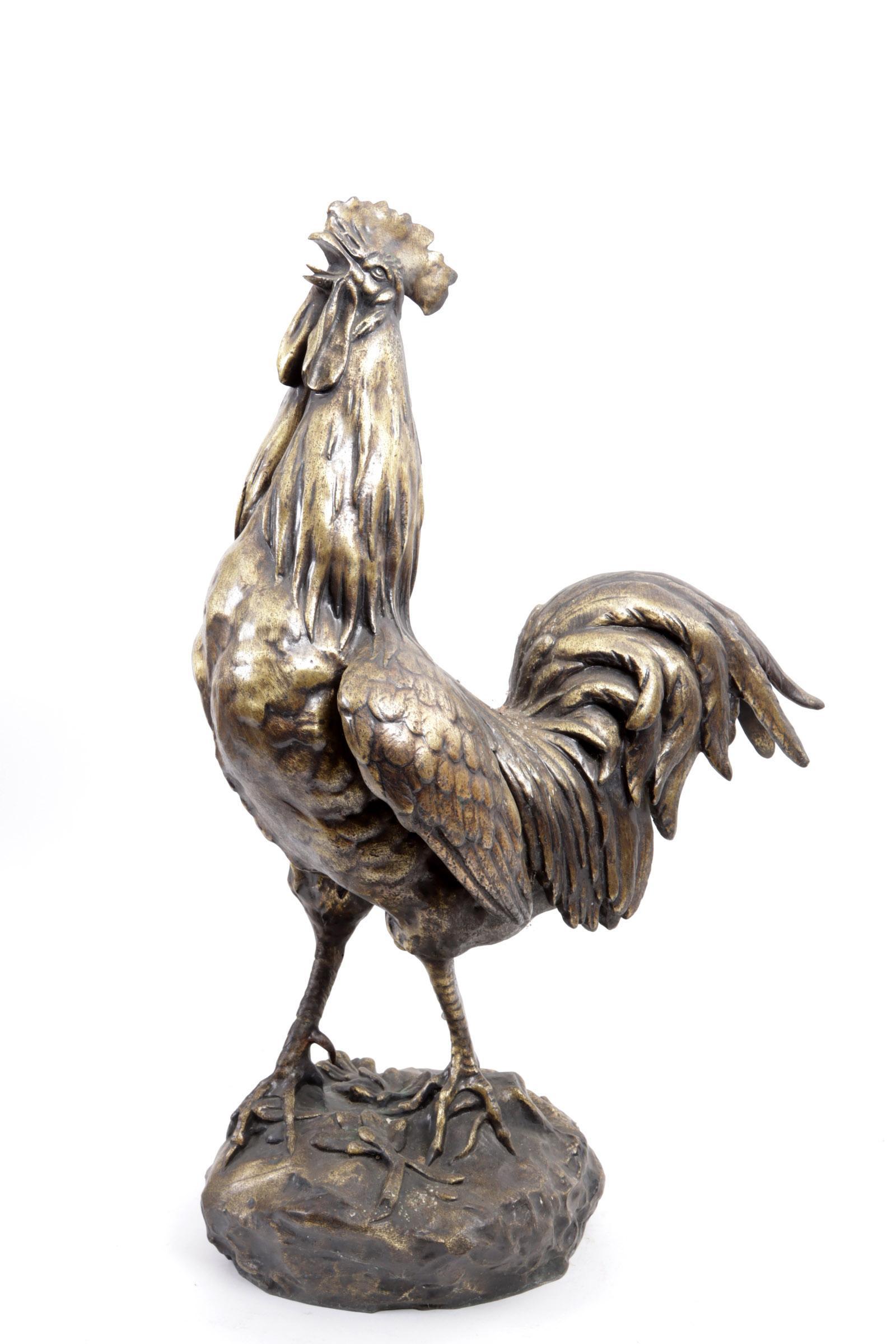 Ond.gesign., massief bronzen sculptuur van een haan, h.66 cm.