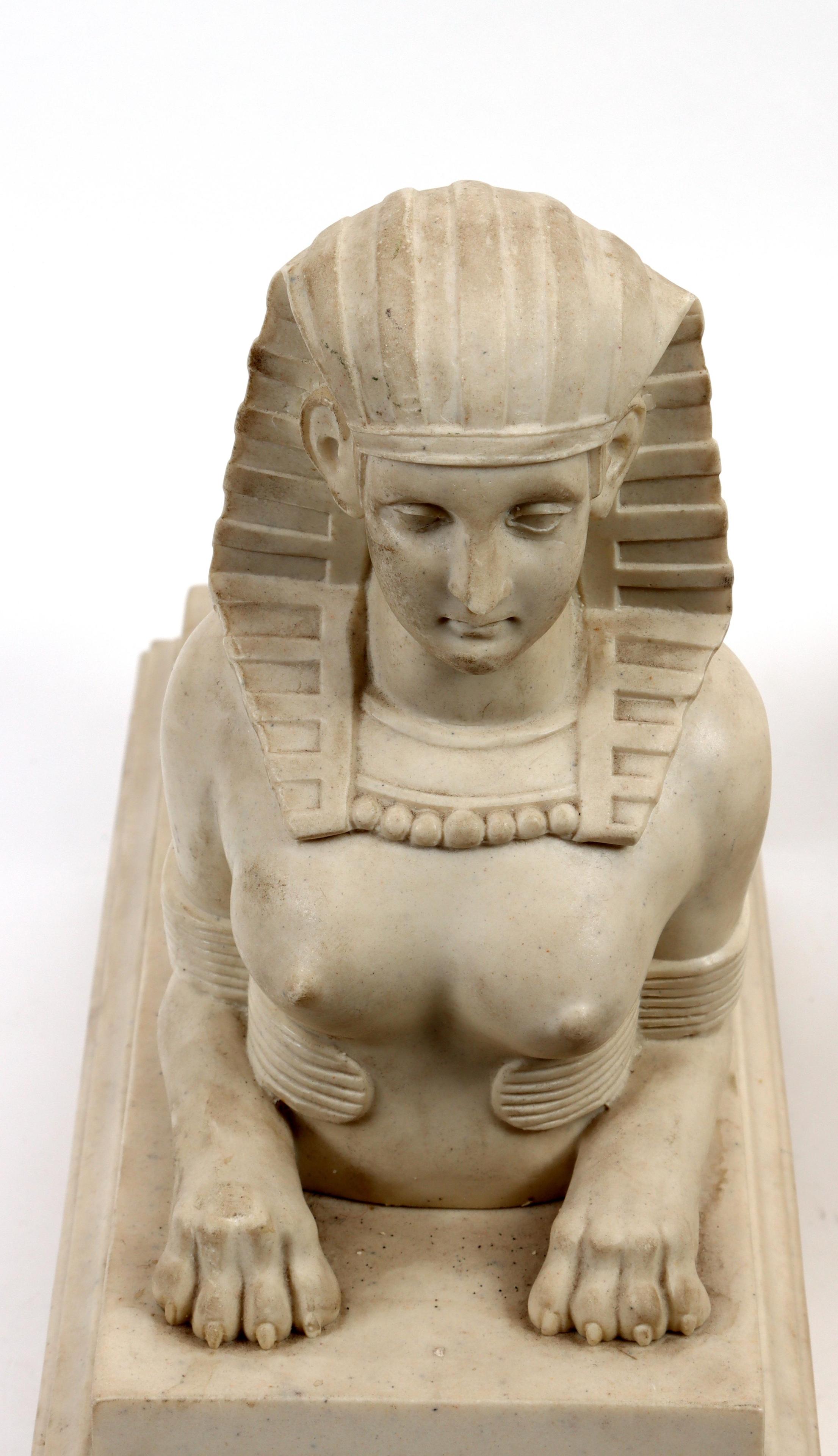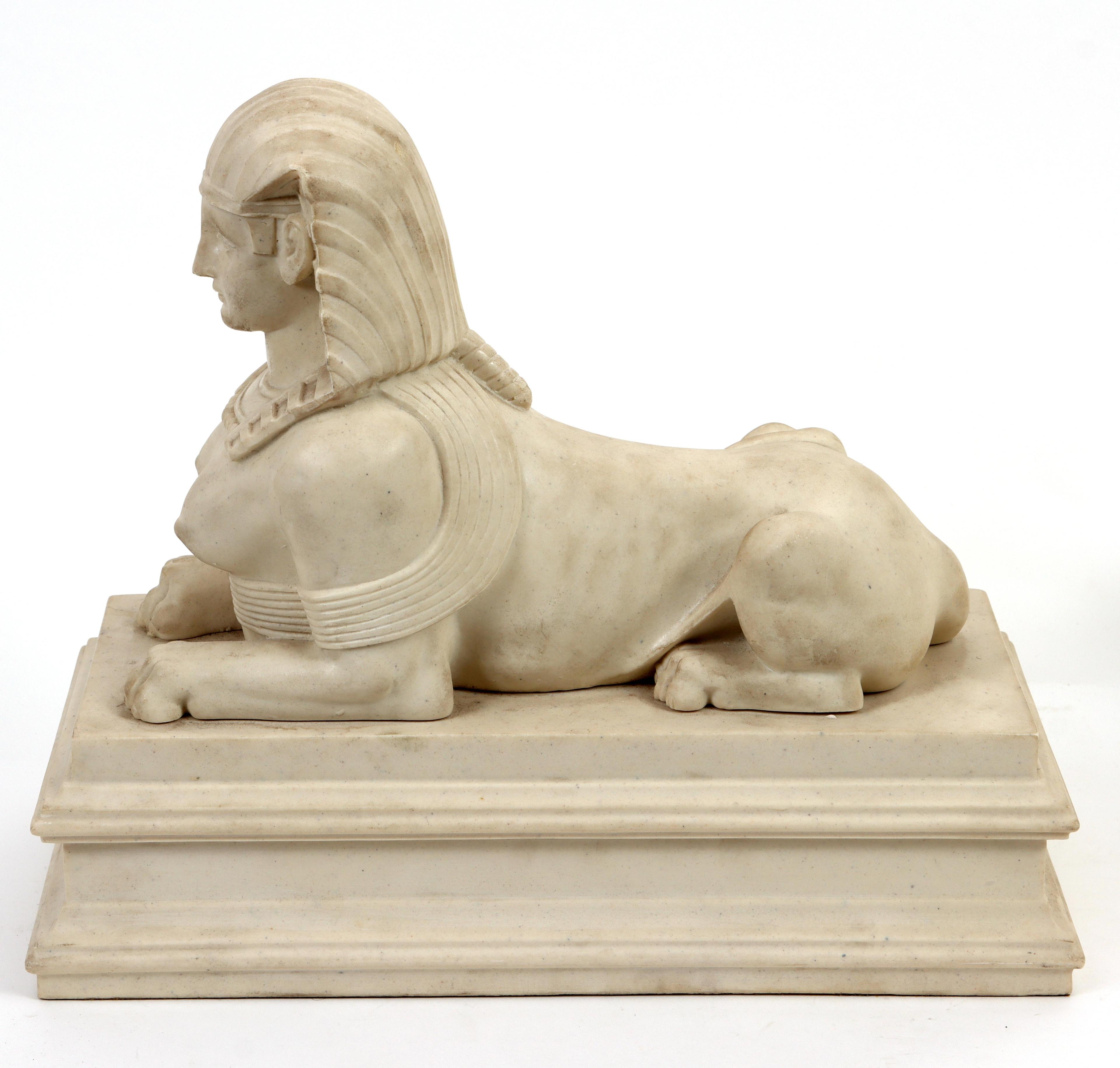 2 Composiet liggende sfinxen, h.28 x L.33 x b.14 cm.