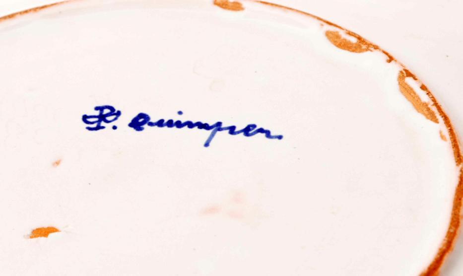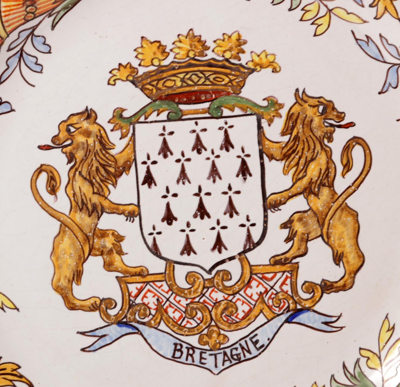 2 Gepolychromeerde stedenborden met Bretagne en Quimper, diam.24 cm.