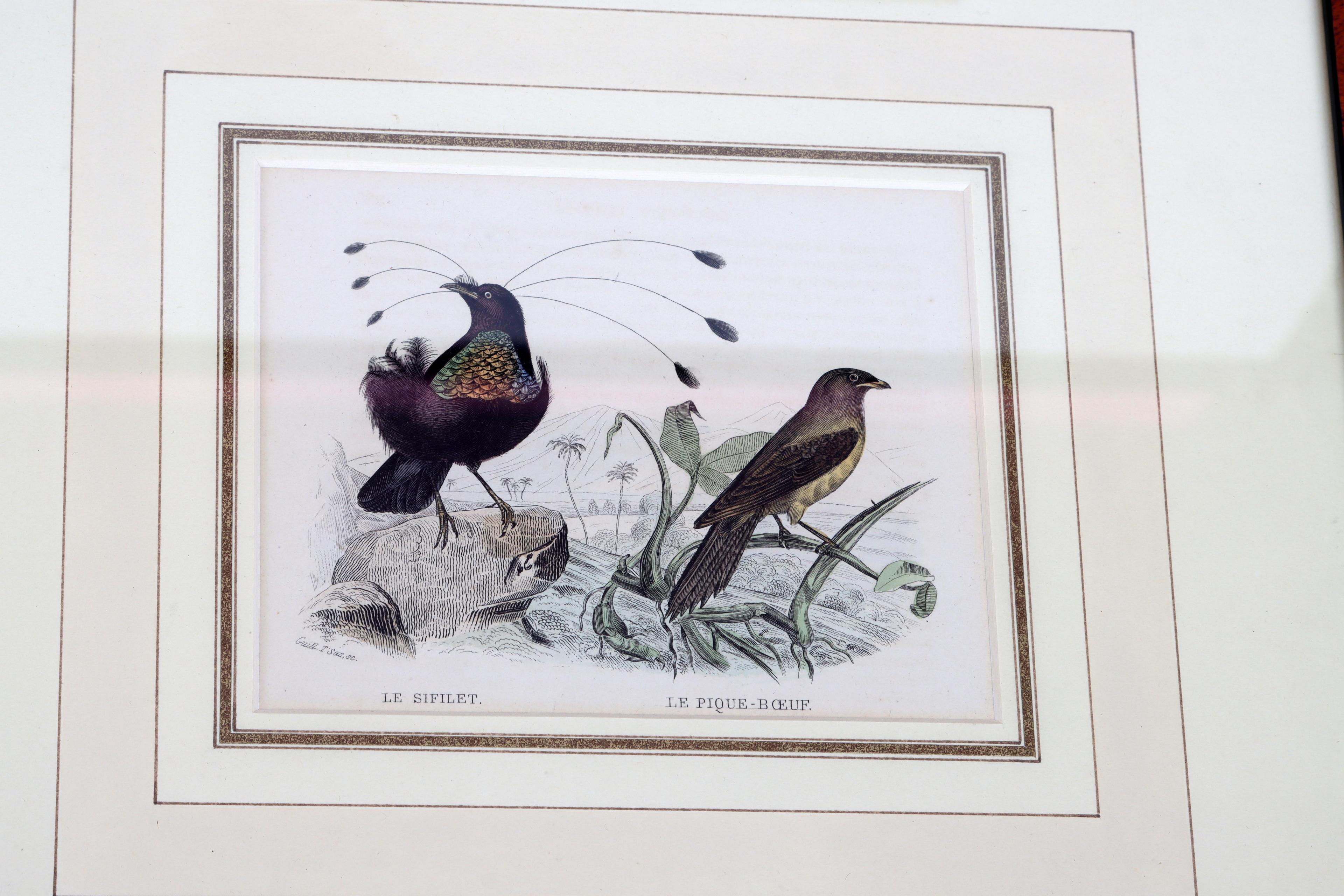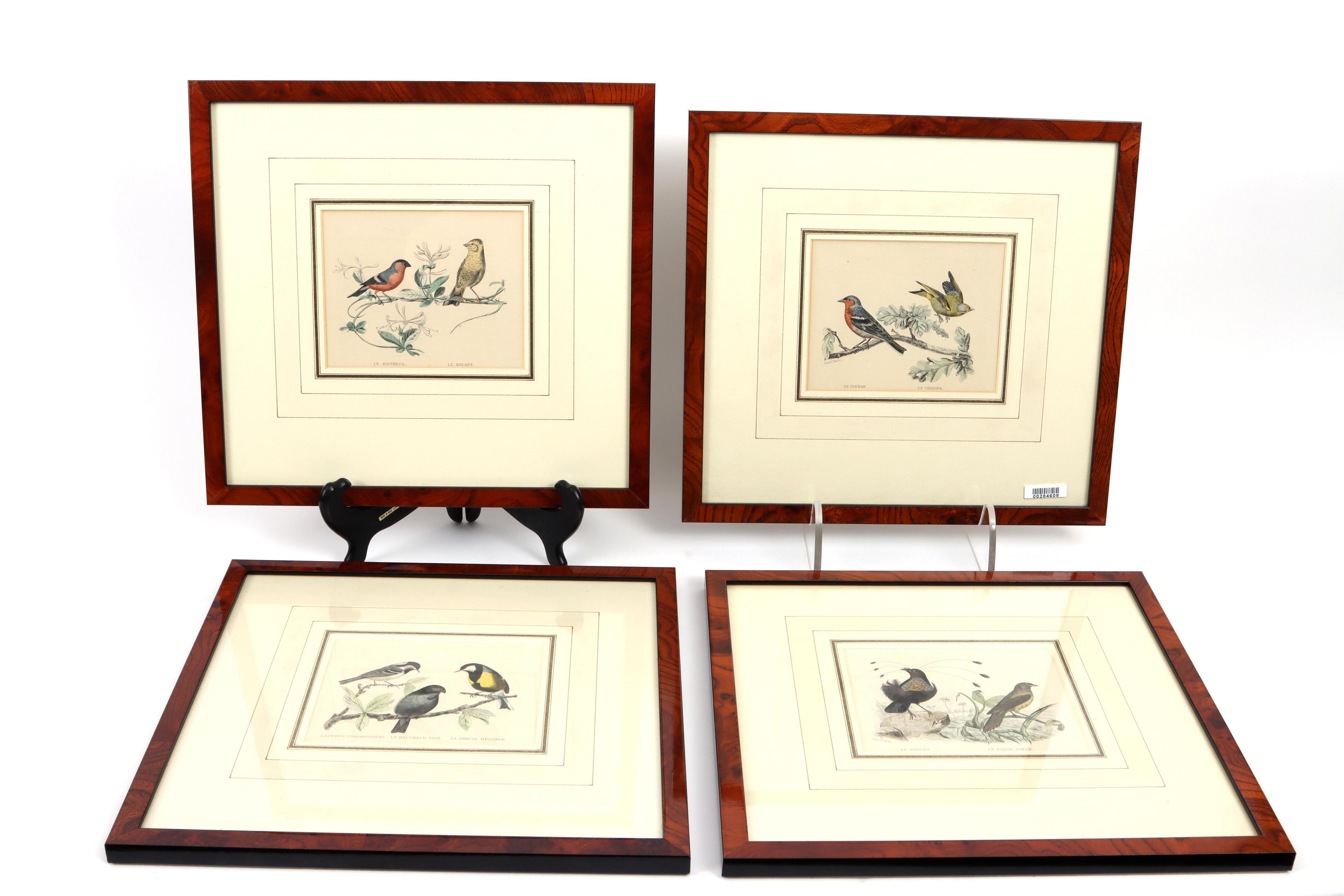 4 Antieke kleurgravures van vogels, 32 x 30 cm.