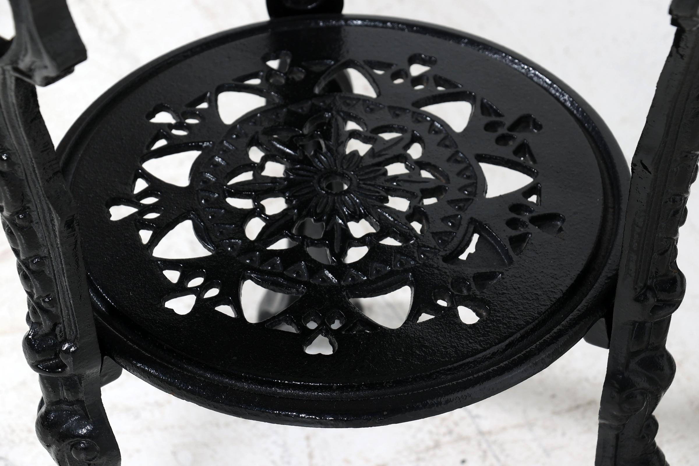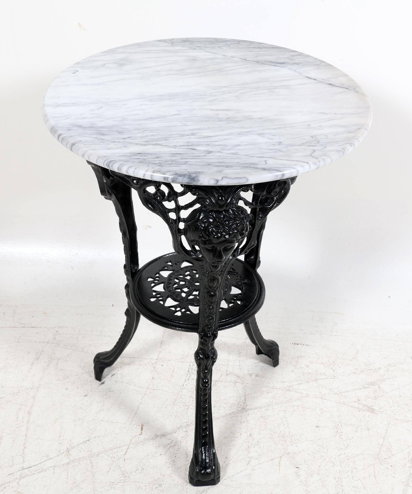IJzeren bijzettafel met wit marmeren blad, h.77 x diam.60 cm.