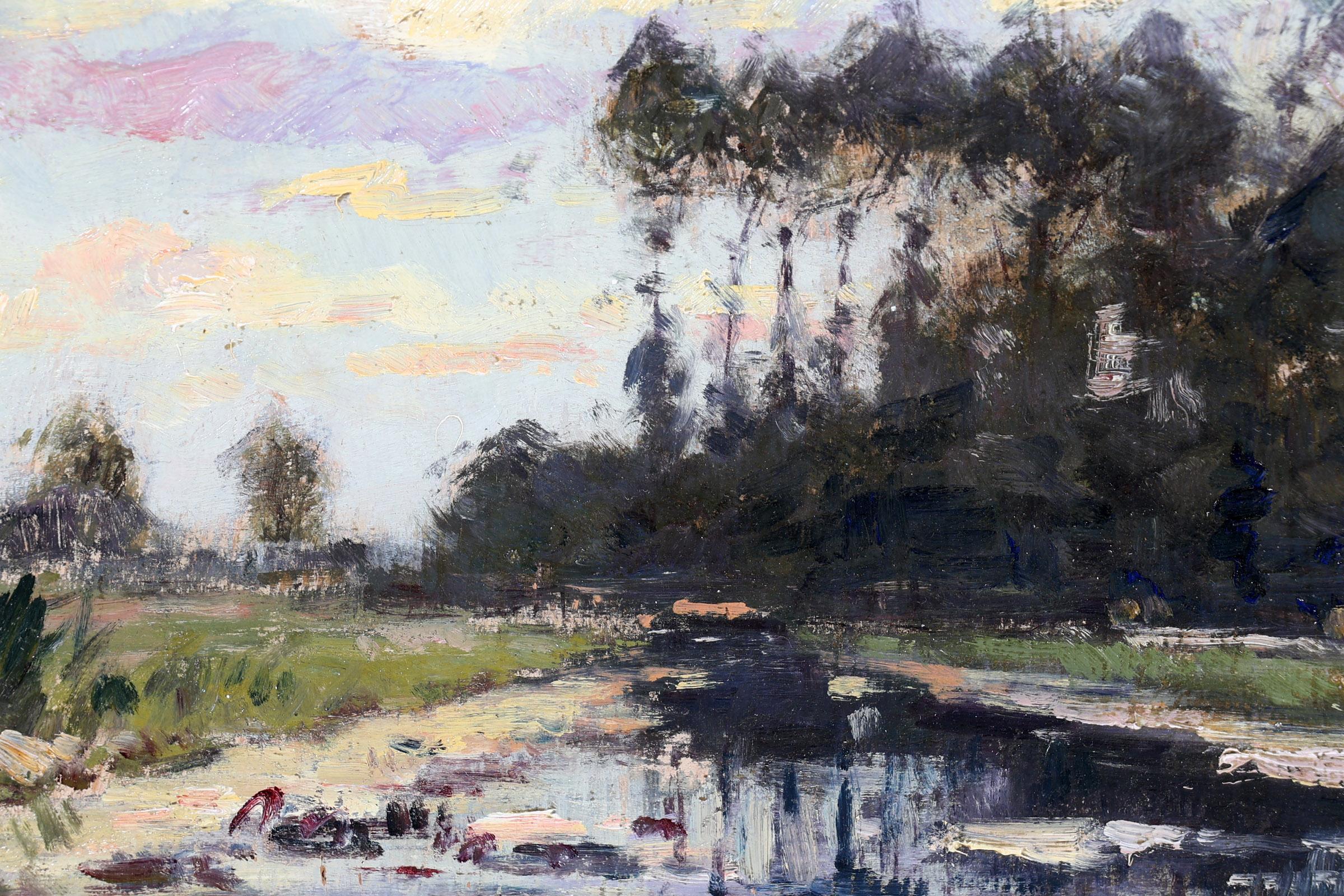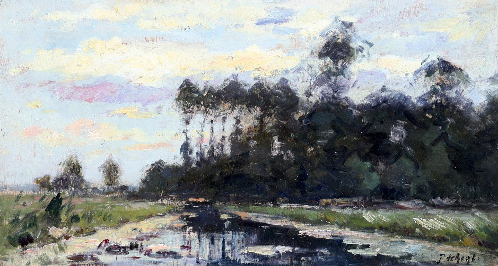 Pieter de Regt (1877-1960), Landschap met bosven en bomen, olieverf op paneel, 39 x 21 cm., provenance particuliere collectie Nederland