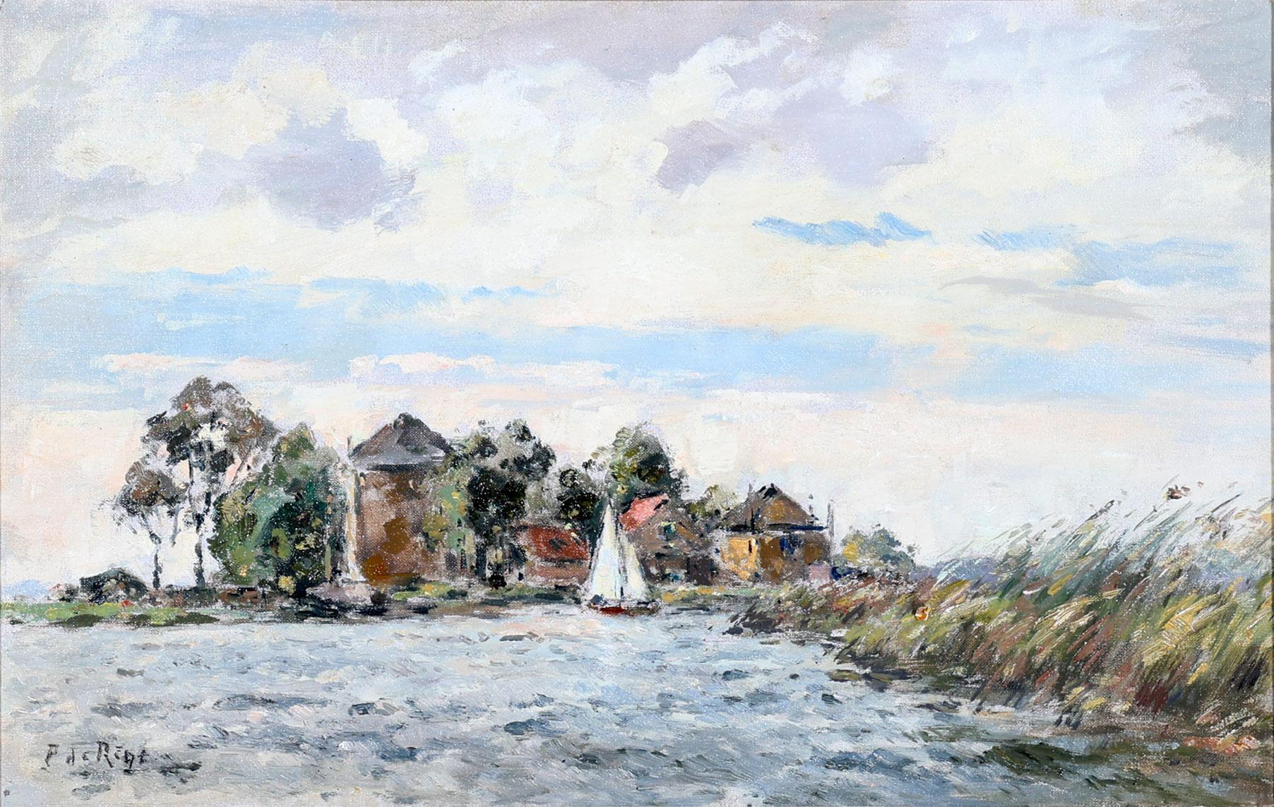 Pieter de Regt (1877-1960), Zeilboten op de Kaag, maroefle, 53 x 34 cm., provenance particuliere collectie Nederland