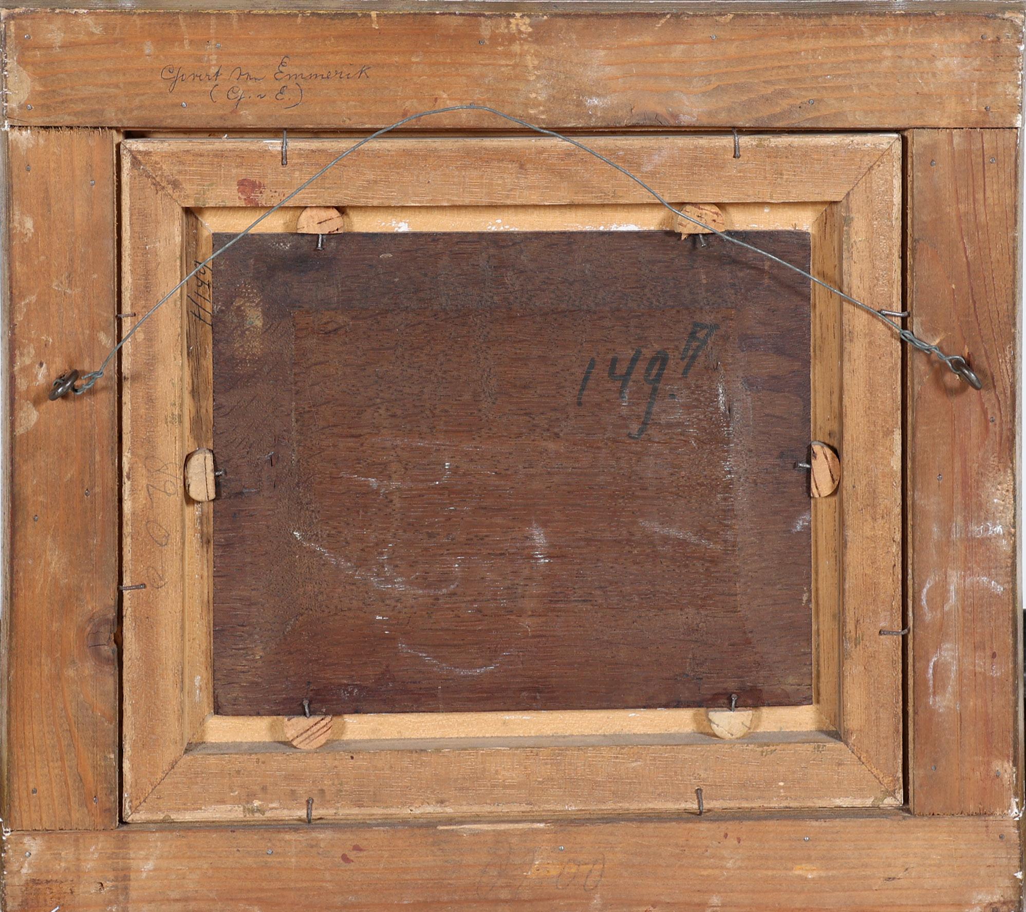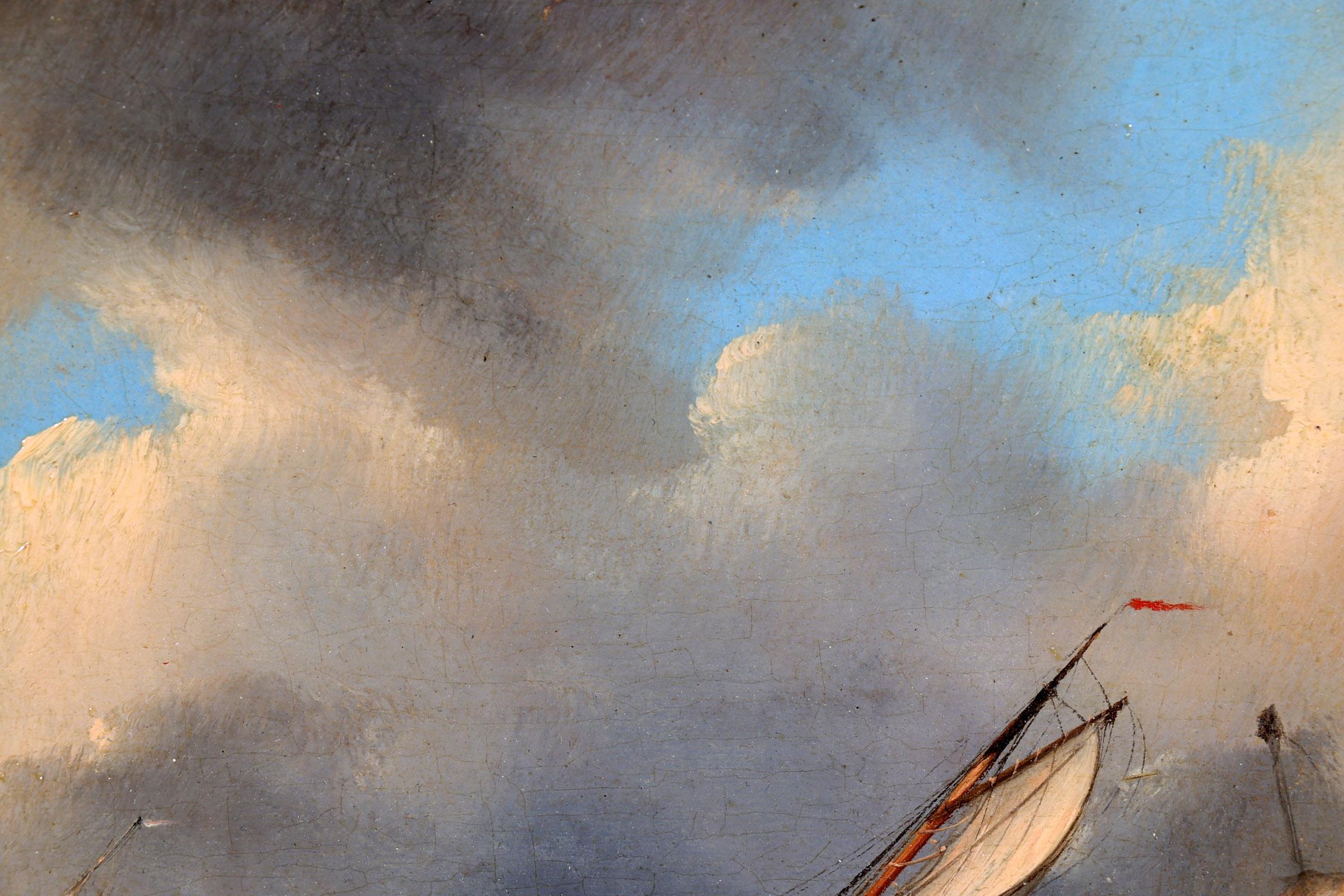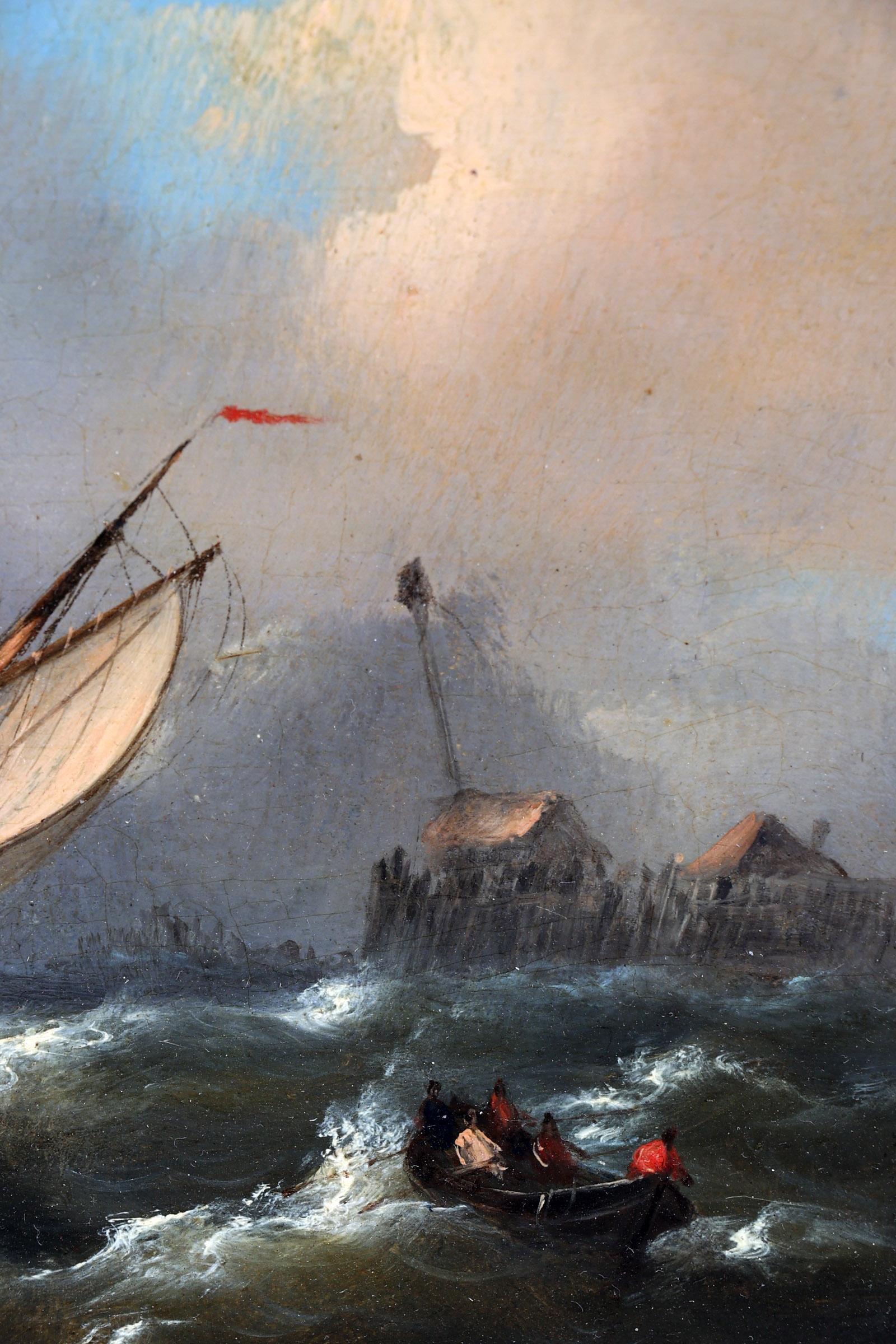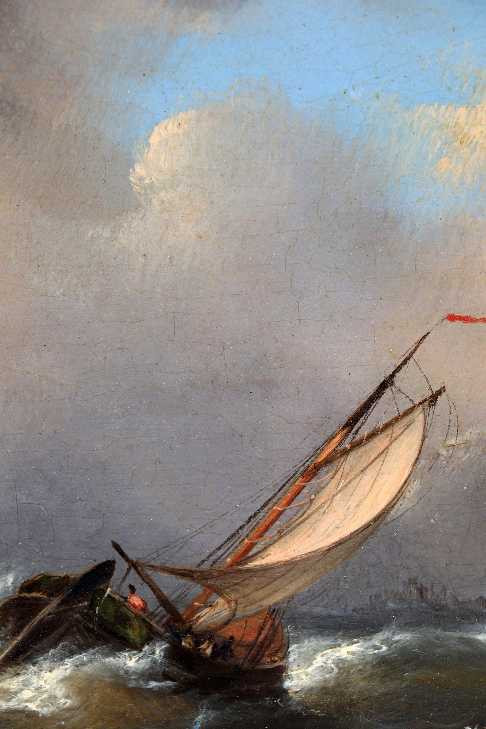 Monogram G. van E. (Govert van Emmerik (1808-1882)), Zeilschepen op de wilde zee voor de kust, olieverf op paneel, 25 x 18 cm., provenance particuliere collectie Nederland