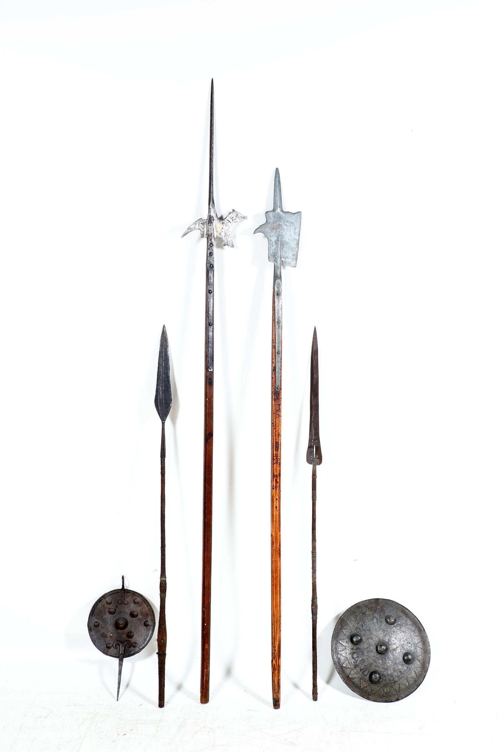 Koop van twee speren, 2 keer een Hellebaard en twee schilden