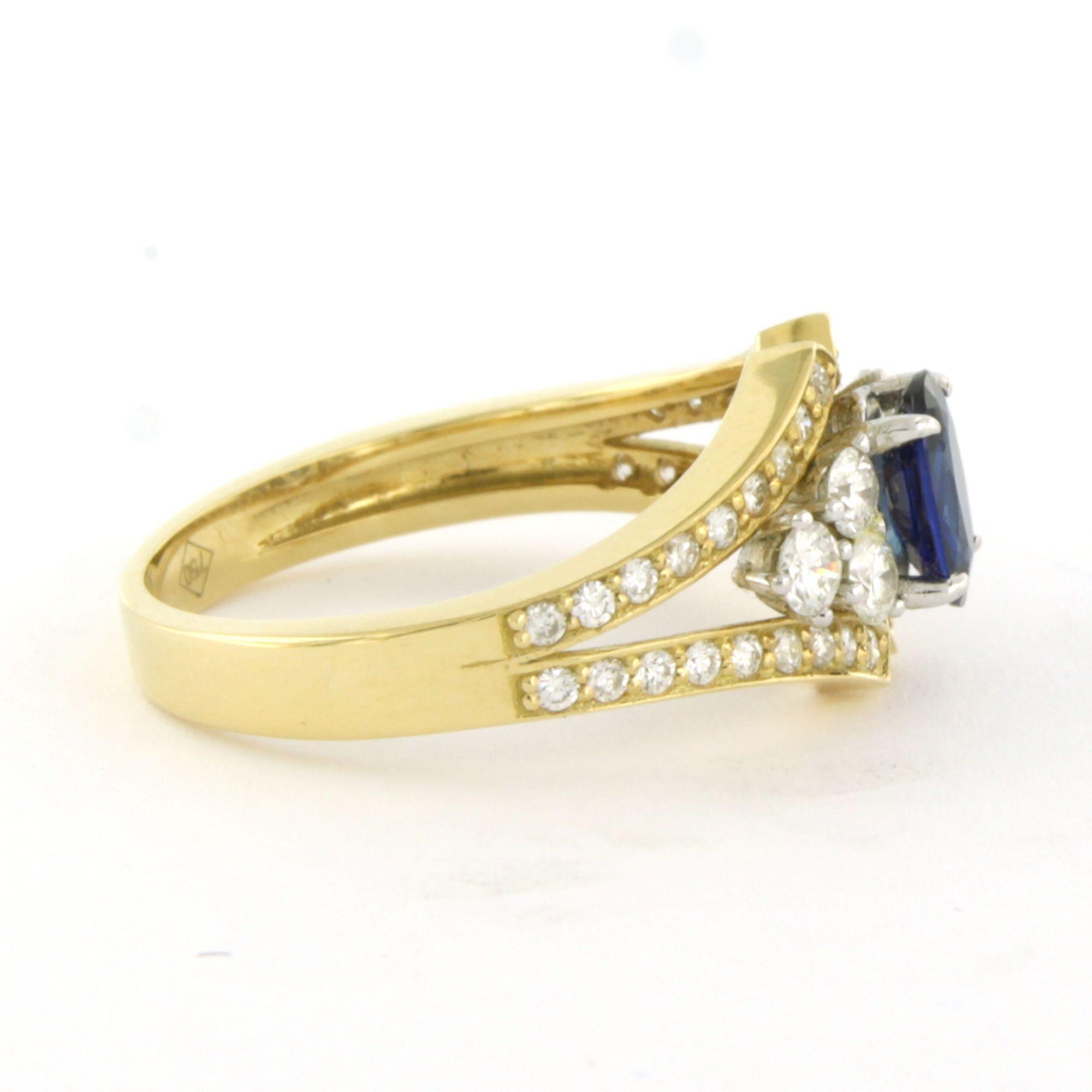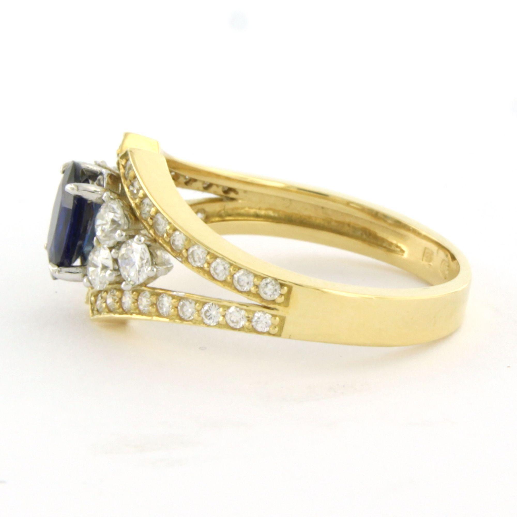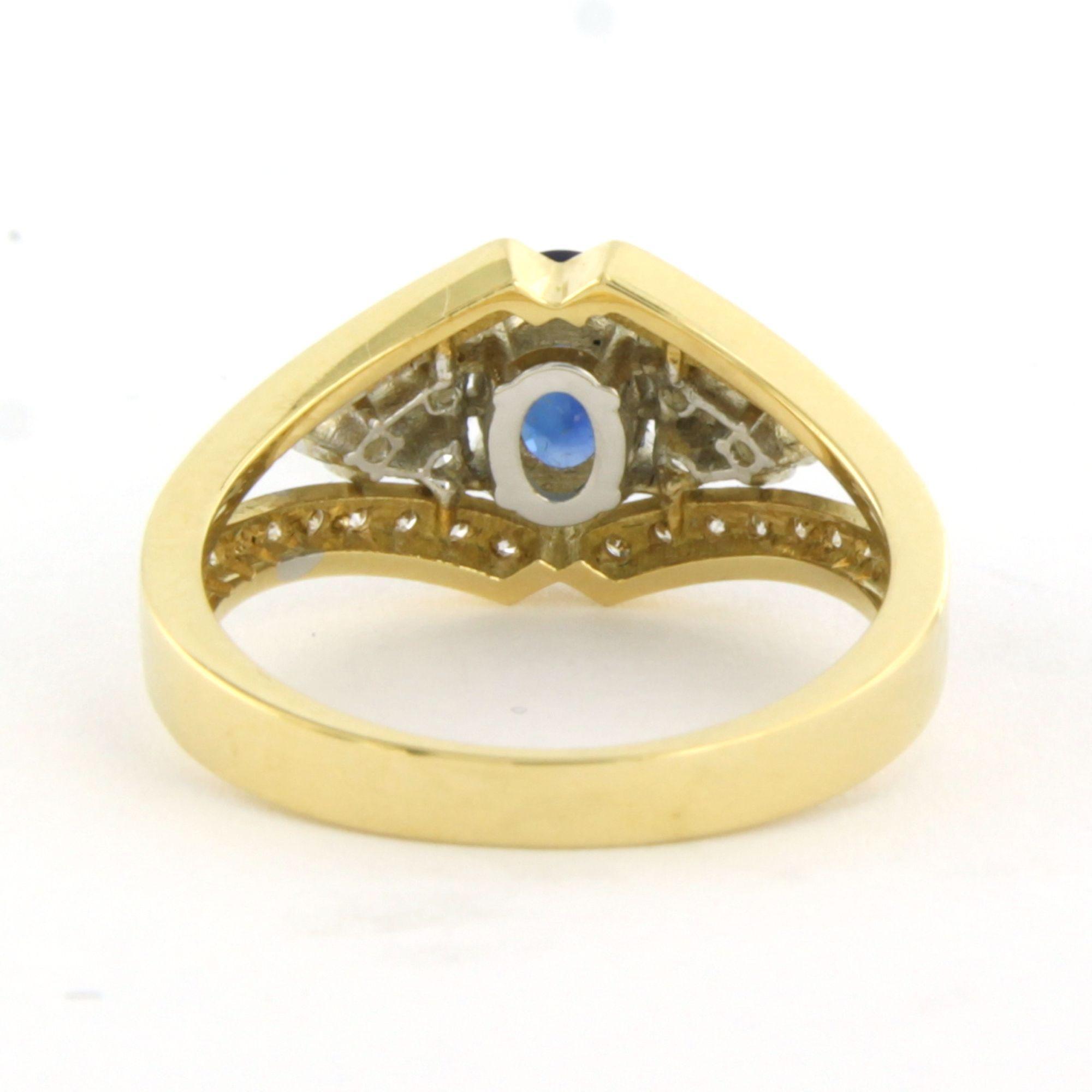 18 Kt. bicolour gouden ring bezet met saffier 0.69 ct en briljant geslepen diamanten tot. 0.70 ct F/G VS/SI - ringmaat 17.5 (55)