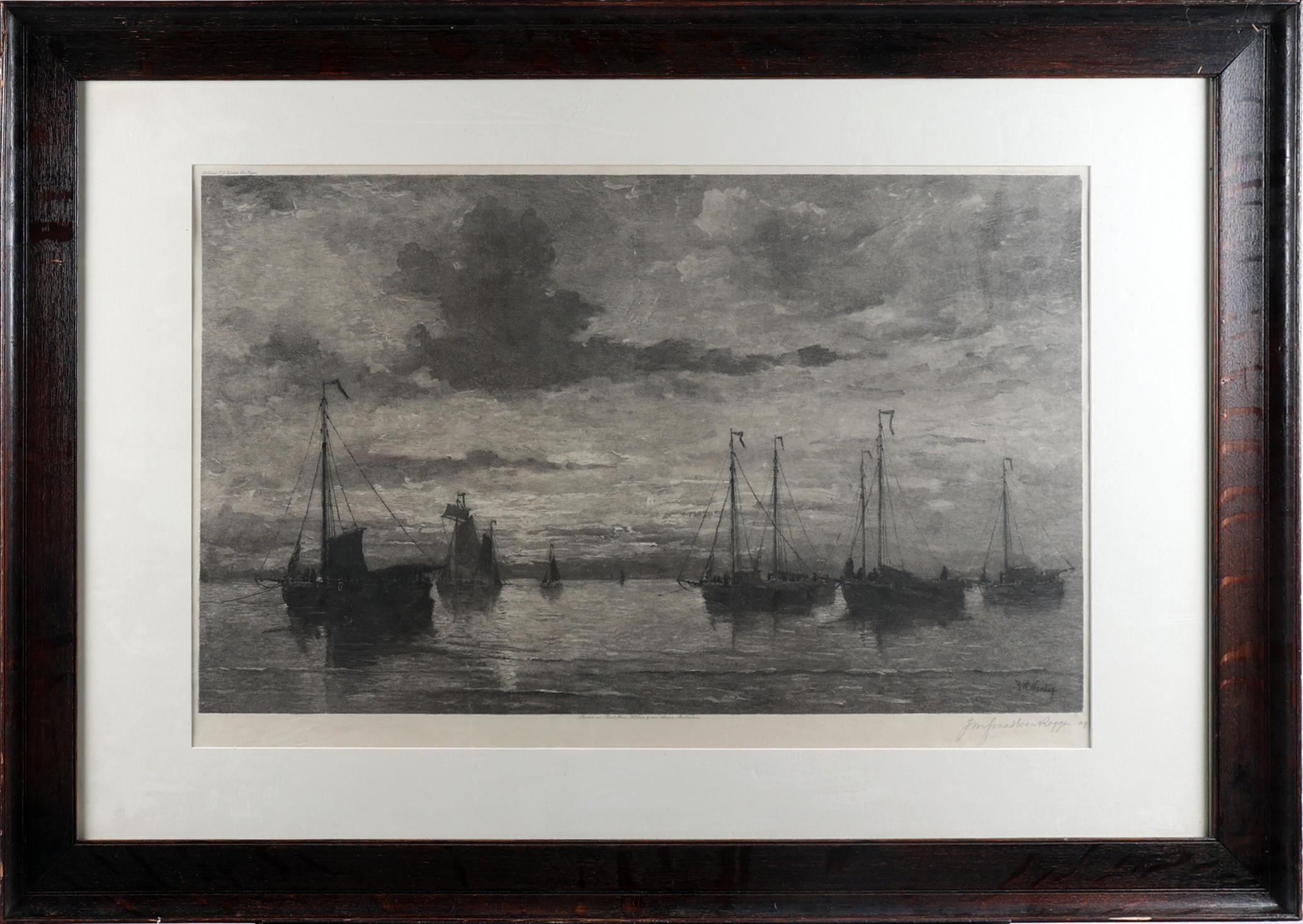 J.M. Graadt van Roggen, handgesigneerde lithografie van H.W. Mesdag, totaal 72 x 101 cm., provenance particuliere collectie Nederland