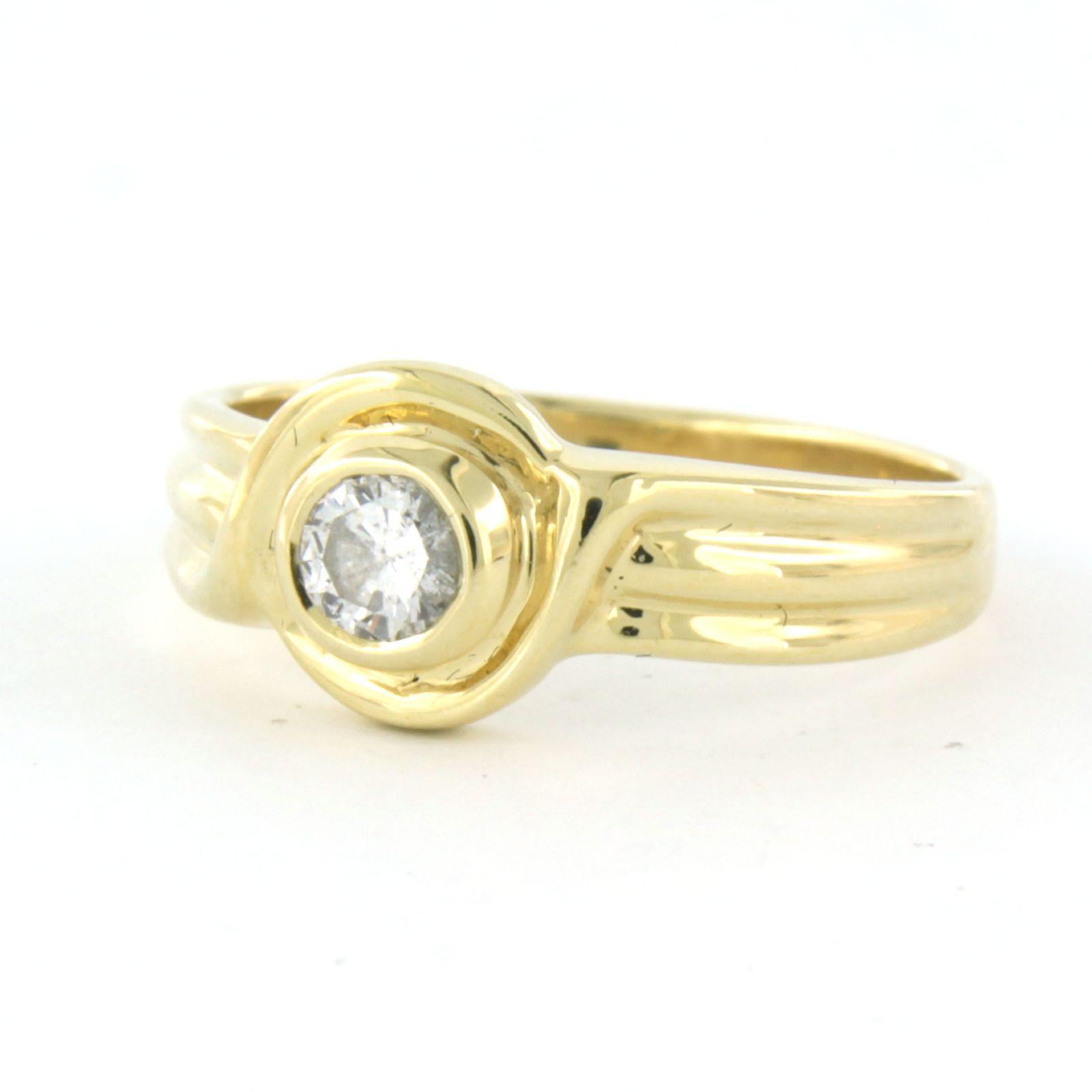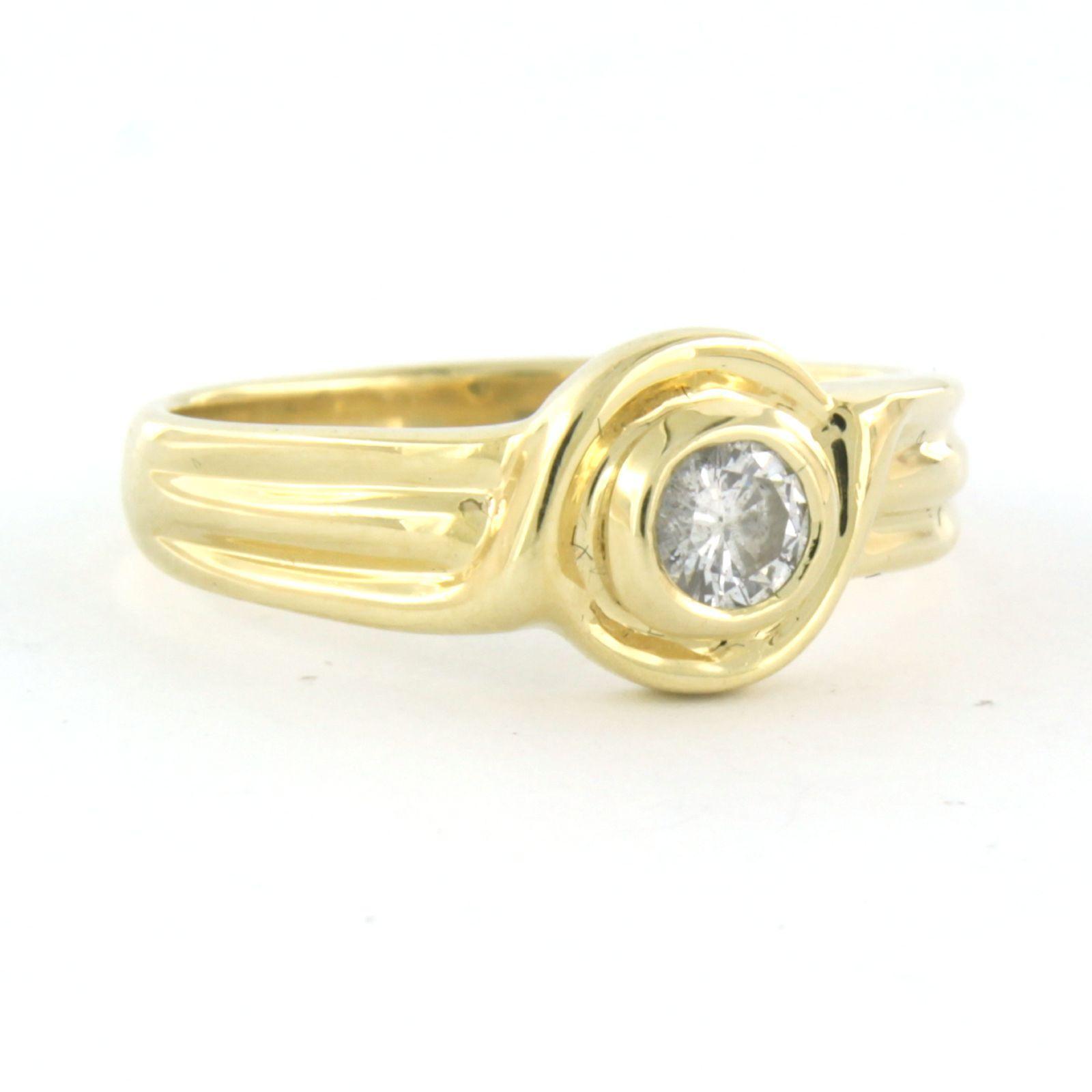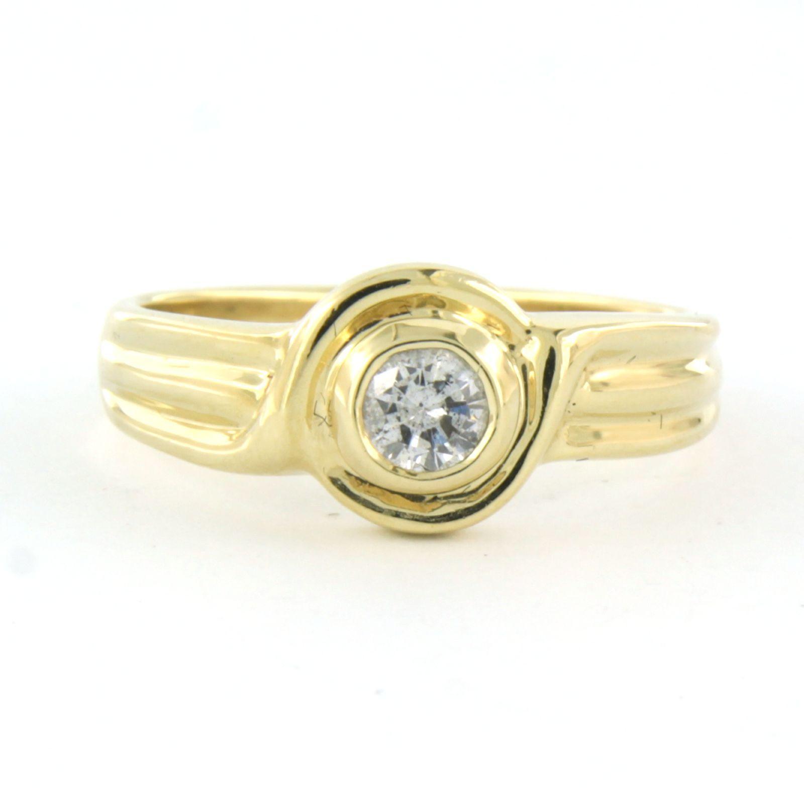 14 Kt. geelgouden solitair ring bezet met briljant geslepen diamant tot. 0,23ct - I/J - pique - ringmaat 17(53)