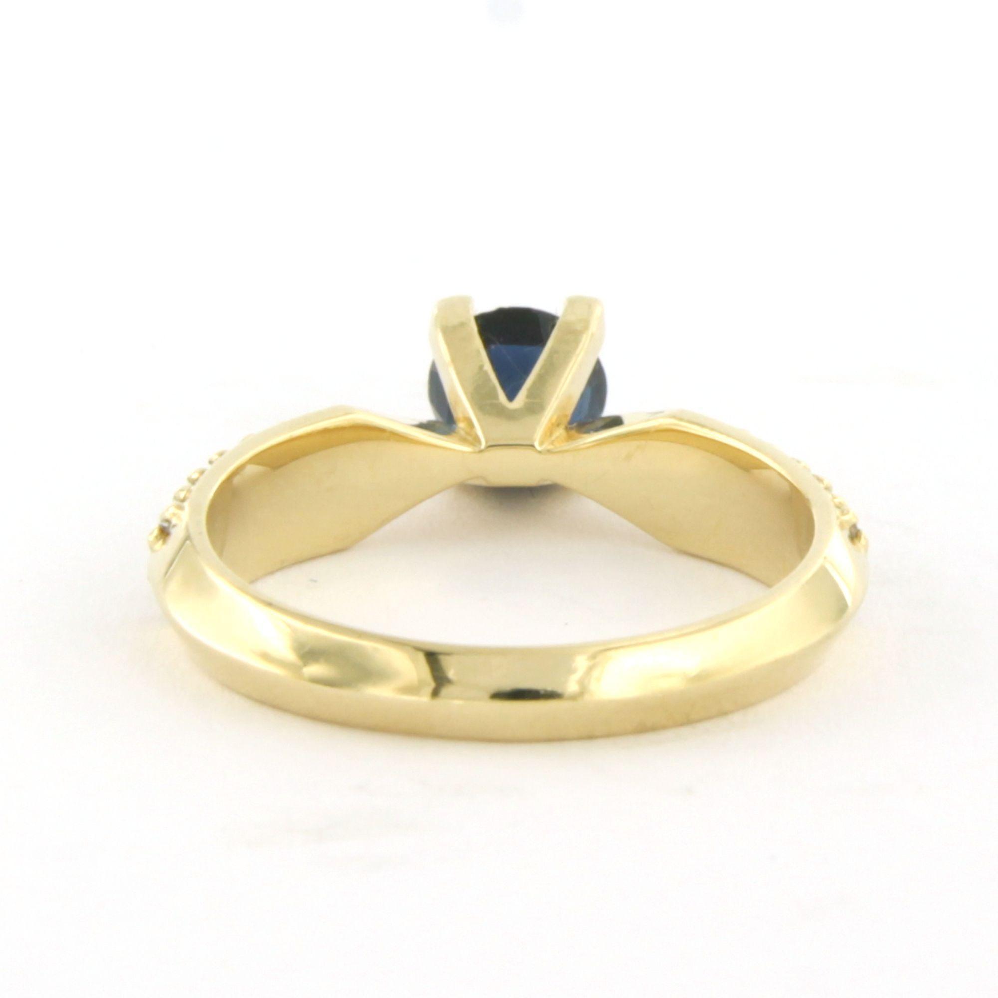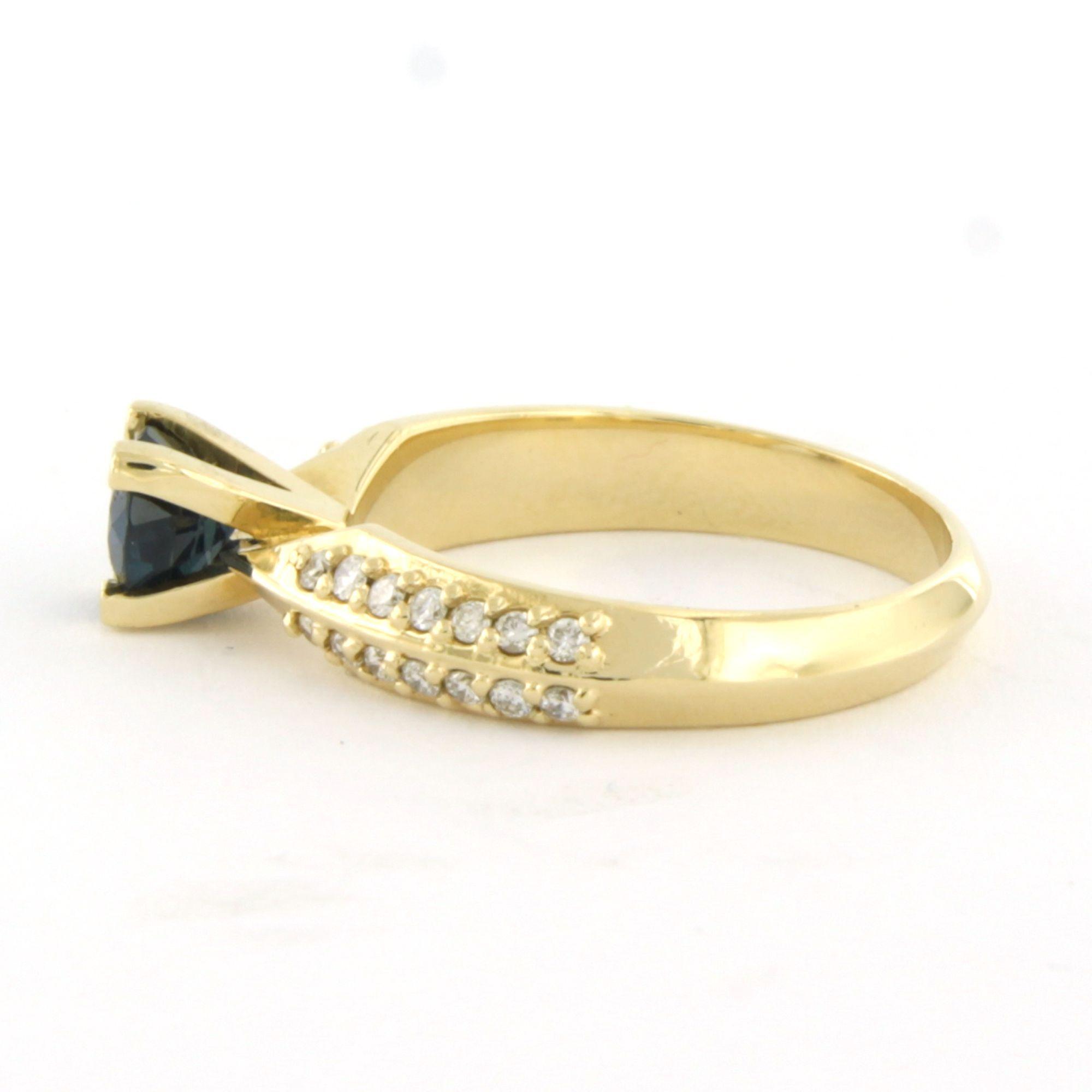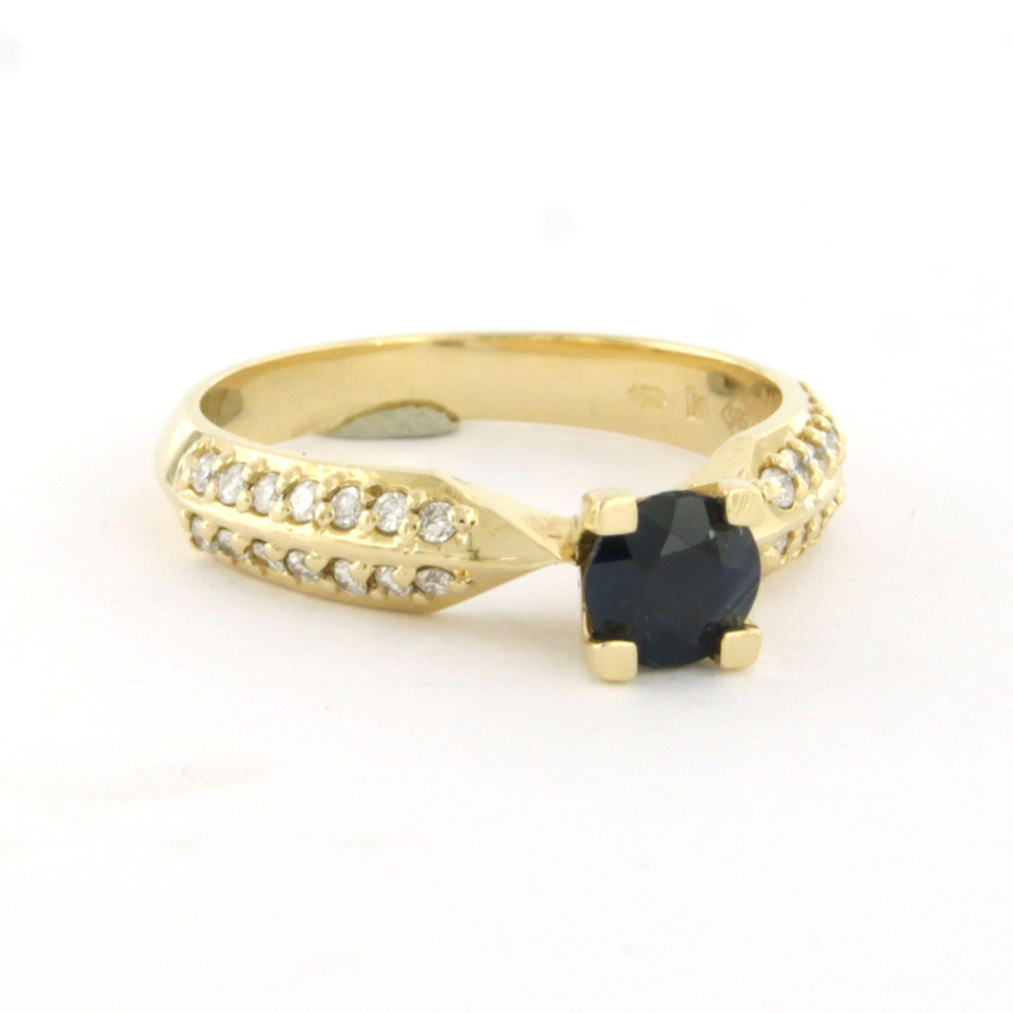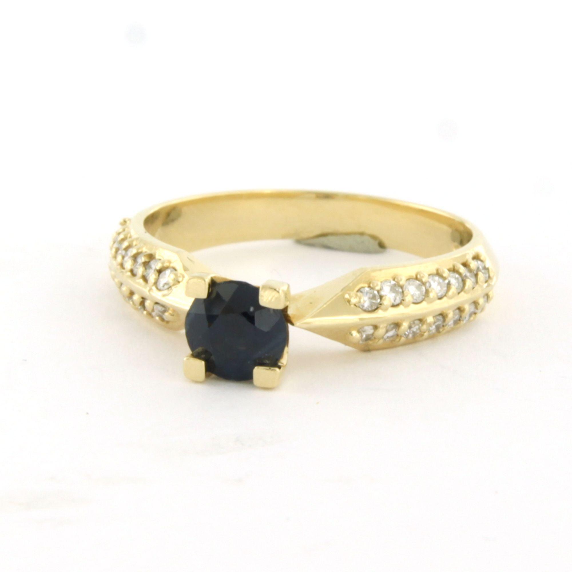 14 Kt. geelgouden ring bezet met saffier 0.80 ct en briljant geslepen diamanten tot. 0.22 ct F/G VS/SI - ringmaat 17 (53)