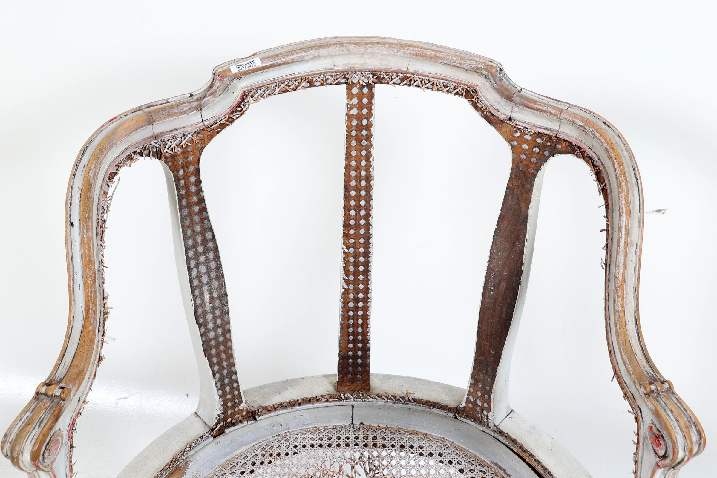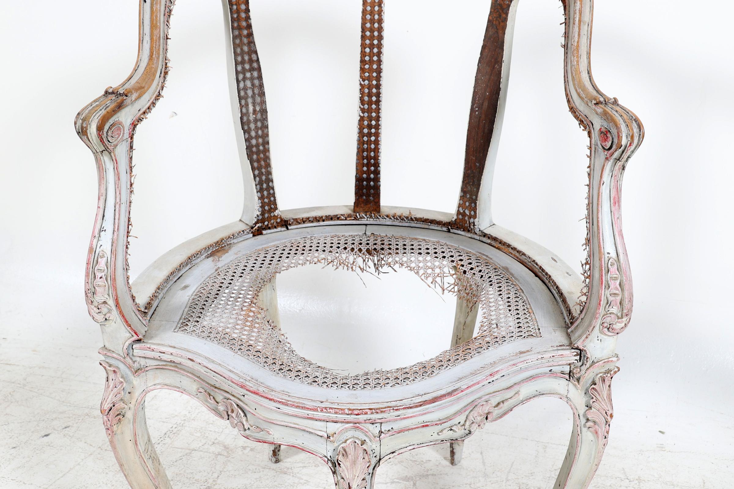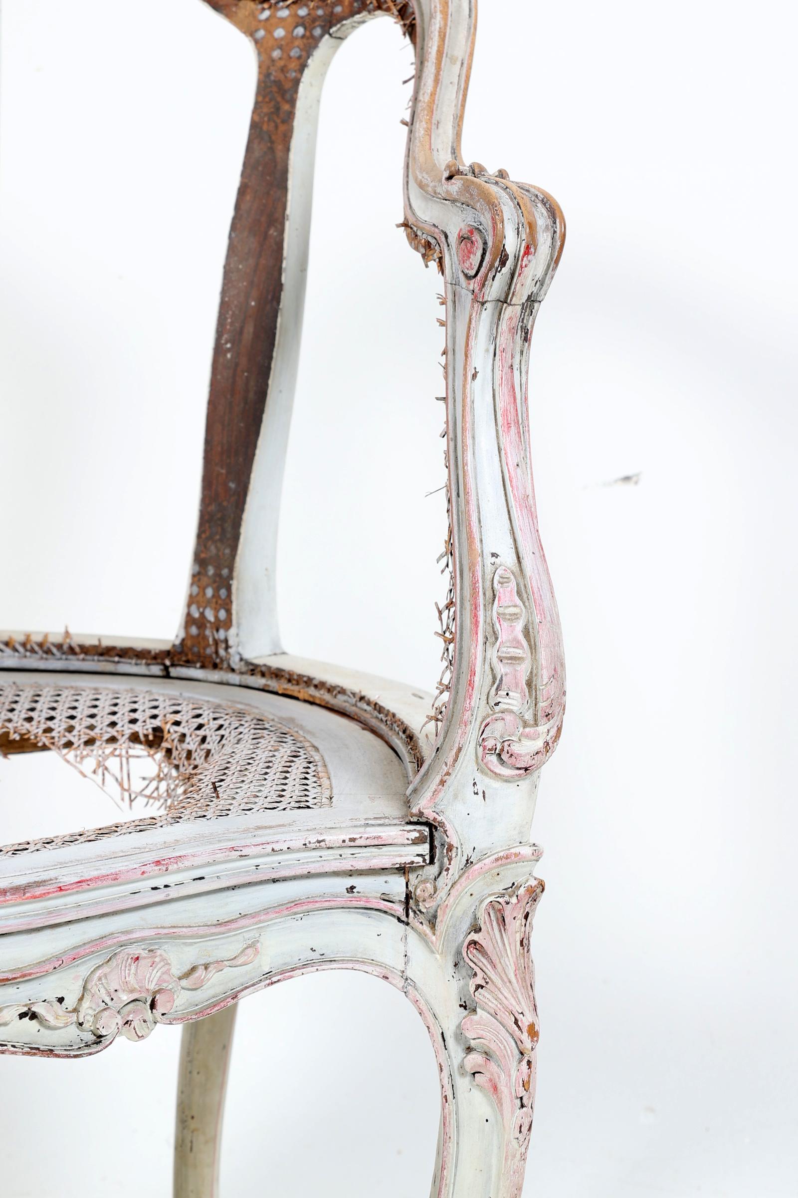 Wit gelakte Louis XV armfauteuil voorheen met webbing zitting en rugleuning (restauratie object)