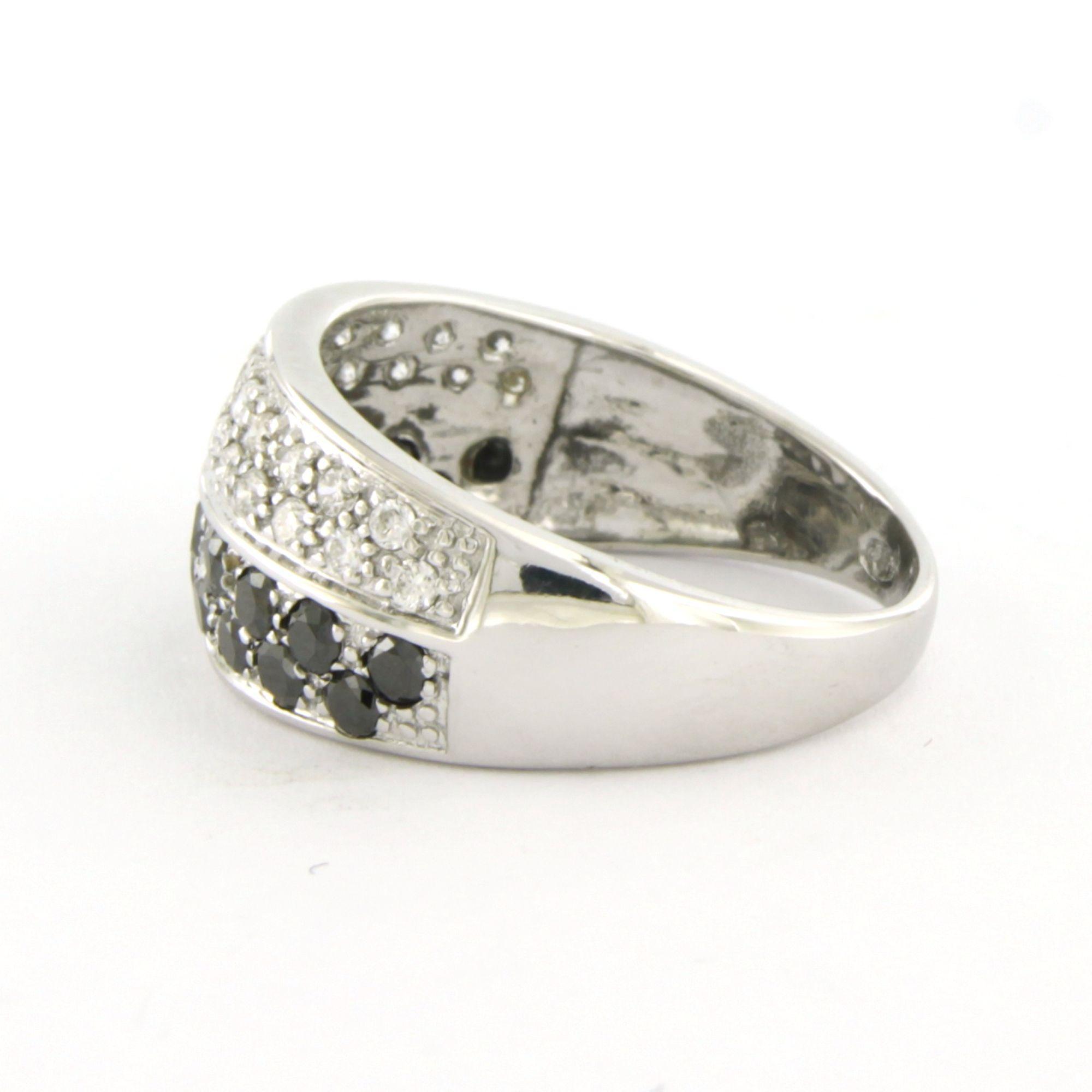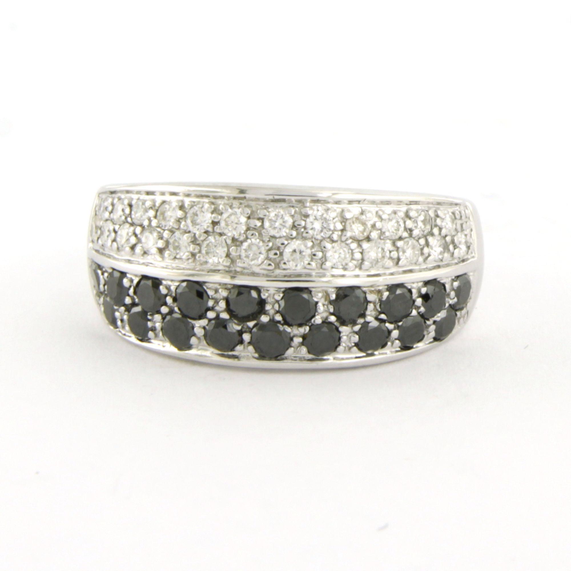 18 Kt. witgouden ring bezet met zwarte en witte briljant geslepen diamant tot. 1,00ct F/G VS/SI - ringmaat 17 (53)
