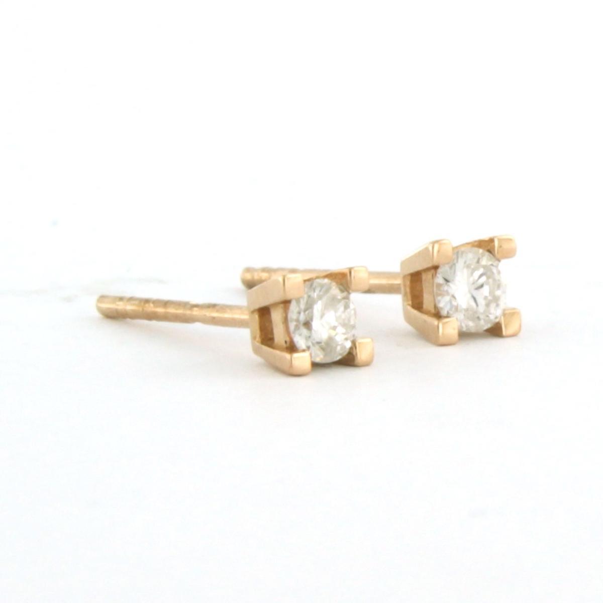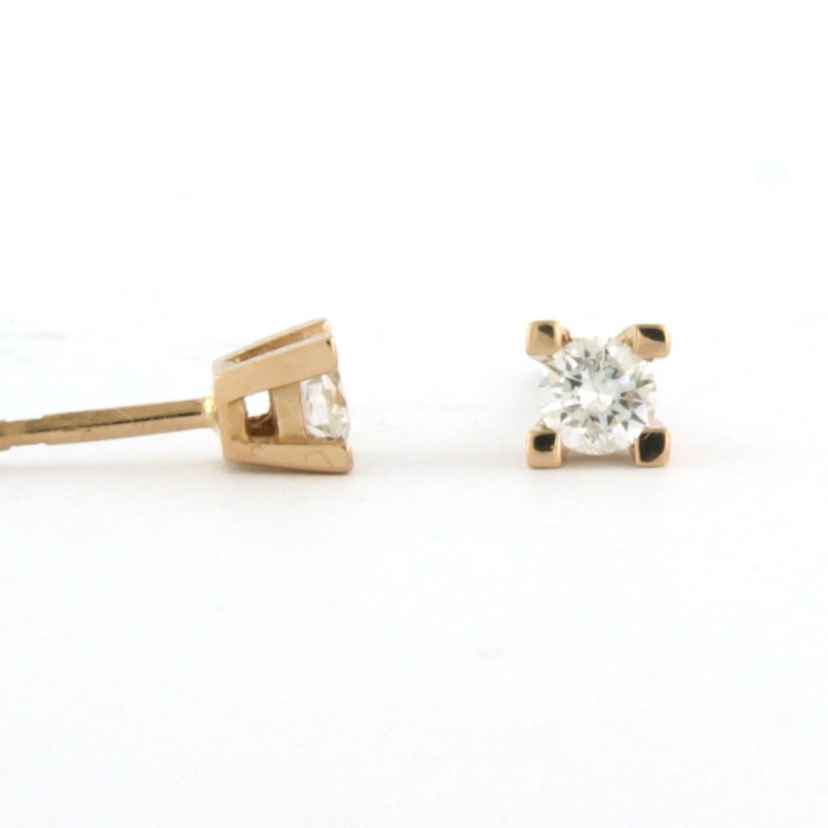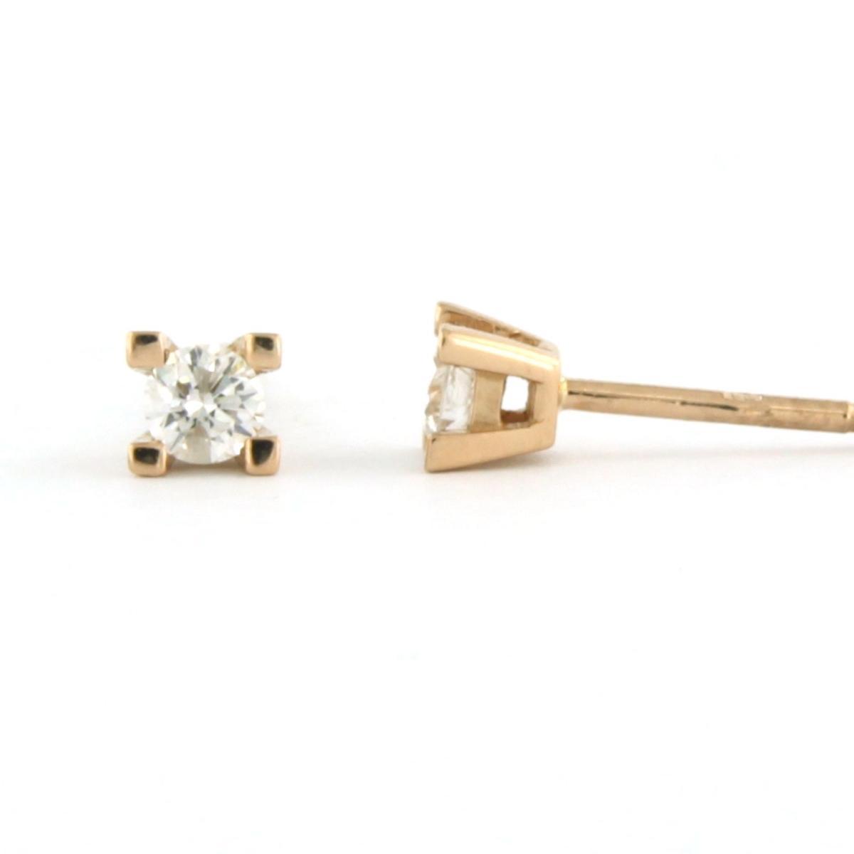 18 Kt. roségouden solitair oorknoppen bezet met briljant geslepen diamanten tot. 0.20 ct F/G VS/SI