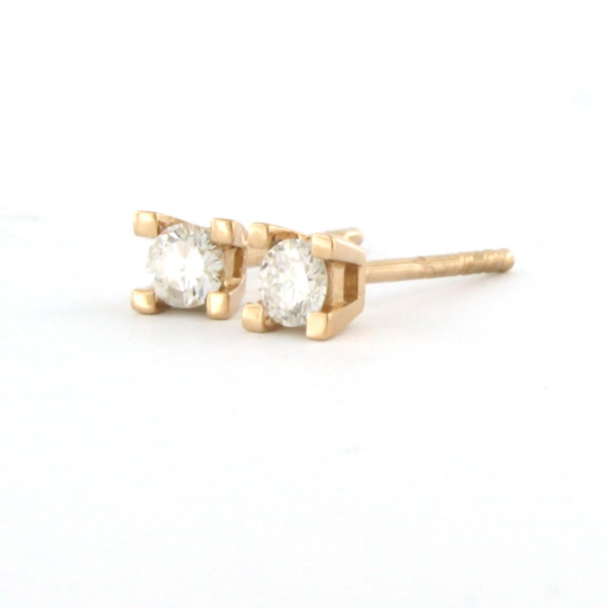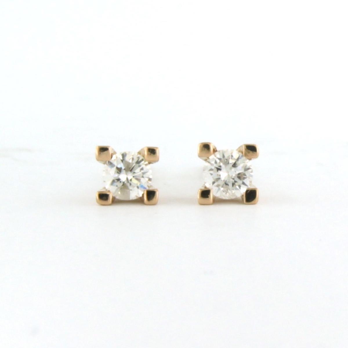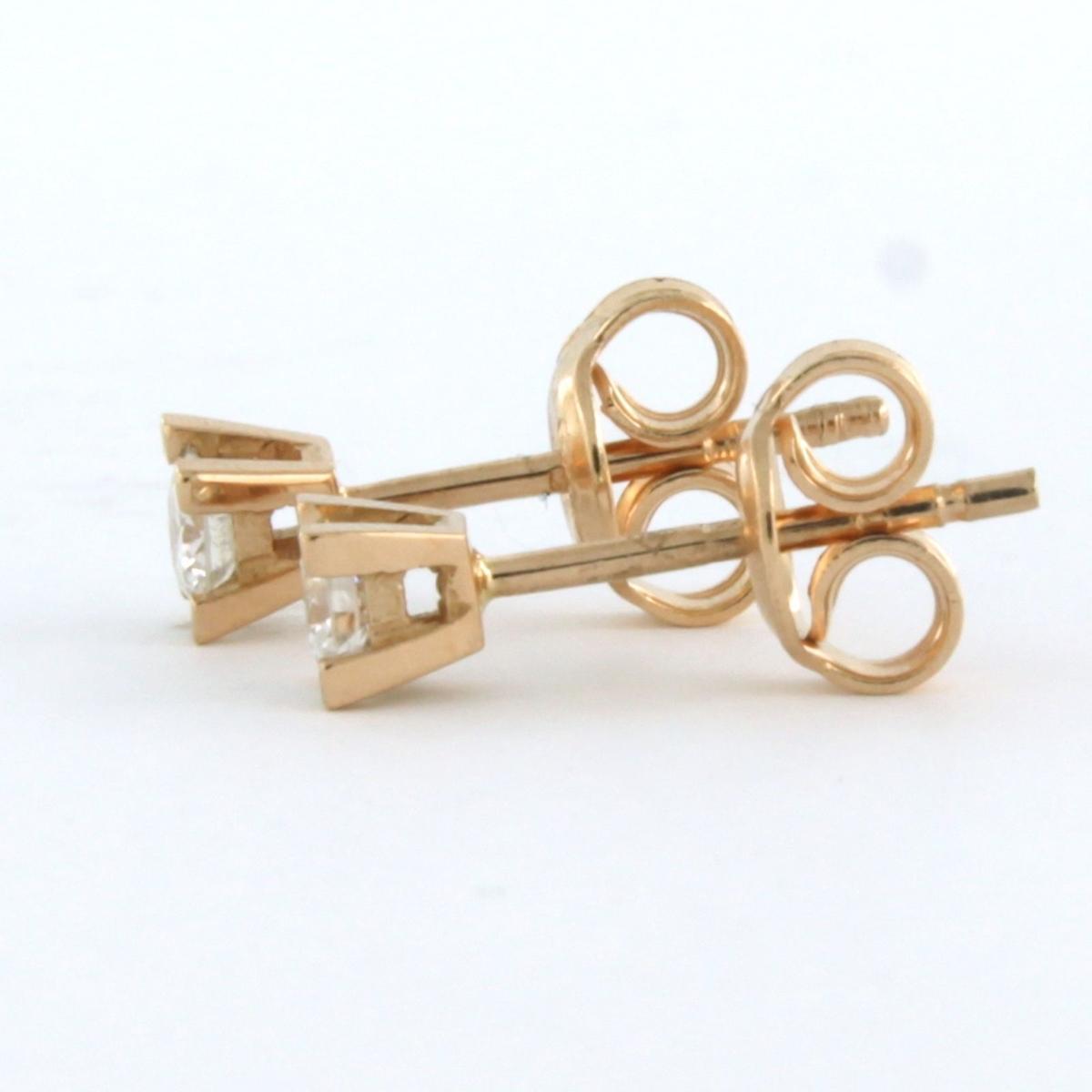 18 Kt. roségouden solitair oorknoppen bezet met briljant geslepen diamanten tot. 0.20 ct F/G VS/SI
