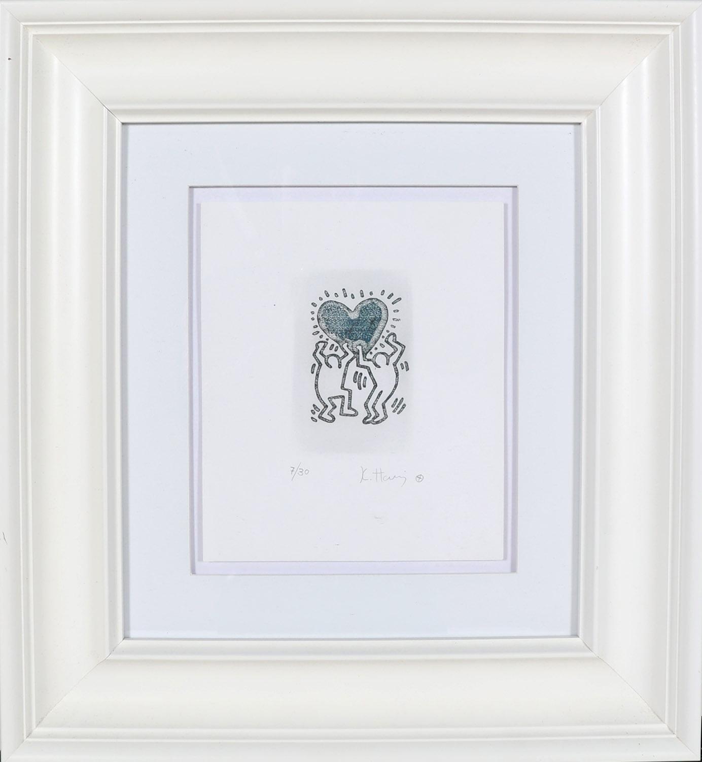 Keith Haring (1958 - 1990), Heart of men, handgesigneerde zeefdruk, genummerd 7/30, 28 x 24 cm.