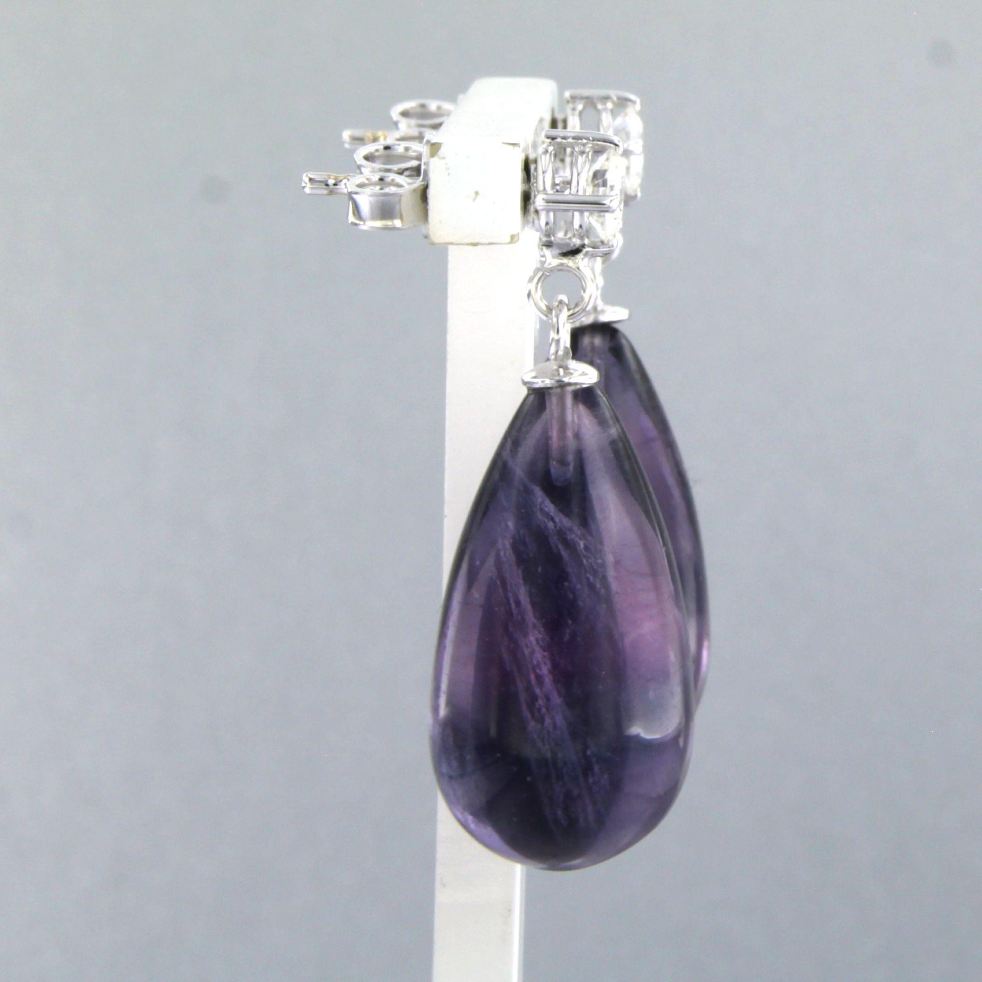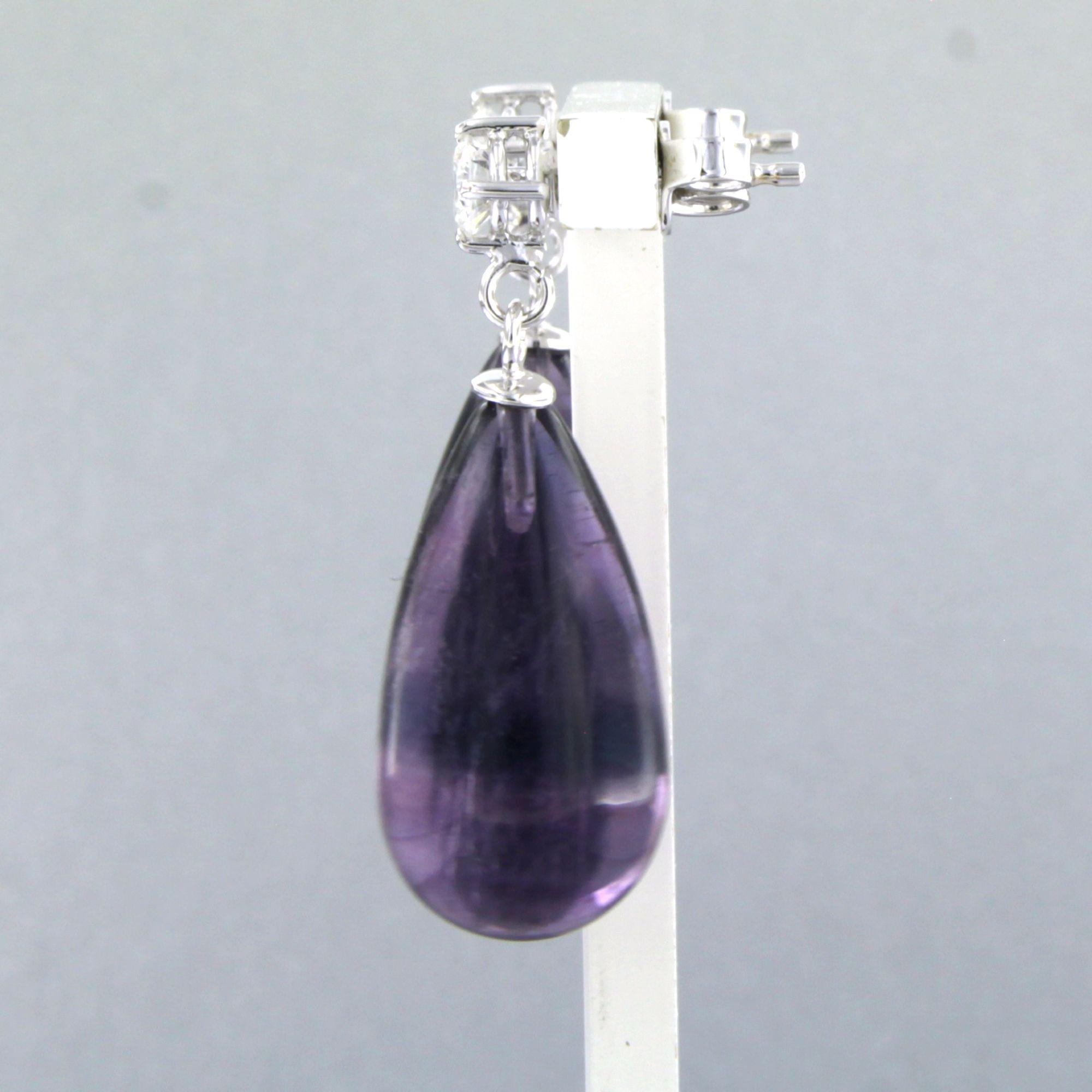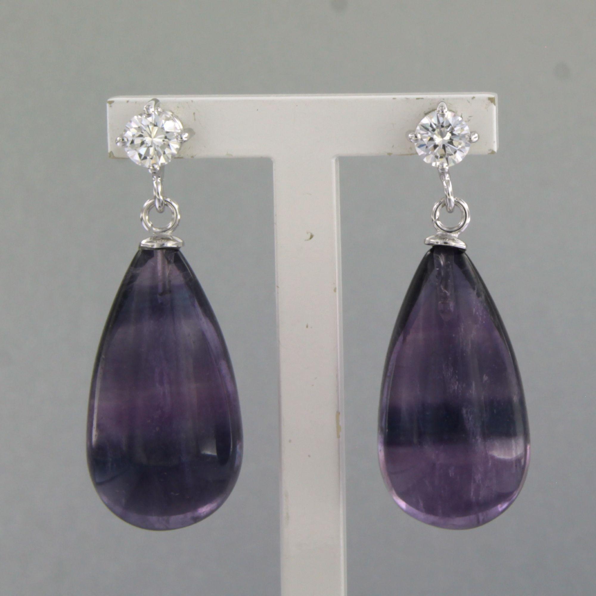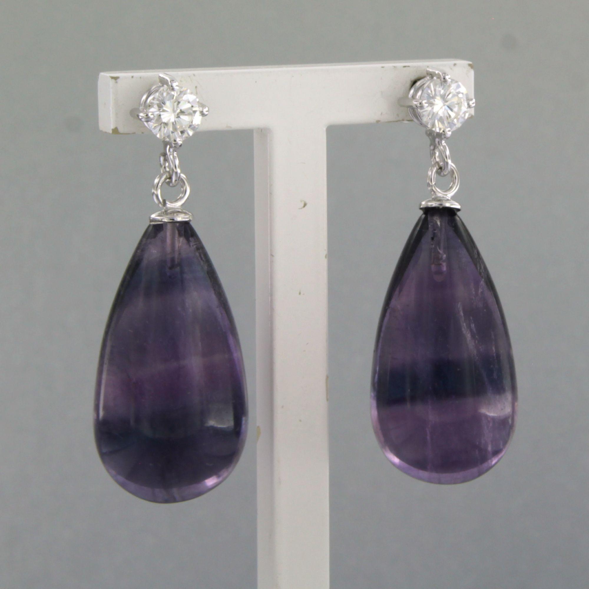 18 Kt. witgouden oorhangers bezet met fluoriet en briljant geslepen diamanten tot. 0,60ct - F/G - VS/SI