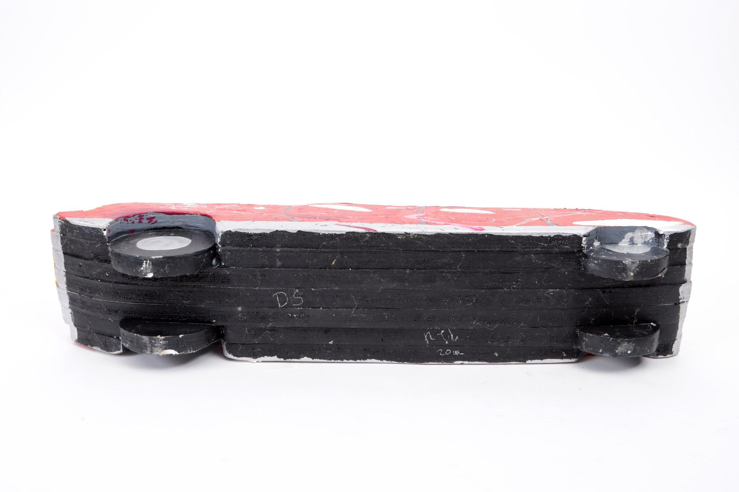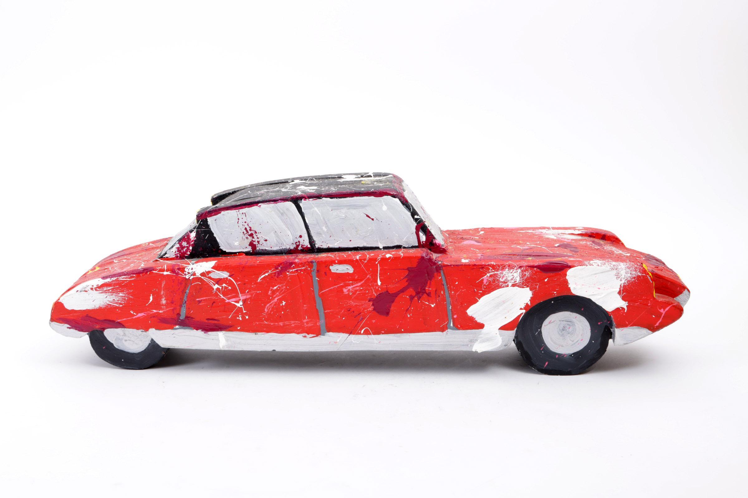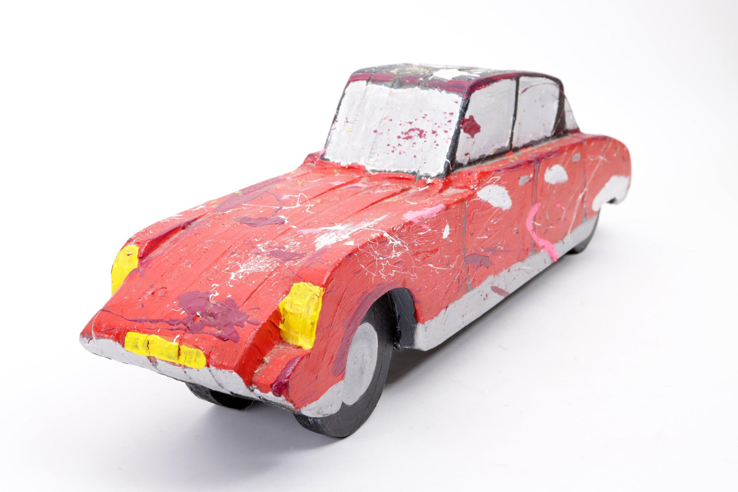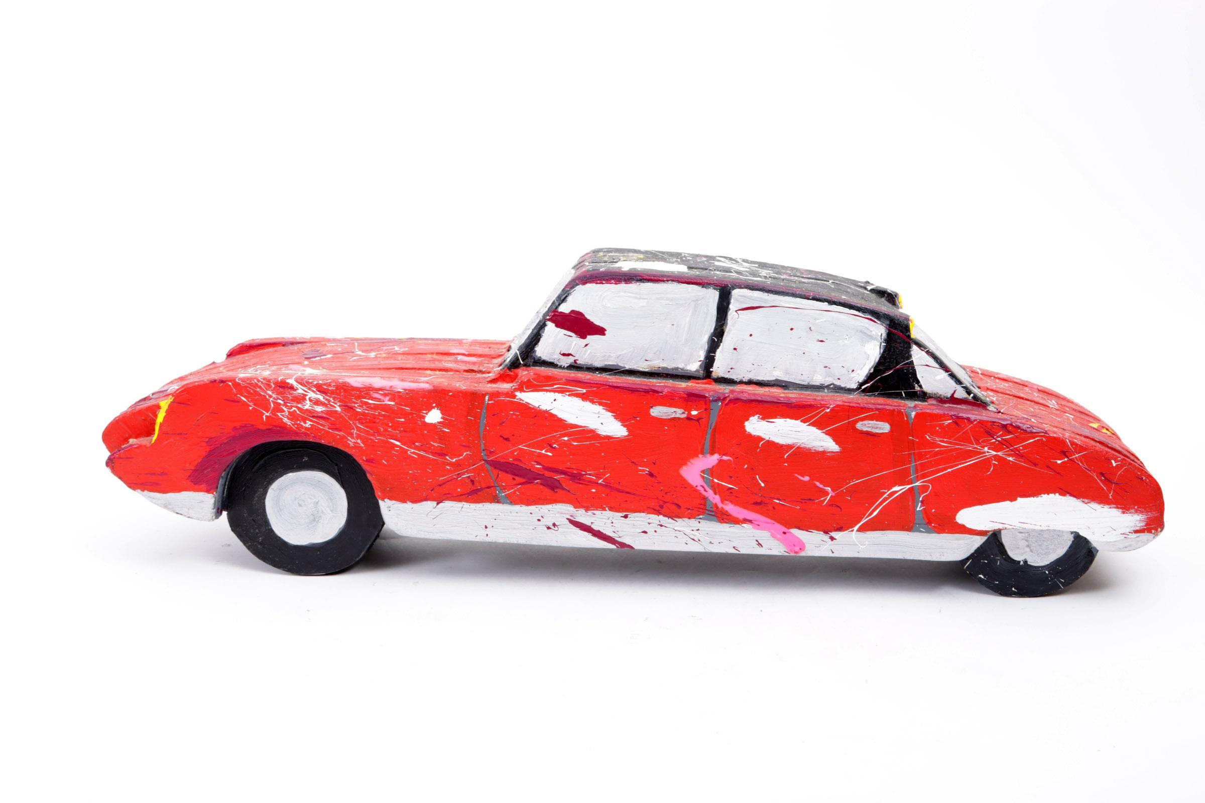 Rogier Jonk, DS, beschilderde houten sculptuur van Citroen DS, gesigneerd aan onderkant en gedateerd 2010, 59 x 14 x 18 cm.