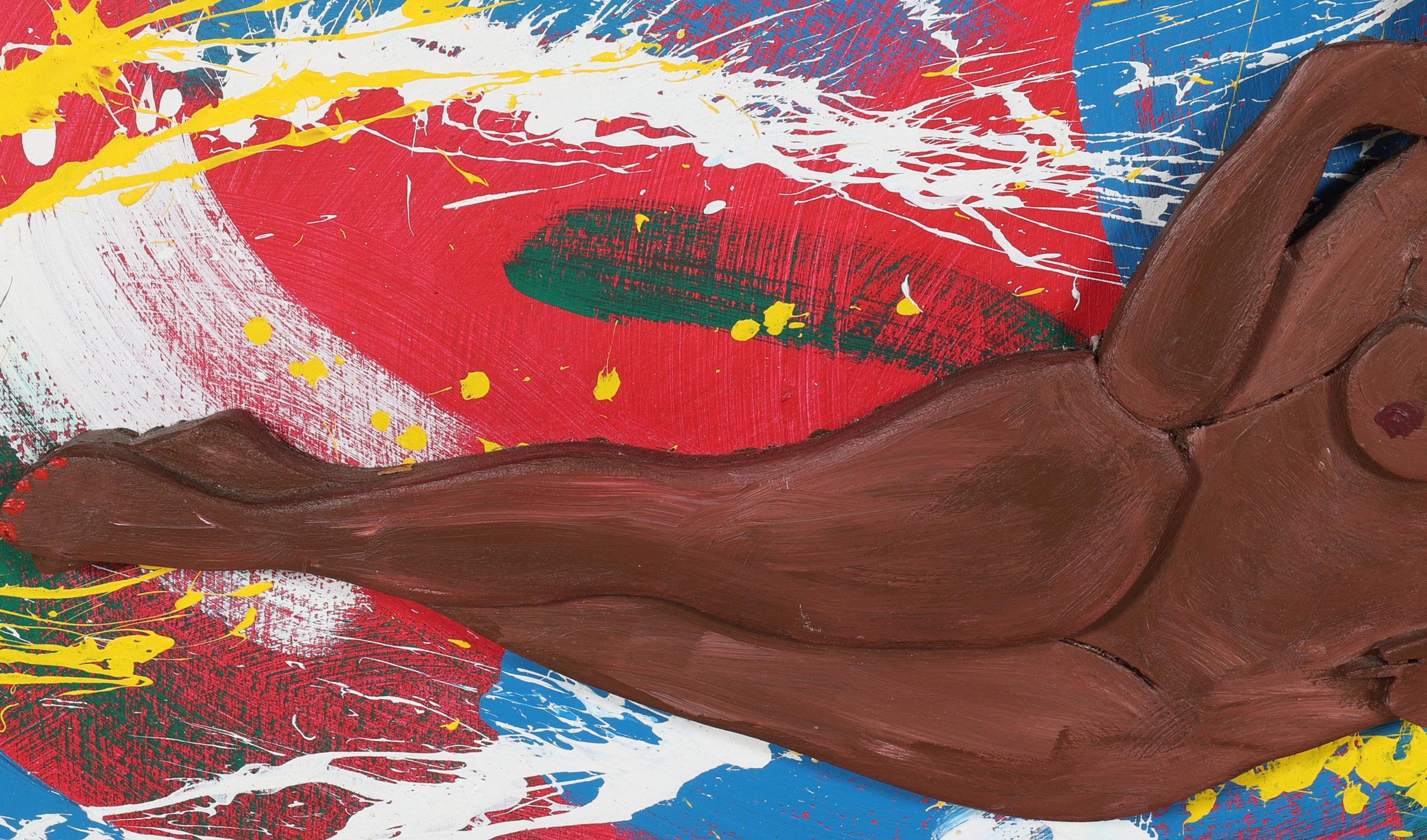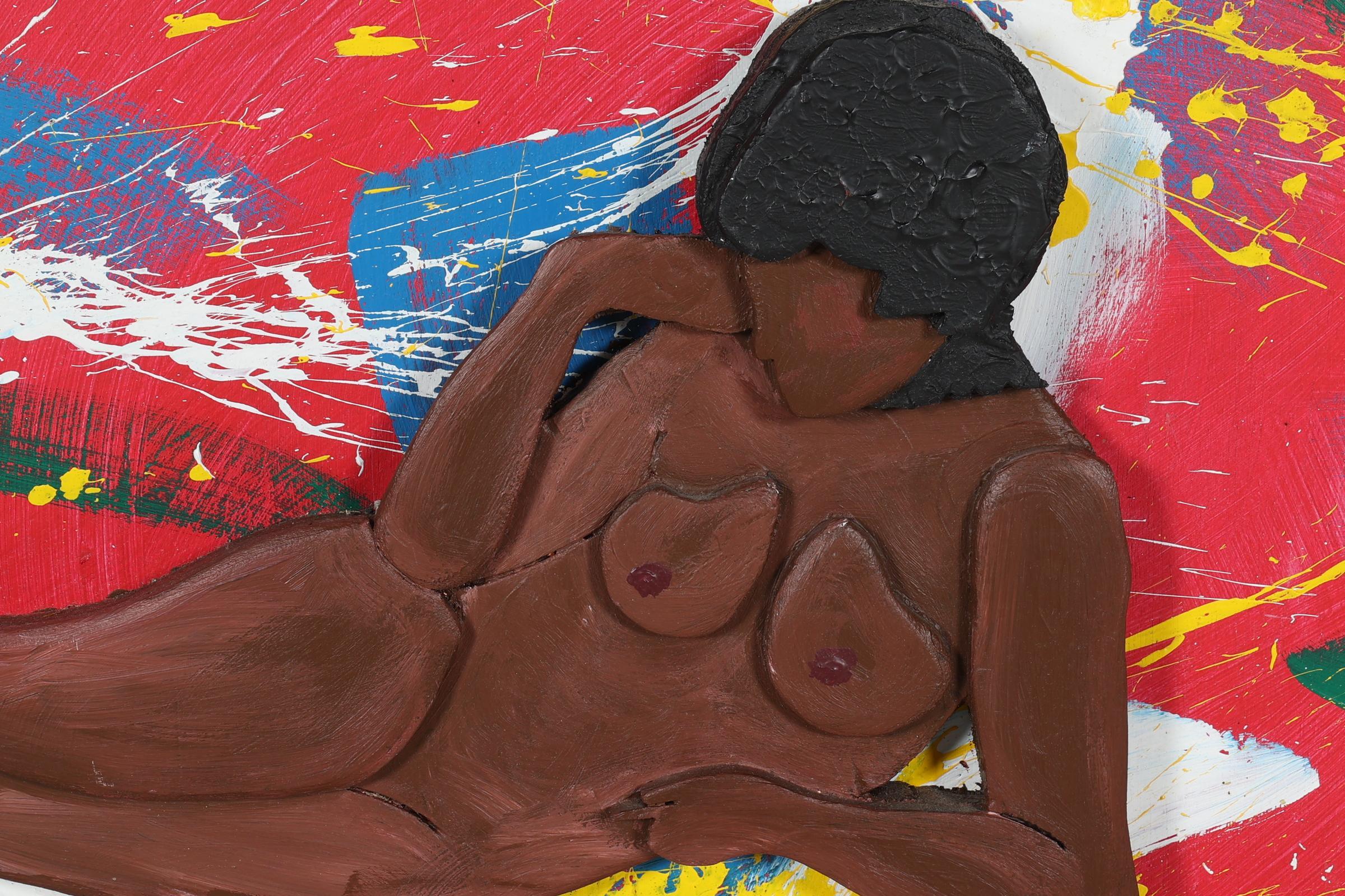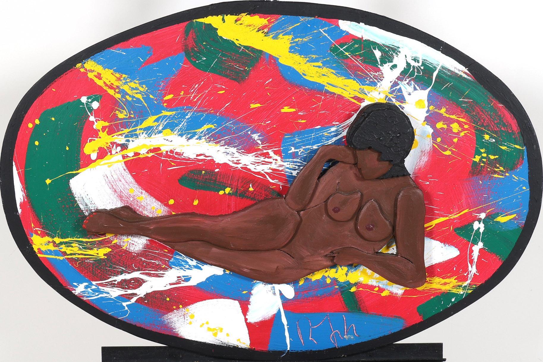 Rogier Jonk, Naakte dame, beschilderde houten wandsculptuur, 59 x 93 cm.