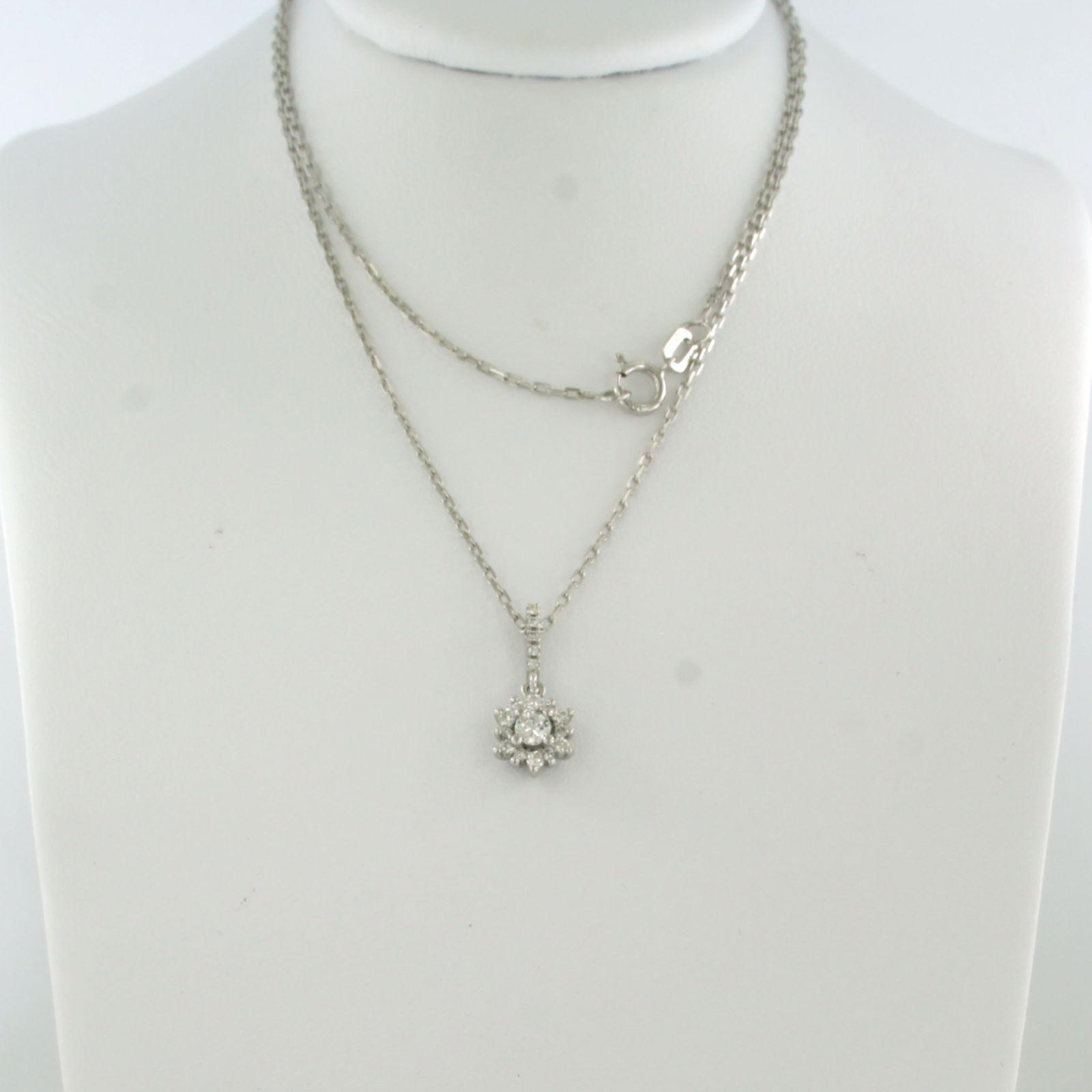 14 Kt. witgouden collier met hanger bezet met briljant geslepen diamanten tot. 0.26 ct F/G VS/SI, 44 cm lang