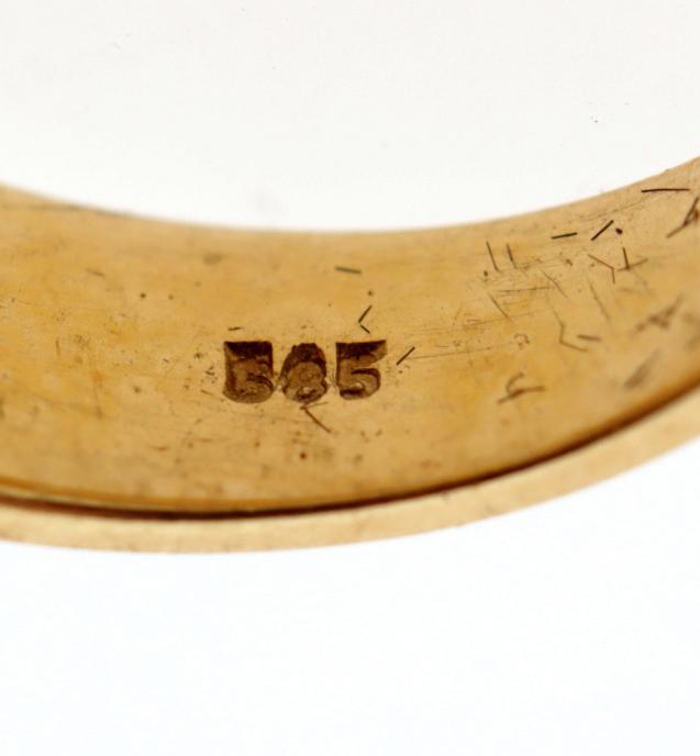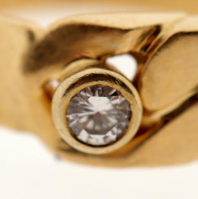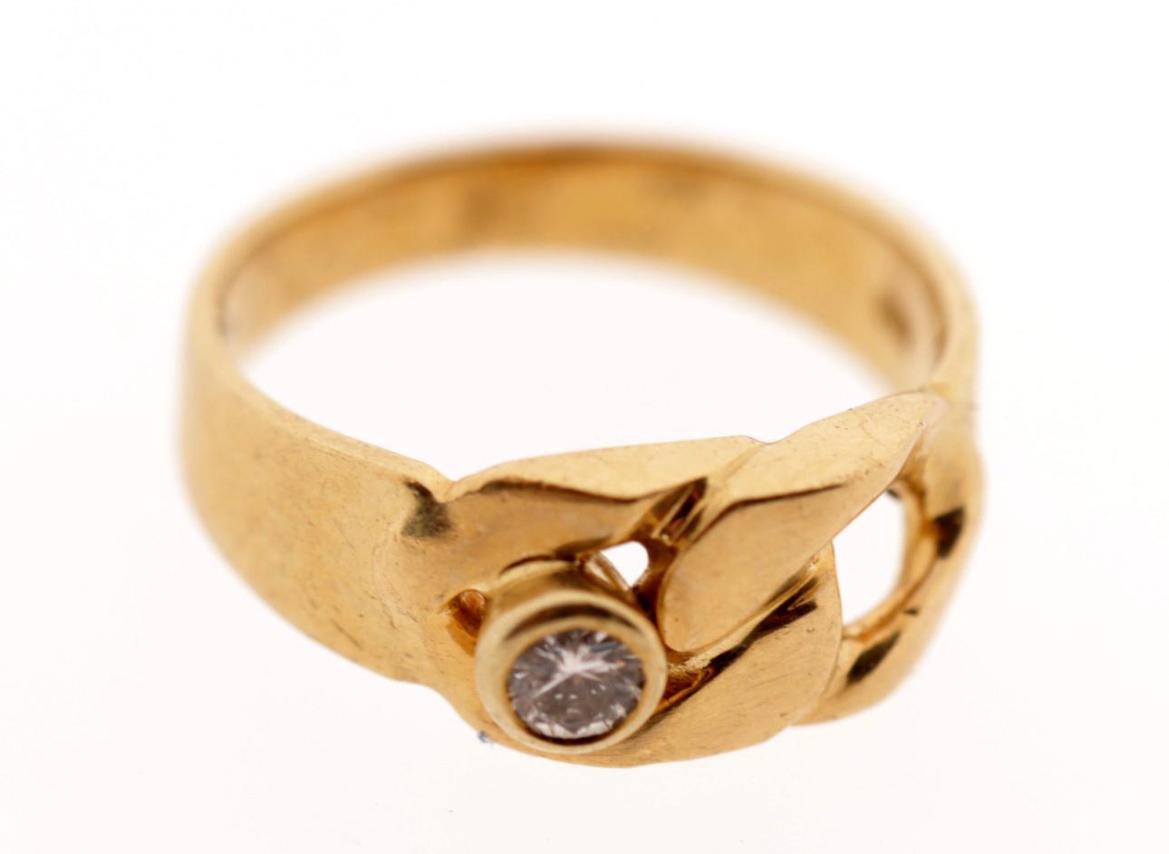 14 Kt. gouden fantasiering bezet met briljant geslepen diamant, 16 mm., 4 gram