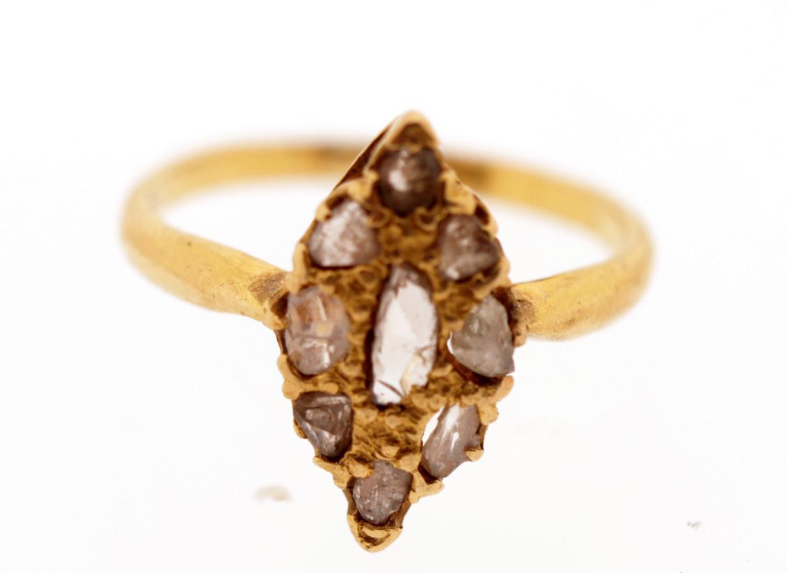 18 Kt. gouden ring bezet met diamant, diam 16 mm.