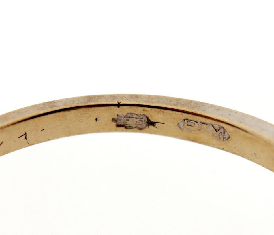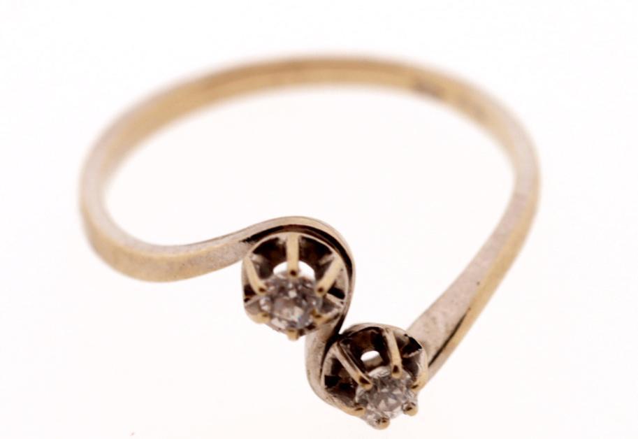 14 Kt. gouden ring bezet met briljant geslepen diamant, ringmaat 17.25