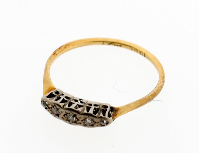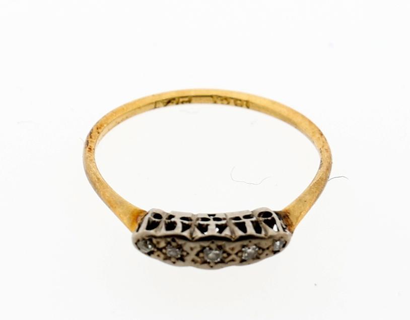 18 Kt. gouden ring bezet met diamant, diam.18 mm.