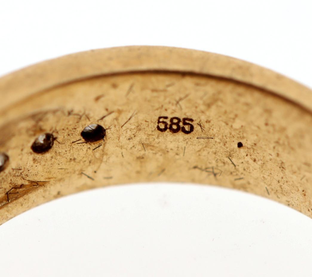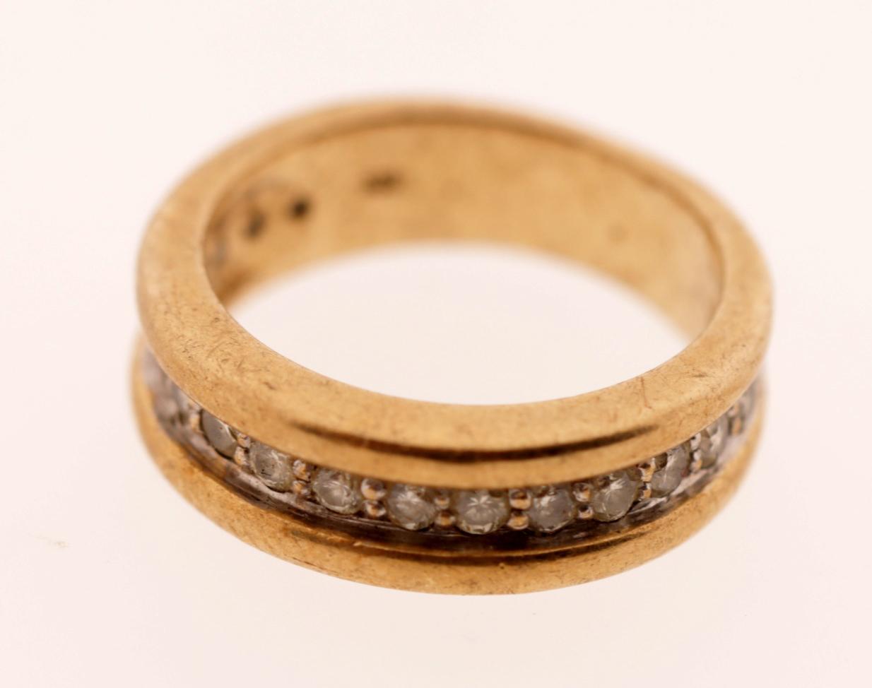 14 Kt. gouden ring bezet met briljant geslepen diamant, ringmaat 15.25, 5,6 gram