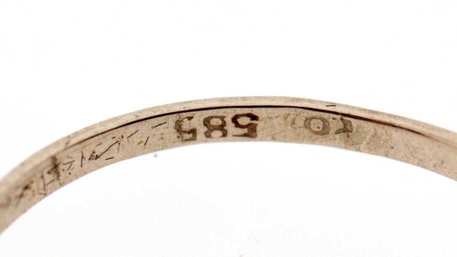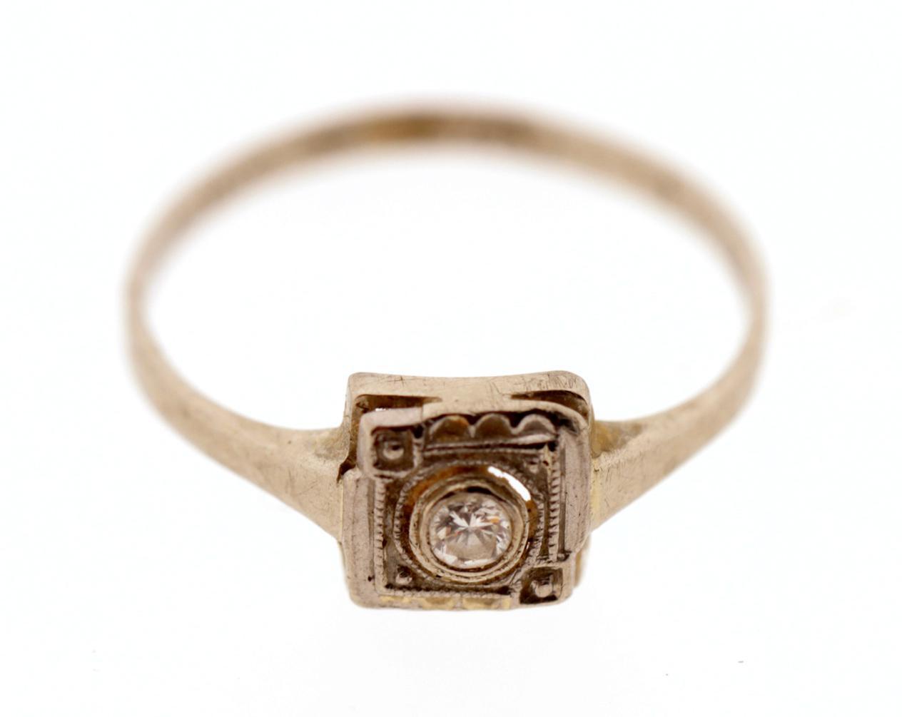 14 Kt. gouden damesring bezet met briljant, ringmaat 17.5