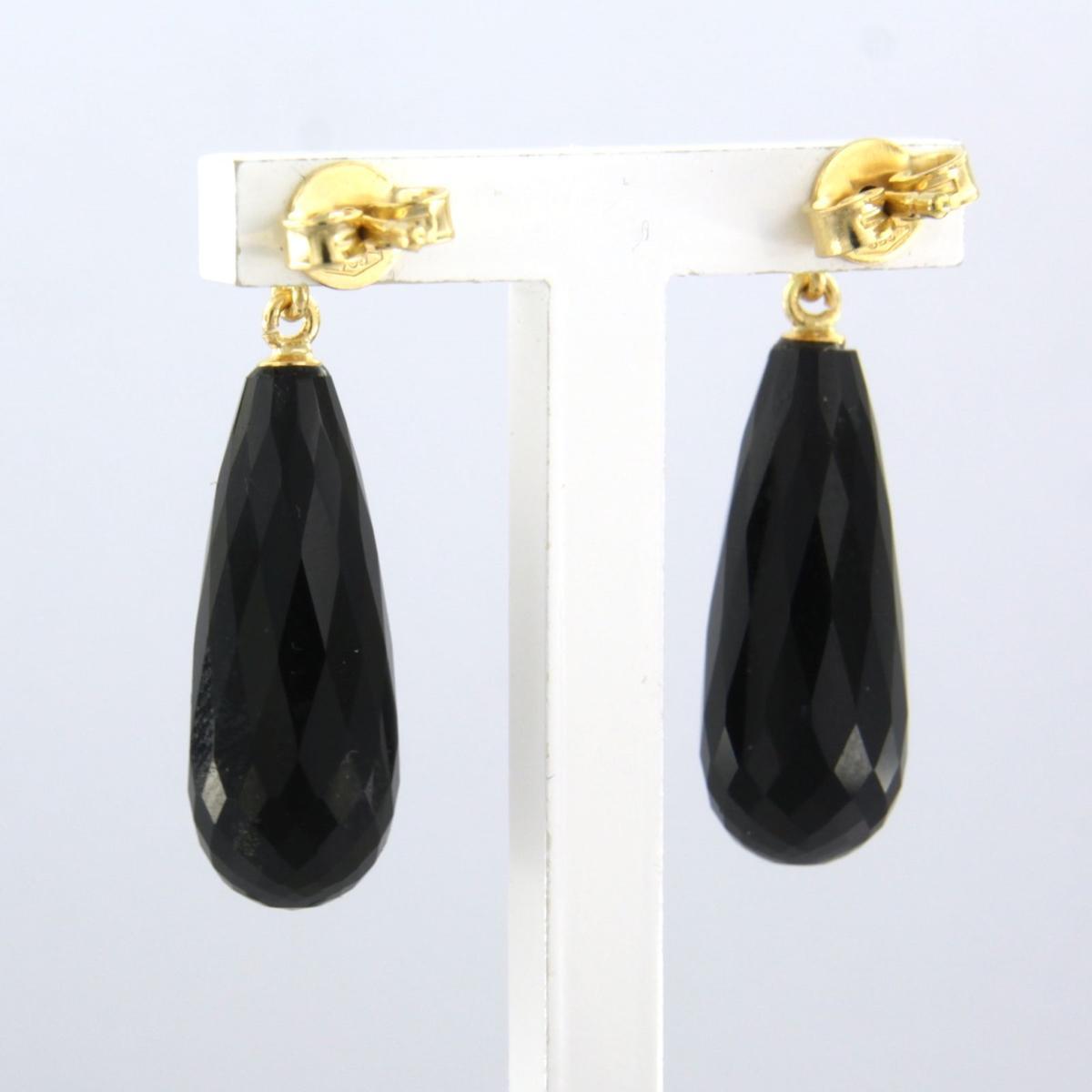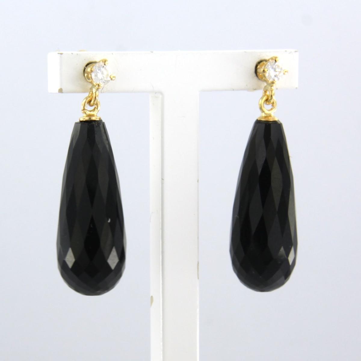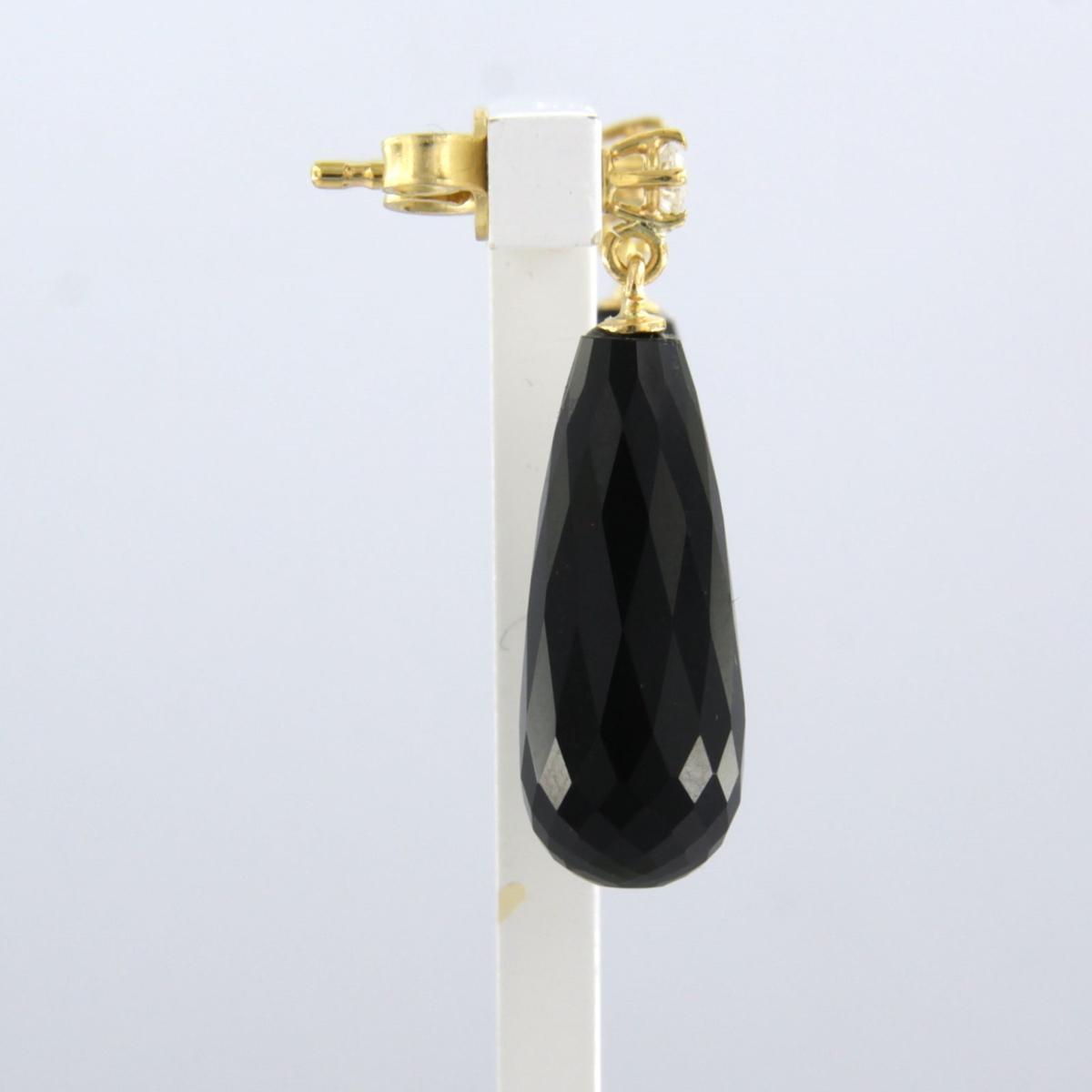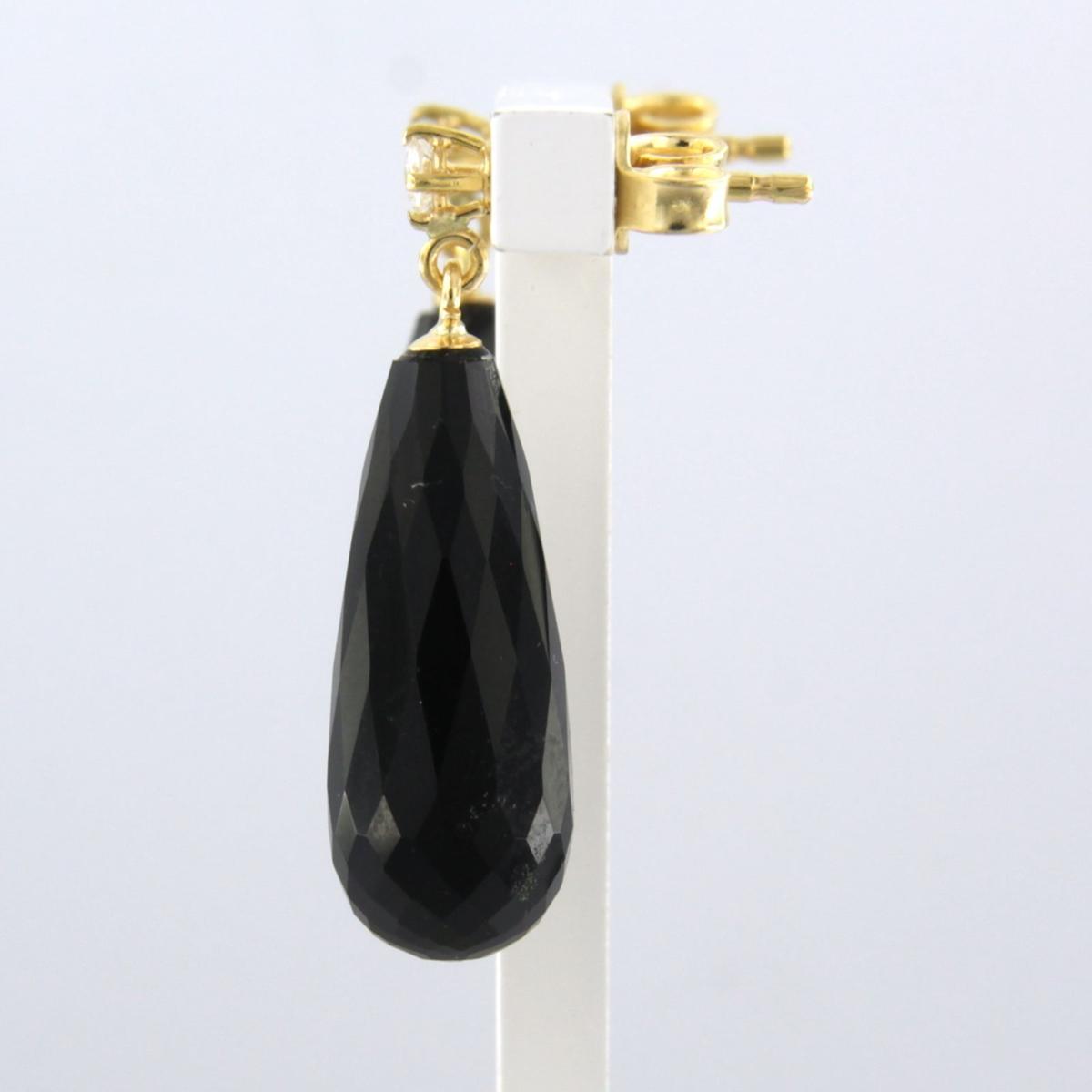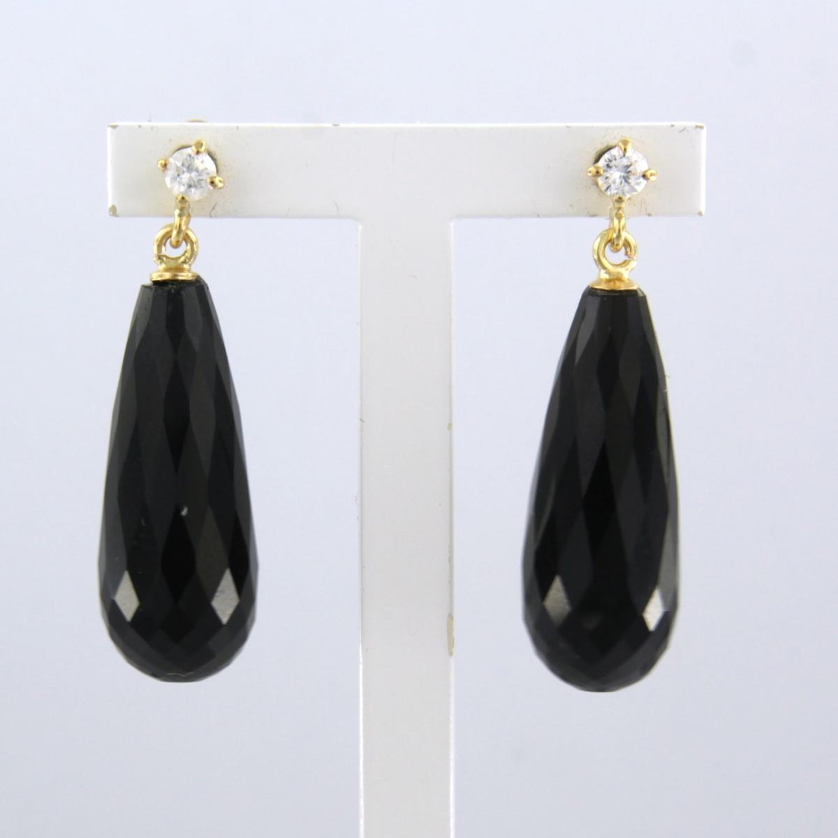 18 Kt. geelgouden oorhangers met onyx en diamant 0.14 ct - F/G - VS/SI