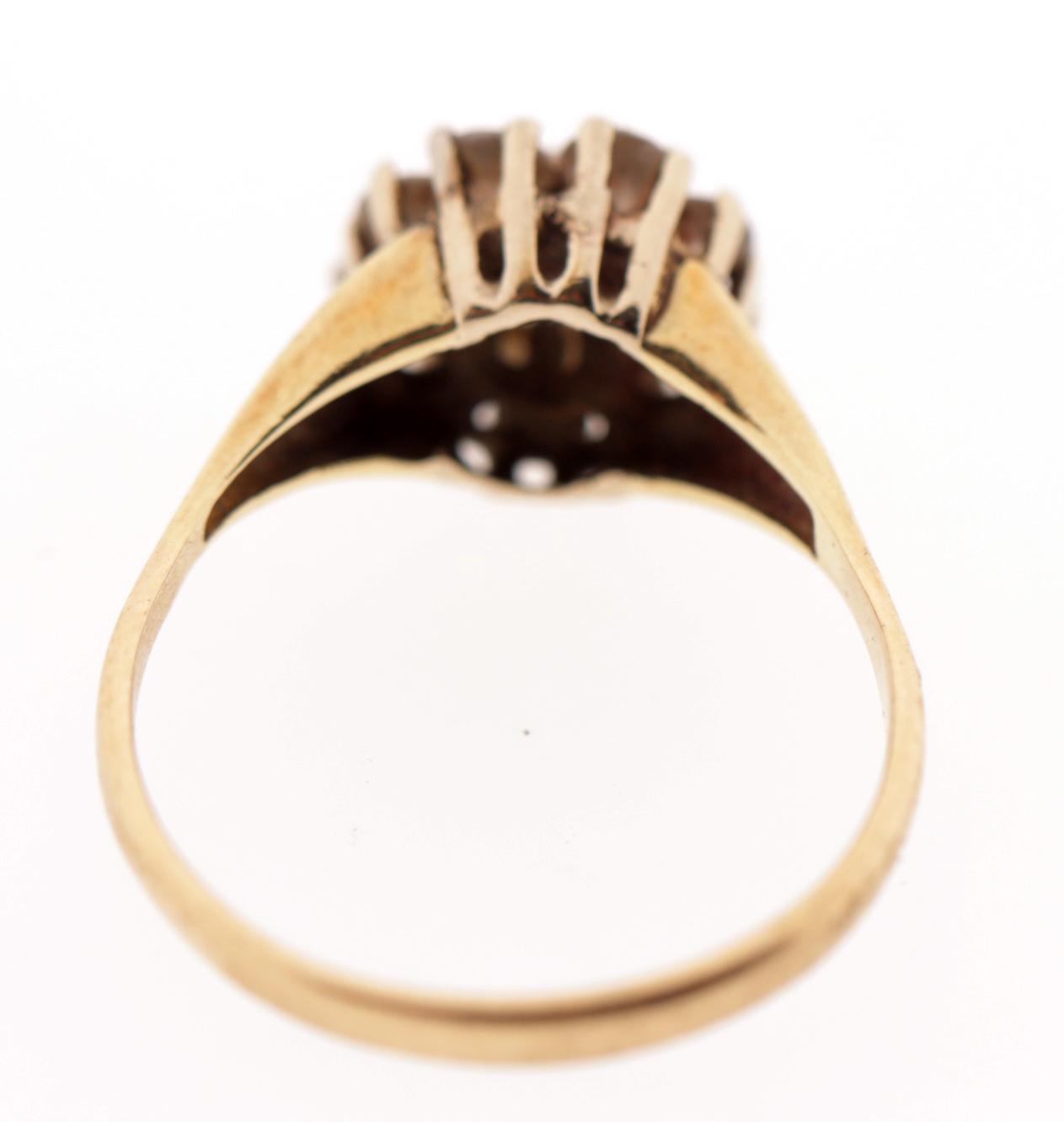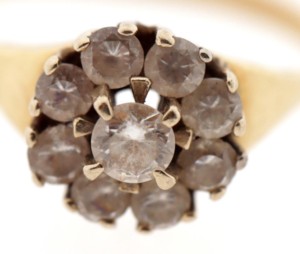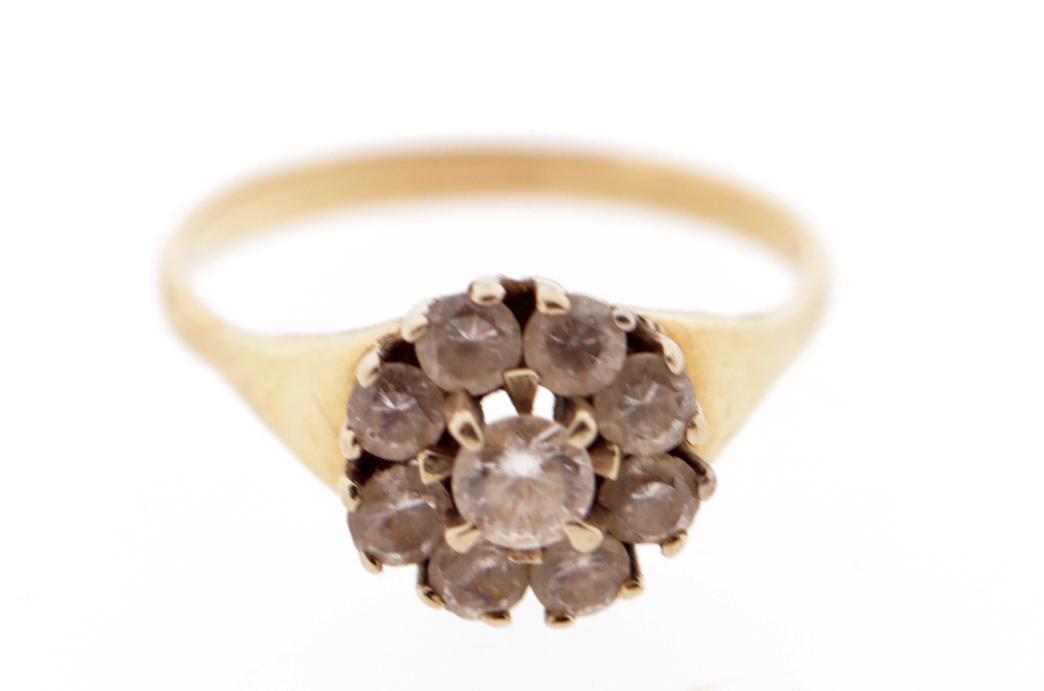 14 Kt. gouden damesring bezet met zirkonia, diam.19 mm., 3.8 gram