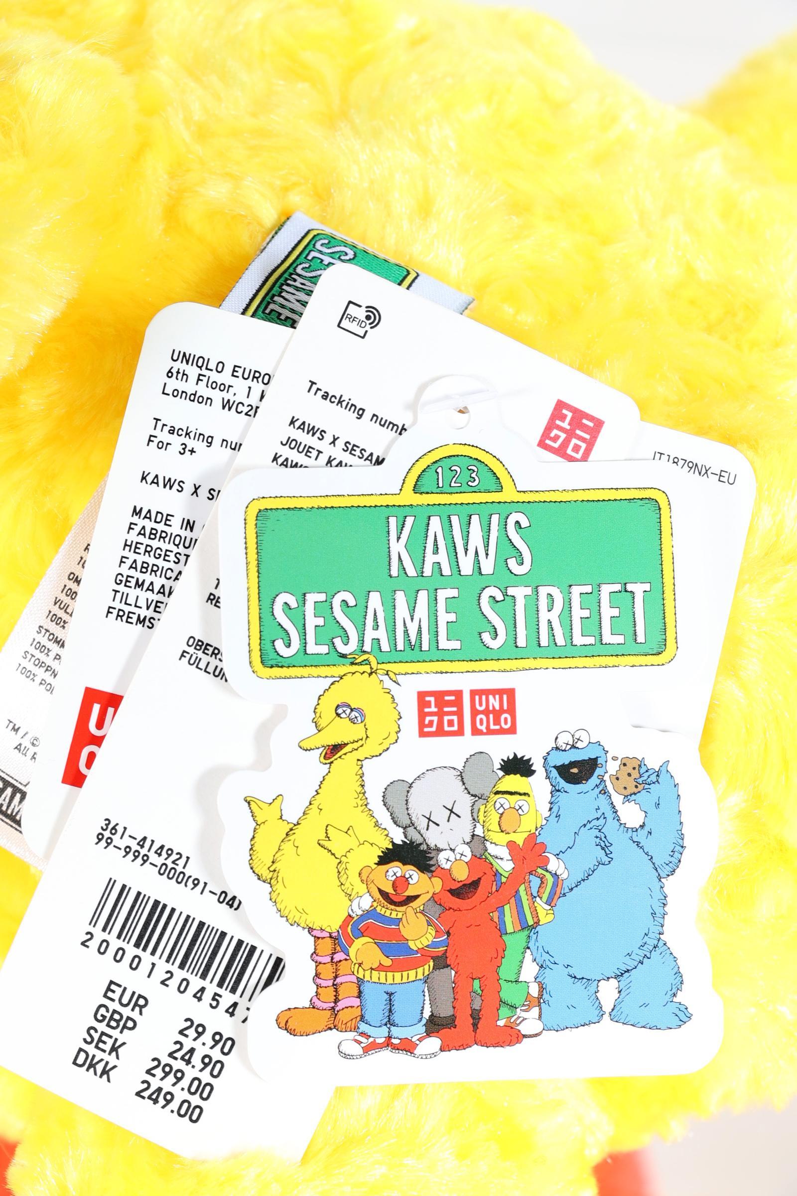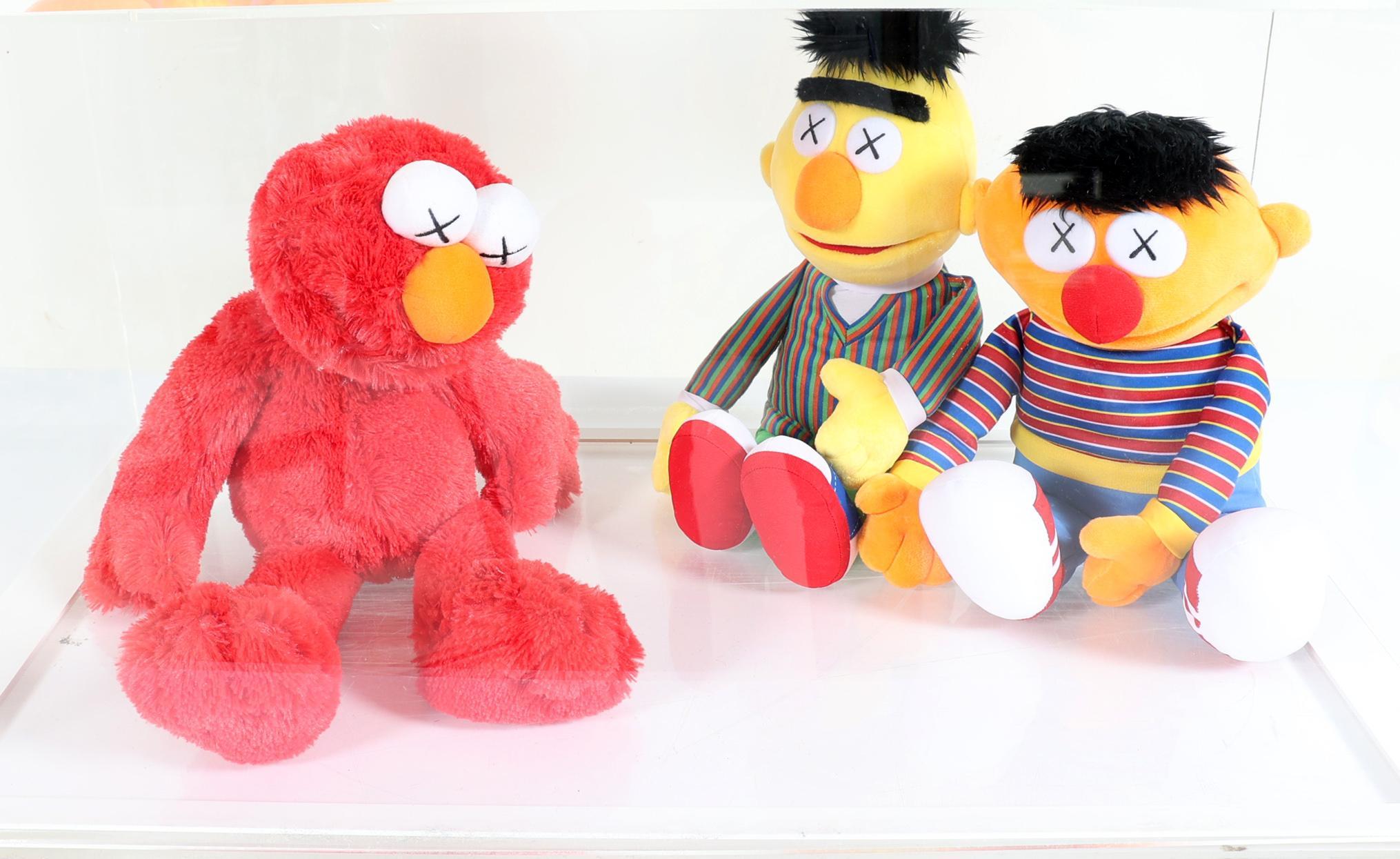 KAWS, Vijf gelimiteerde Sesamstraat knuffels met originele etiketten